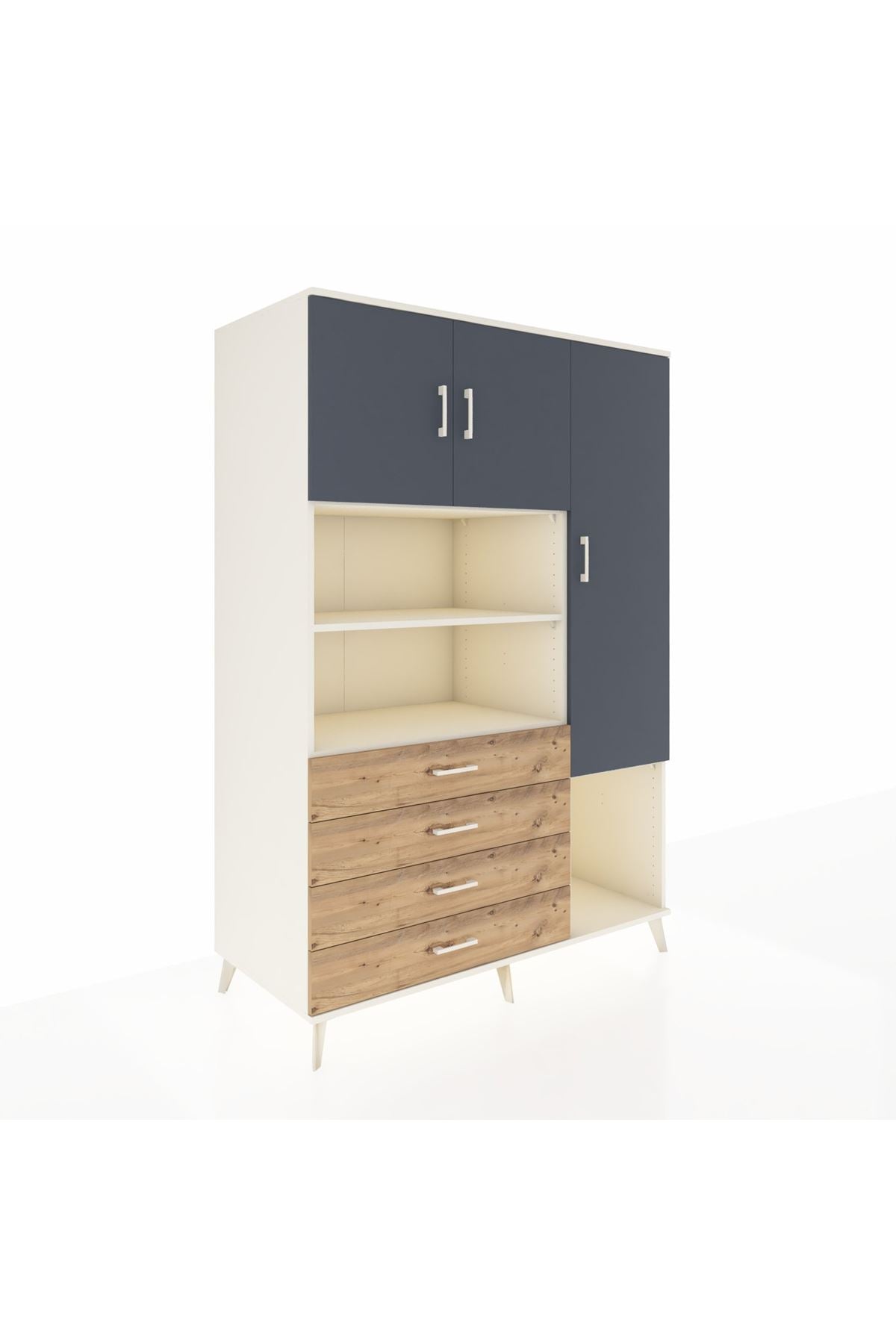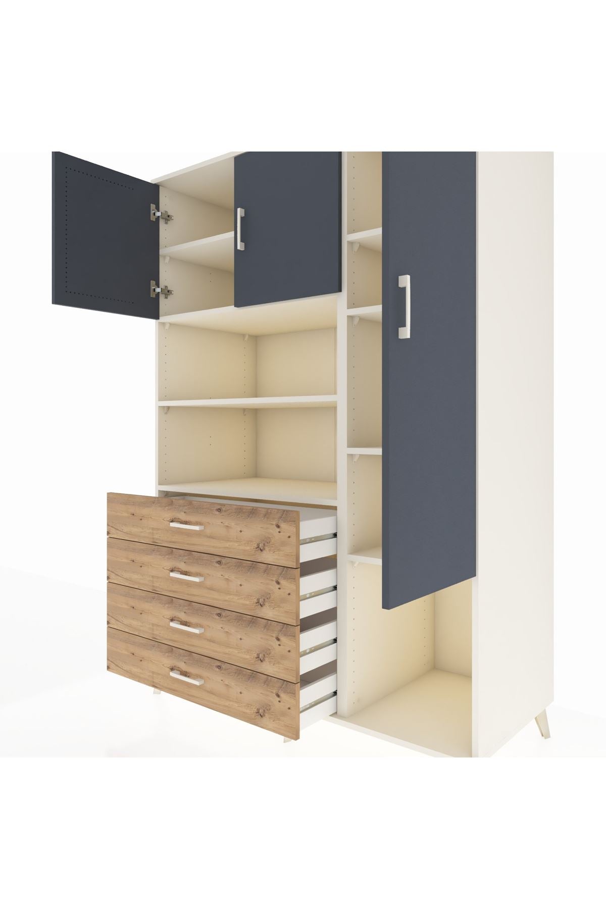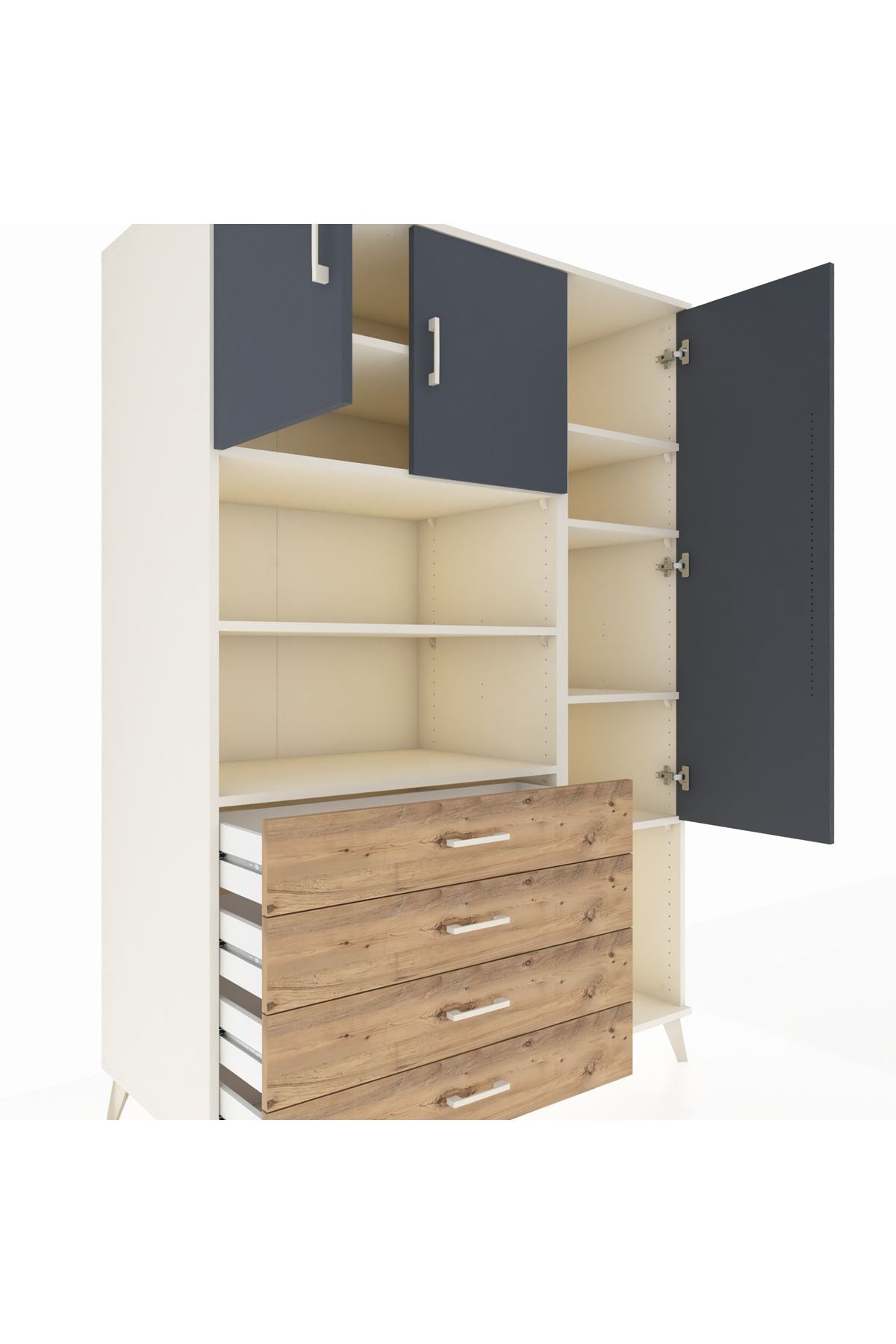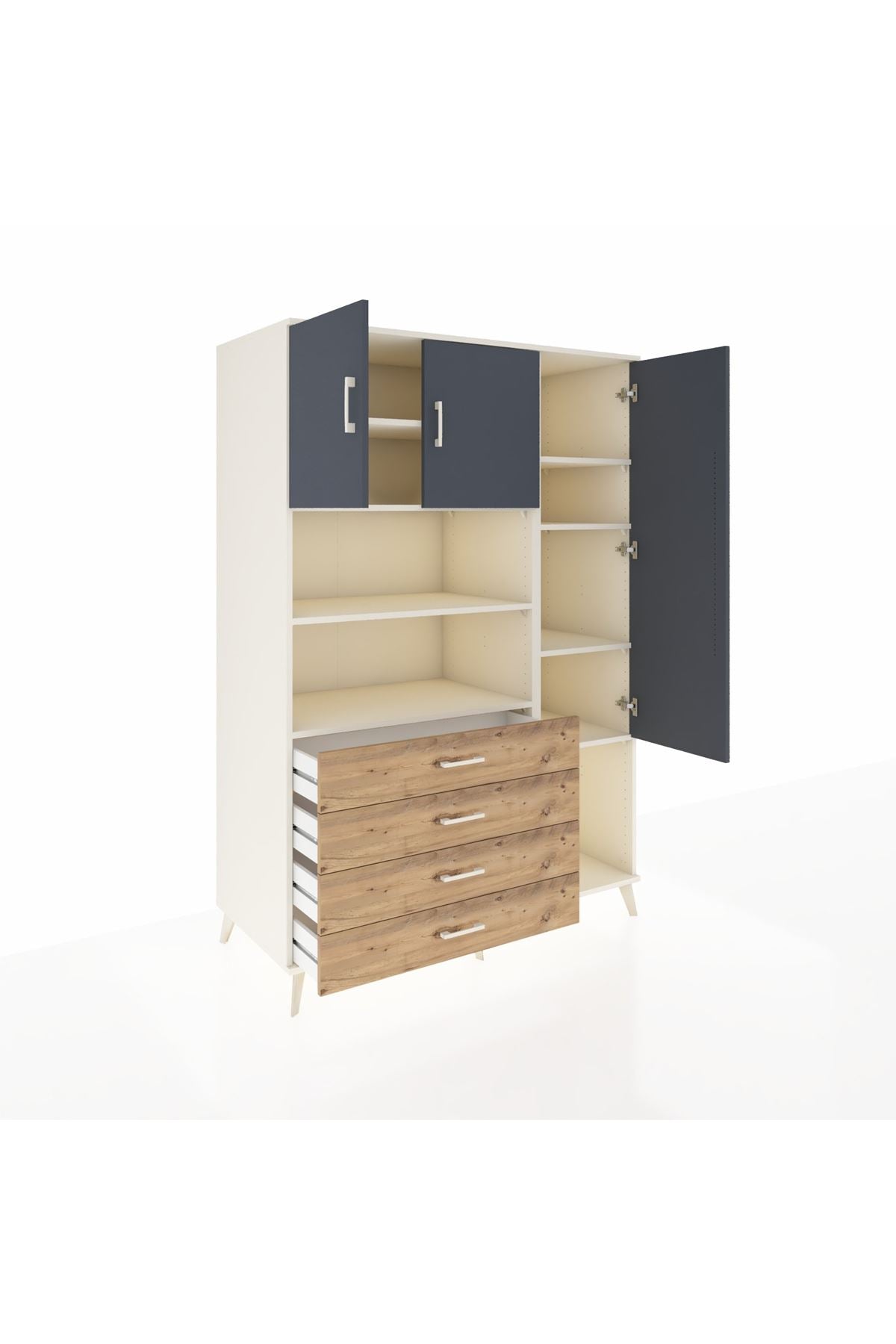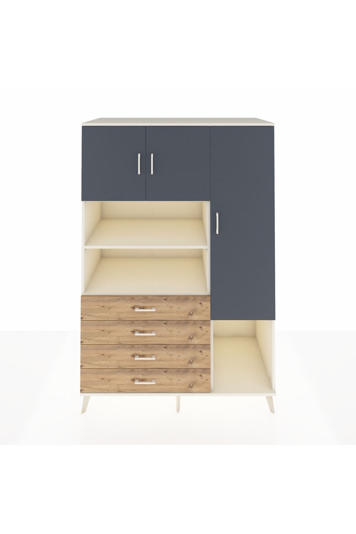 Kronos Dolap 8 Raflı 4 Çekmeceli 3 Kapaklı 132x59x195 Aytaşı-Antrasit/Çam