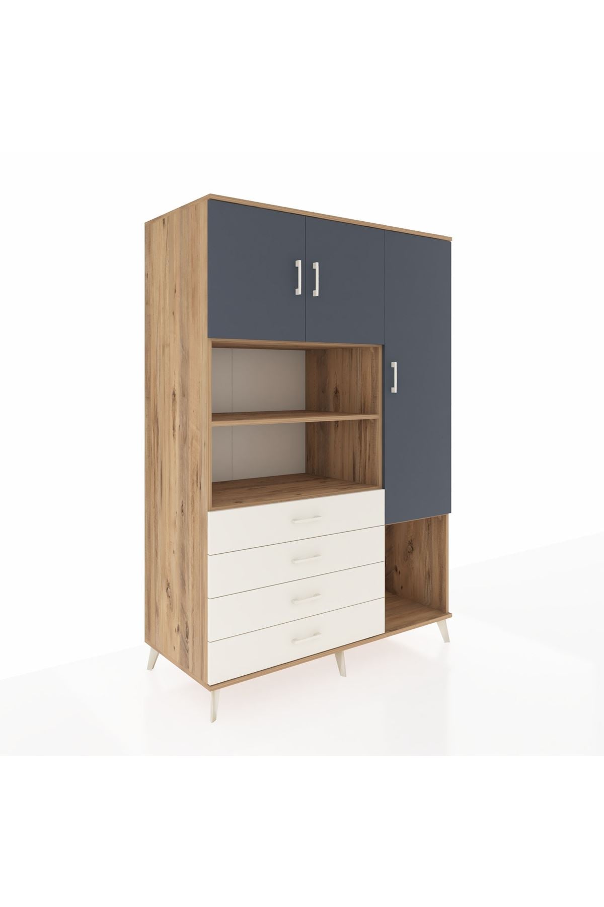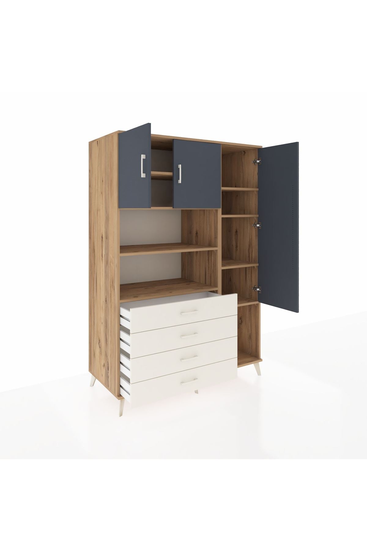 Kronos Dolap 8 Raflı 4 Çekmeceli 3 Kapaklı 132x59x195 Çam-Antrasit/Aytaşı