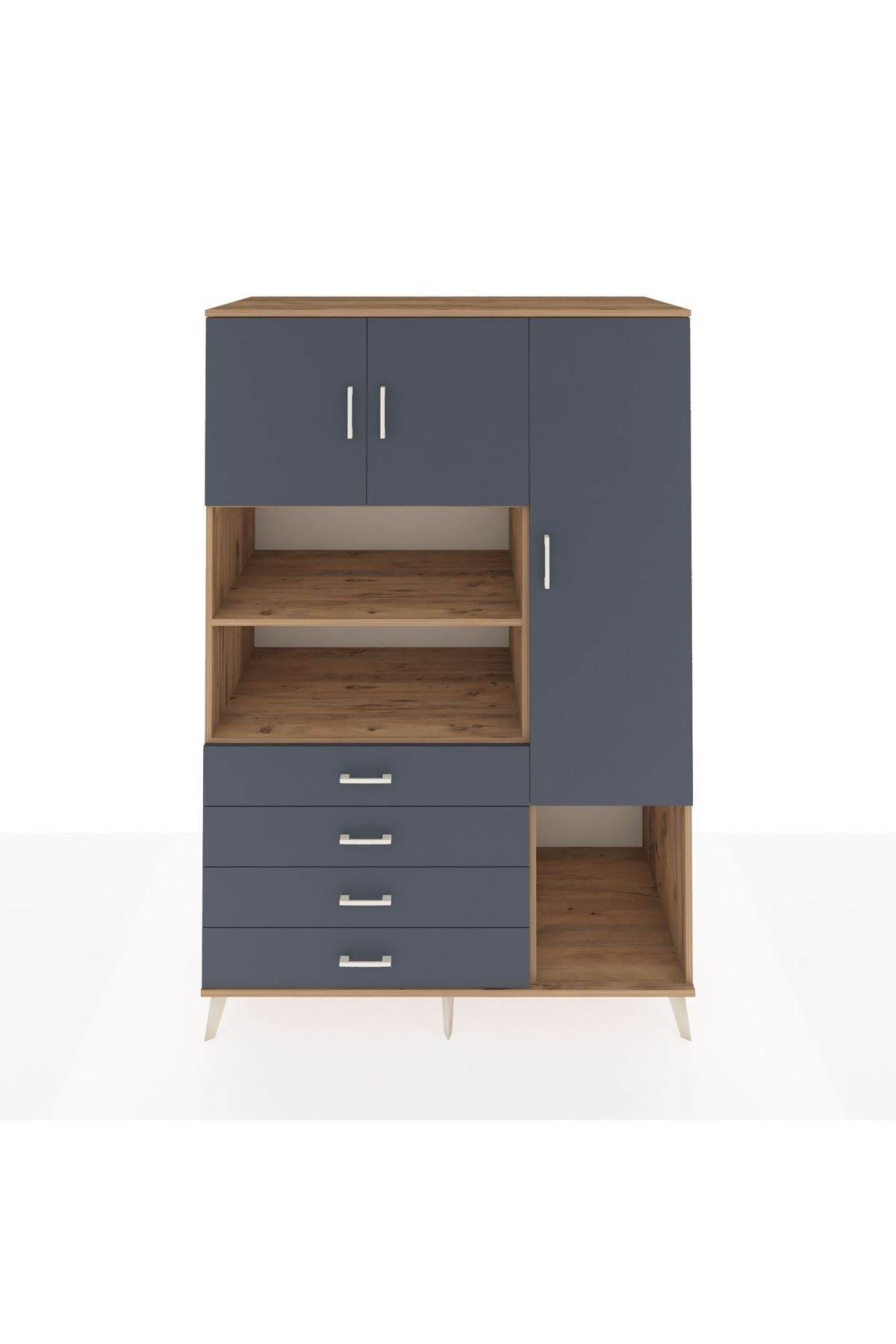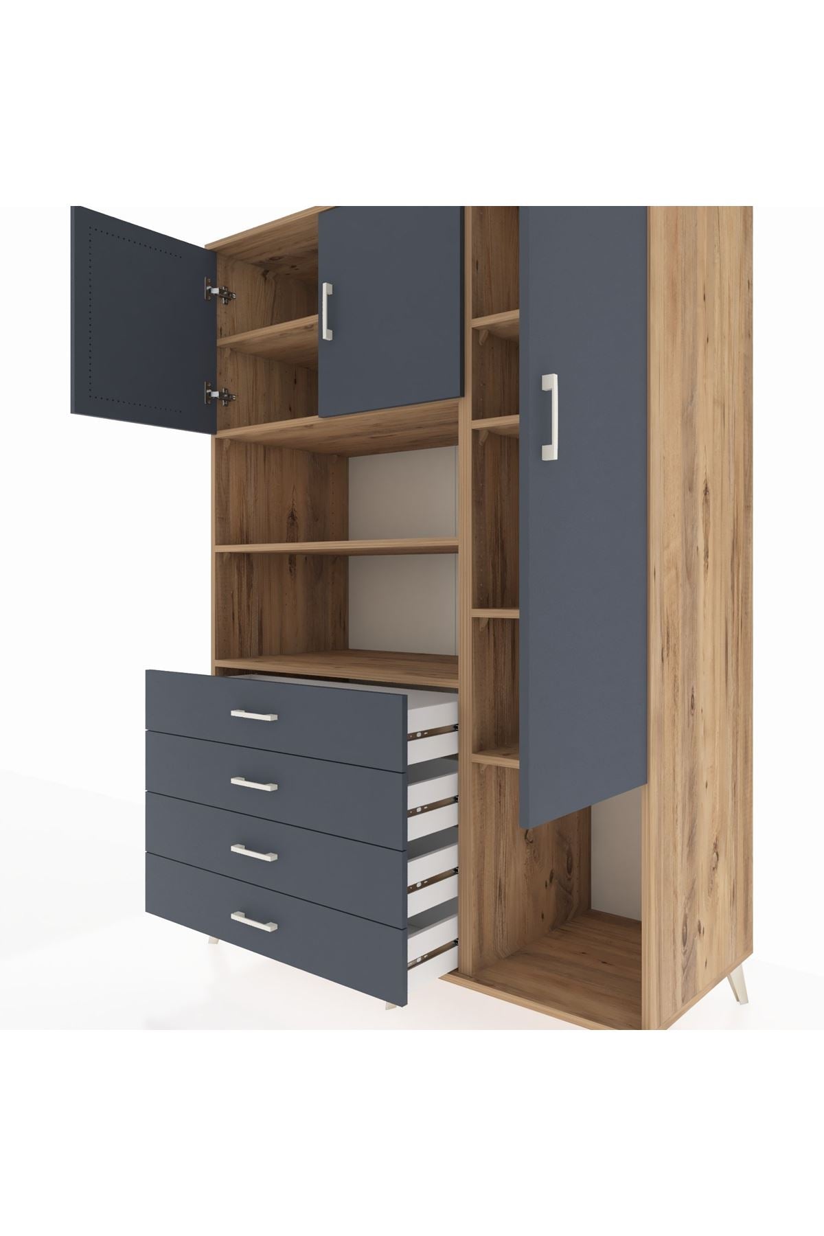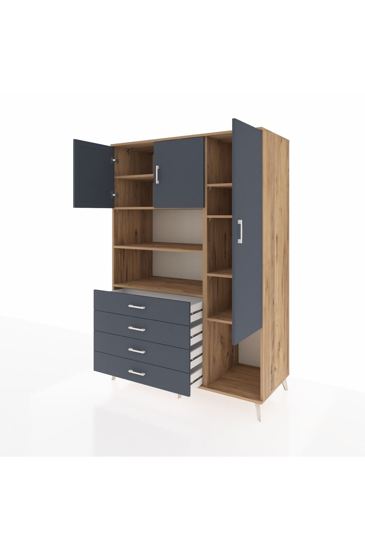 Kronos Dolap 8 Raflı 4 Çekmeceli 3 Kapaklı 132x59x195 Çam-Antrasit/Antrasit
