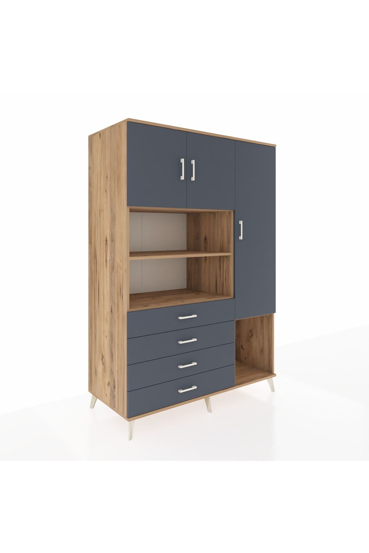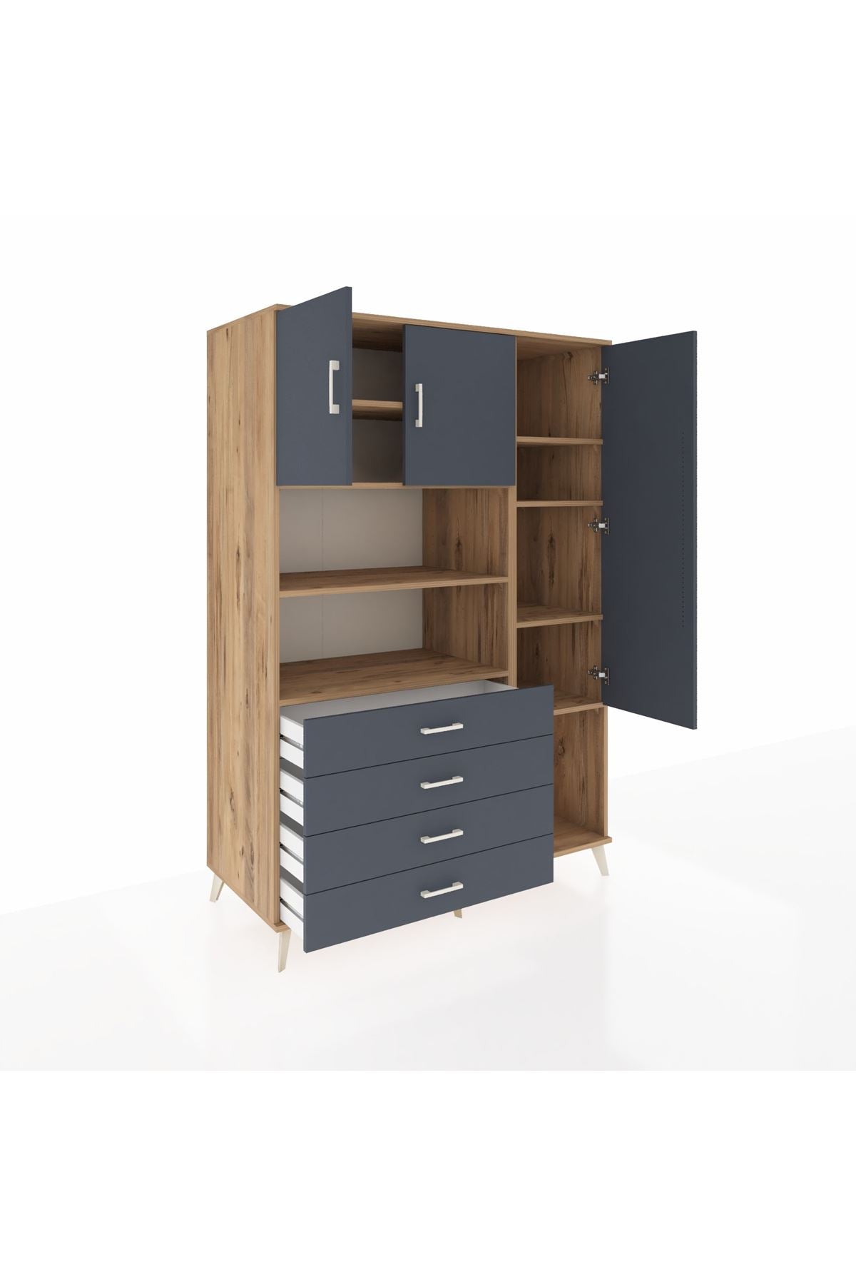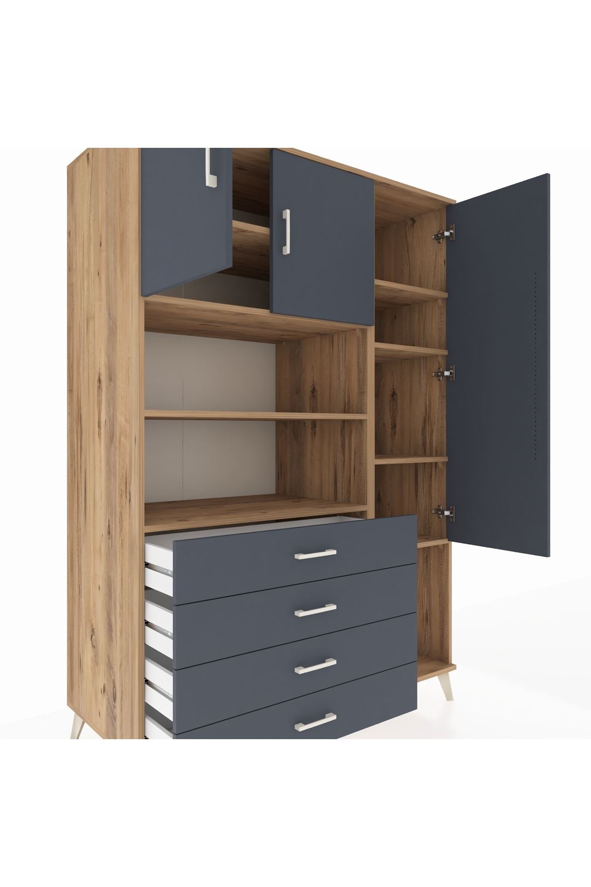 Kronos Dolap 8 Raflı 4 Çekmeceli 3 Kapaklı 132x59x195 Çam-Antrasit/Antrasit
