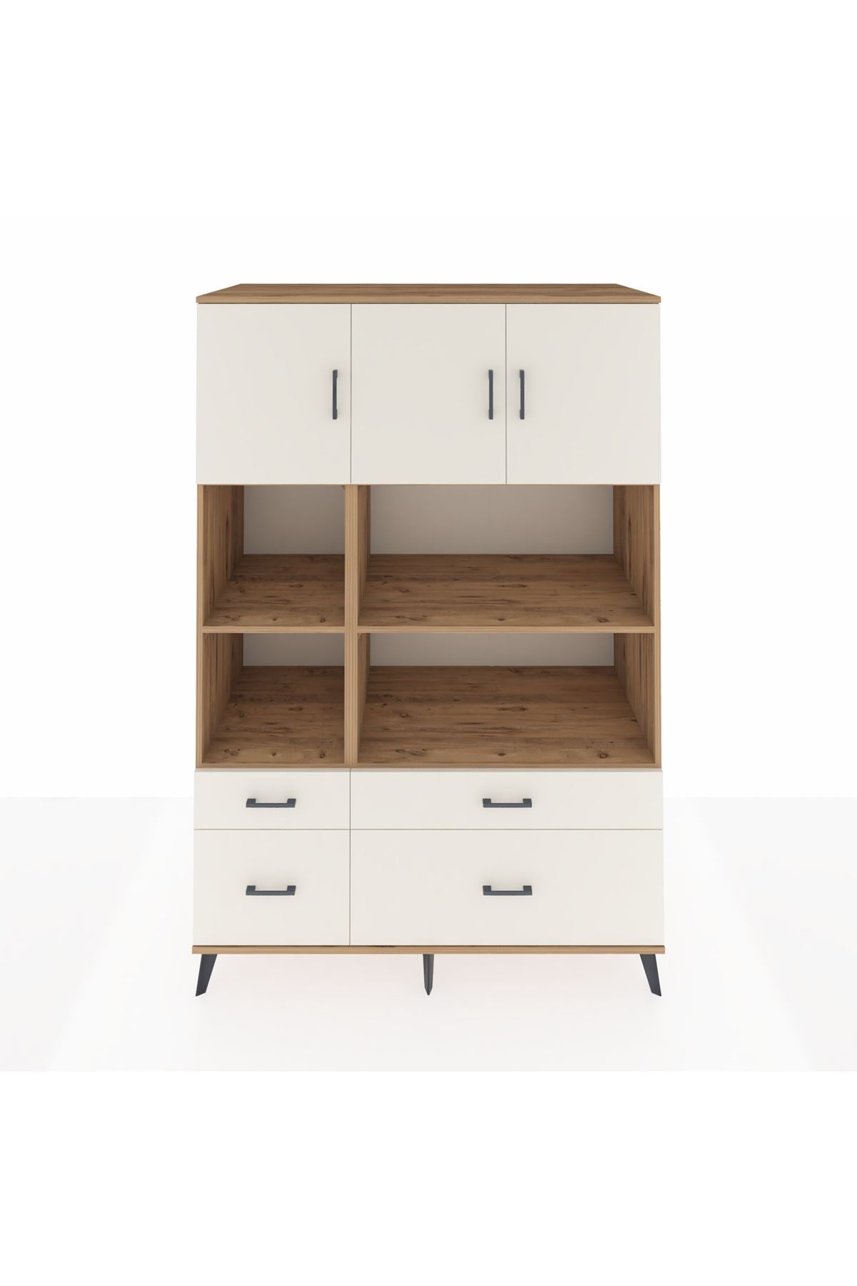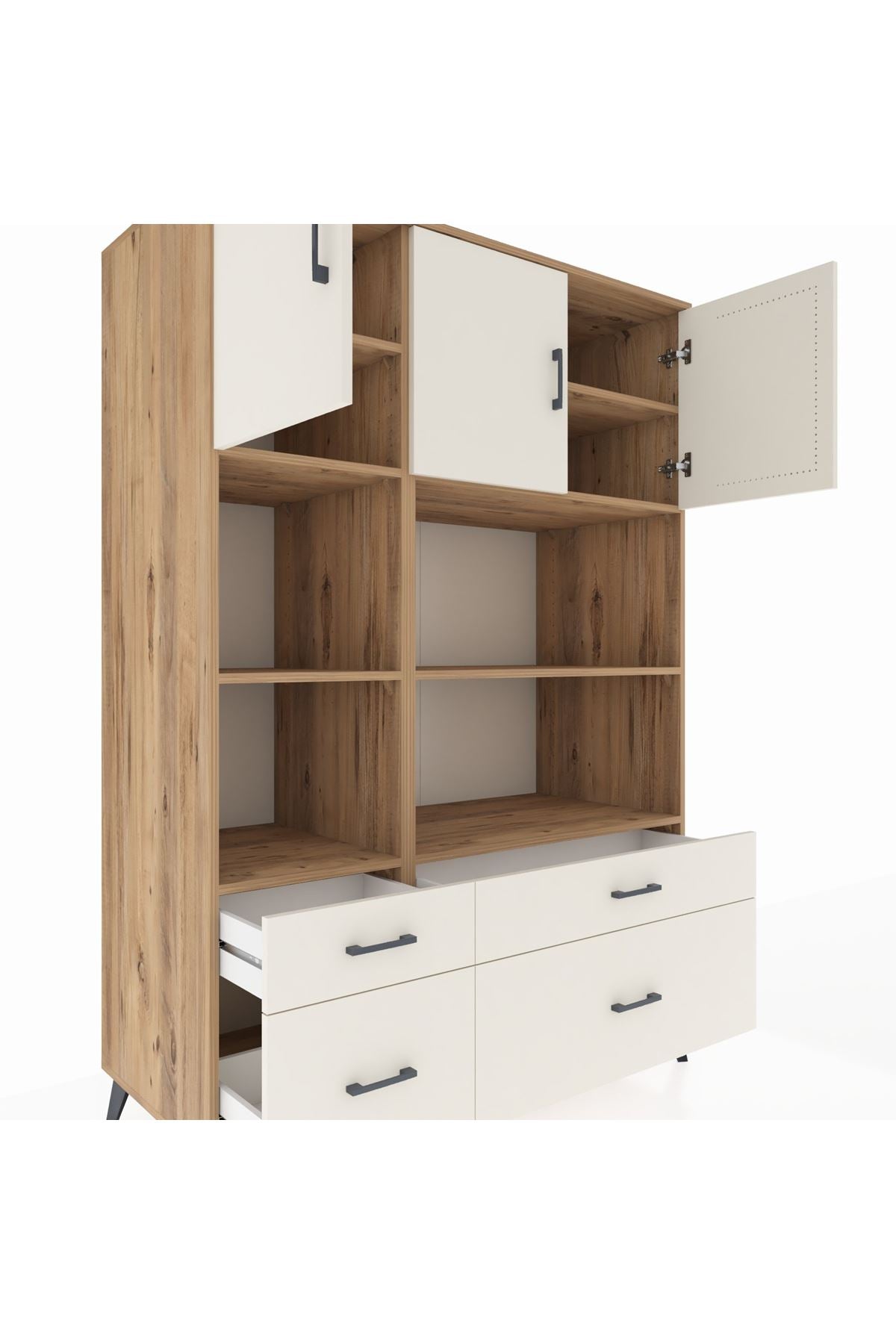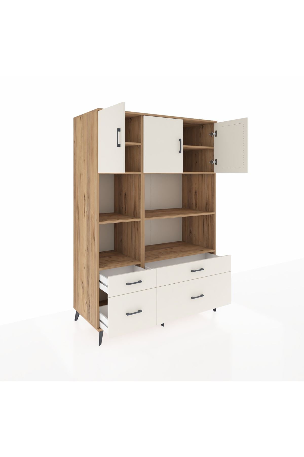 132 cm genişliği, 59 cm derinliği ve 195 cm yüksekliğiyle geniş saklama alanı sunar. 📏 3 kapaklı tasarımı, 8 adet rafı ve 4 kullanışlı çekmecesi sayesinde evinizdeki tüm dağınıklığı pratikçe toplar. Çam ve aytaşı renklerinin uyumuyla modern dekorasyonlara mükemmel uyum sağlar.