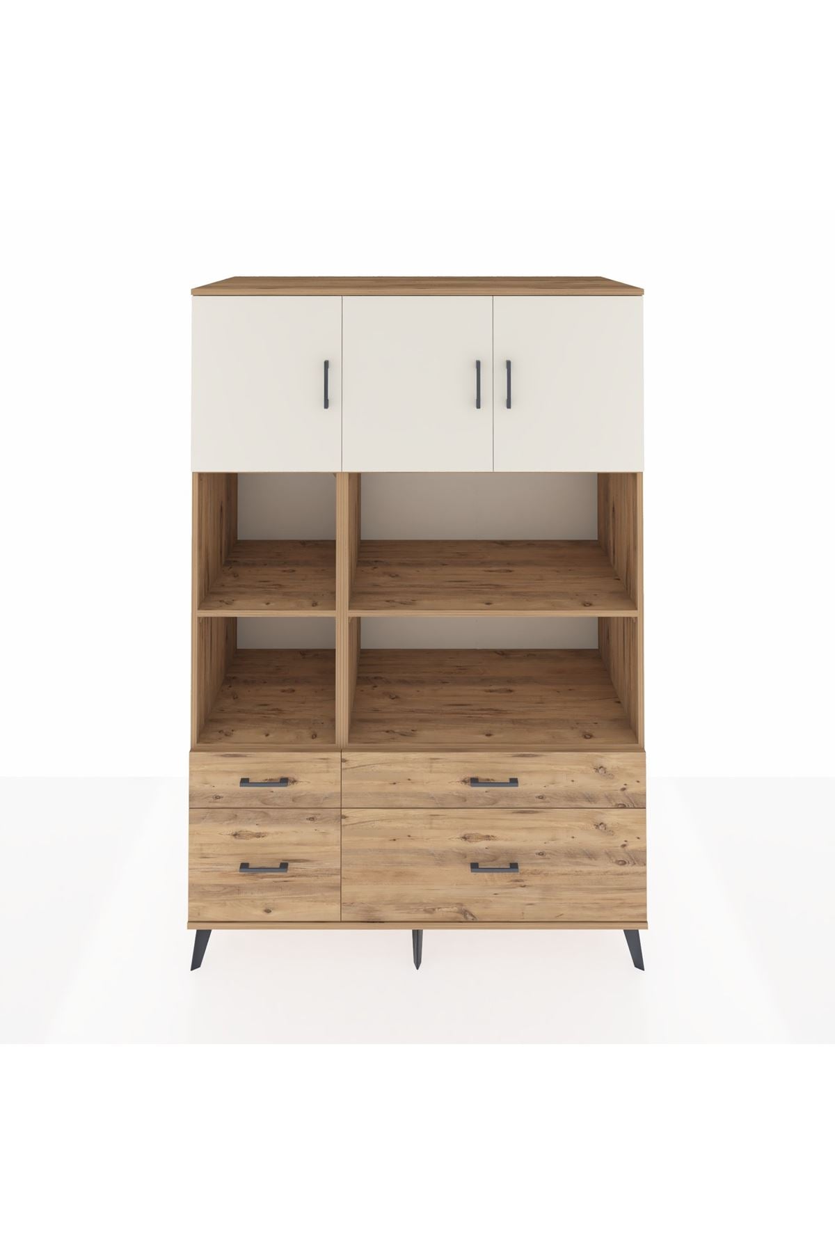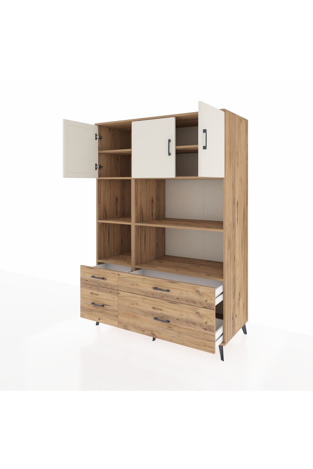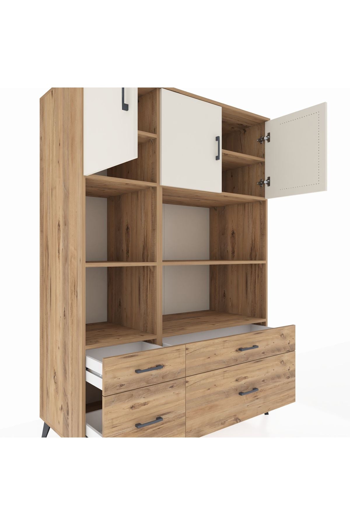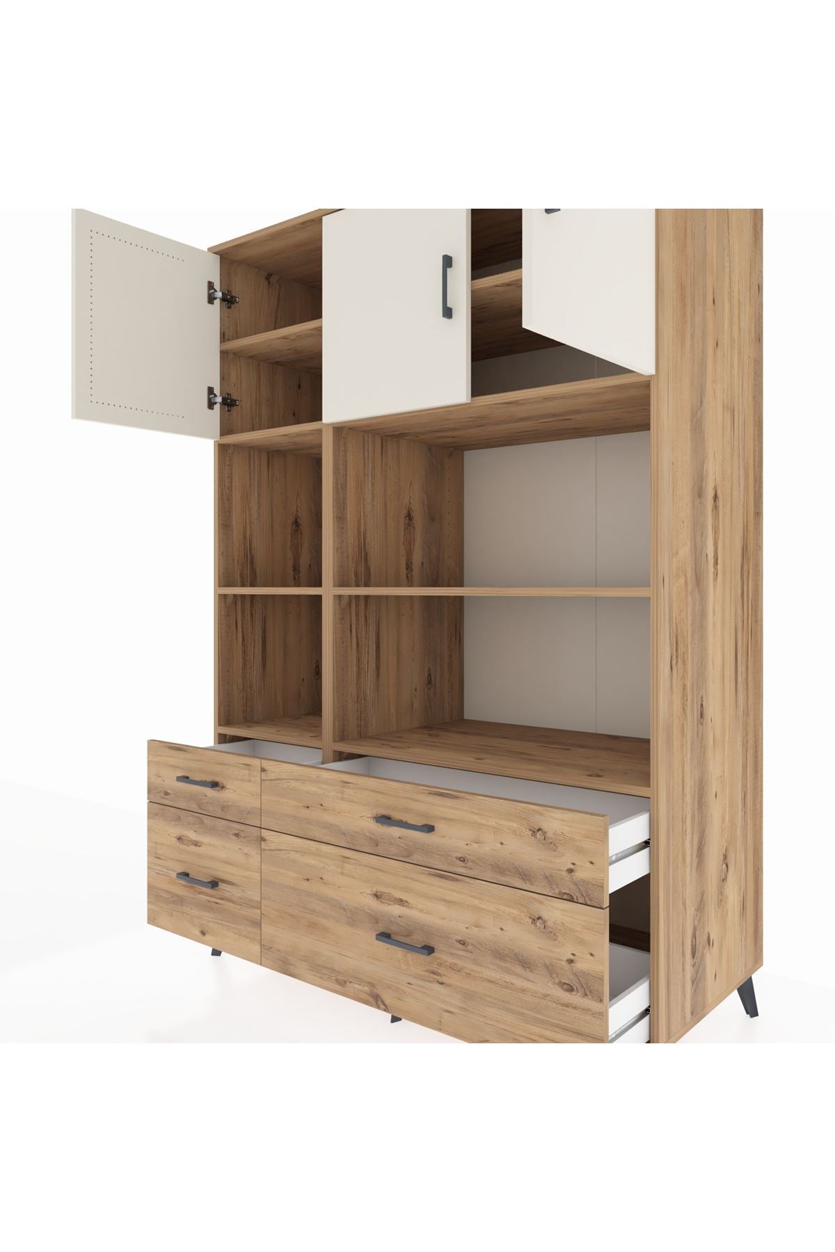 Kronos Dolap 8 Raflı 4 Çekmeceli 3 Kapaklı 132x59x195 Çam-Aytaşı/Çam