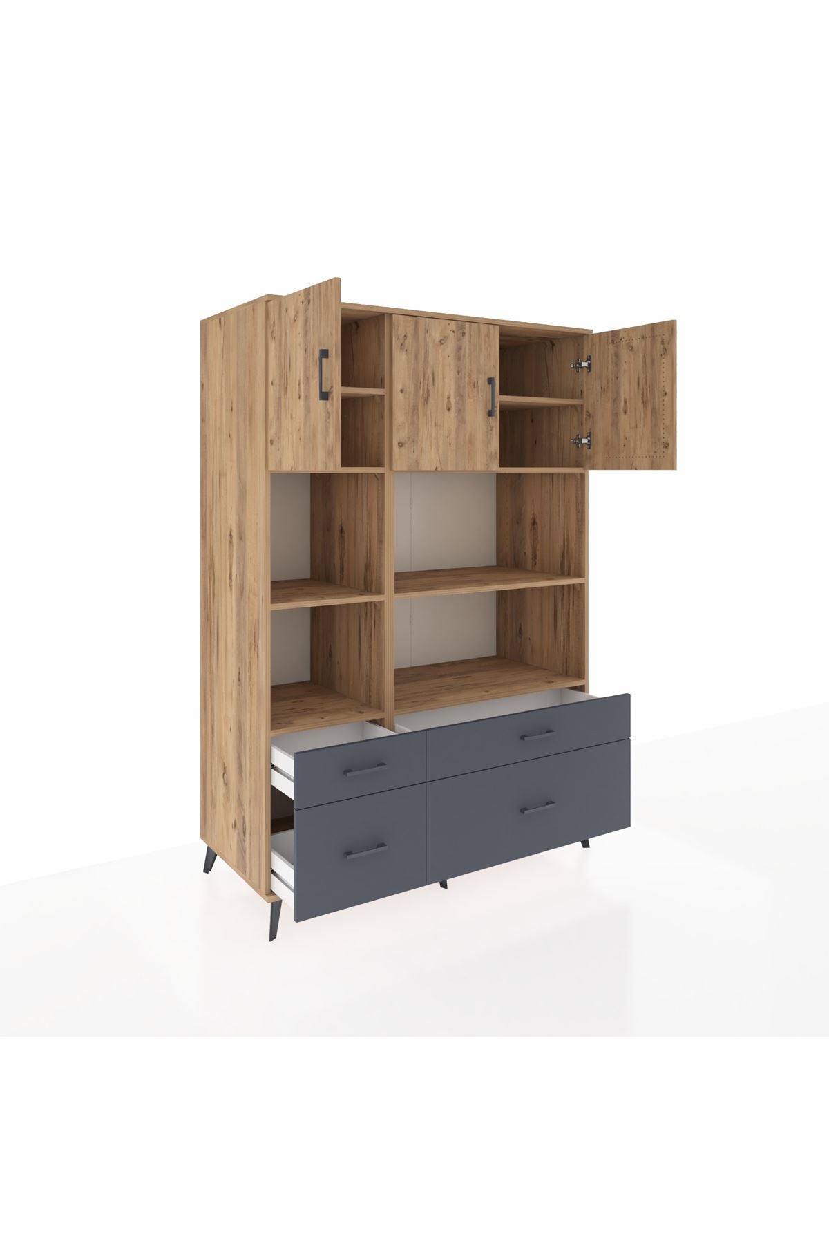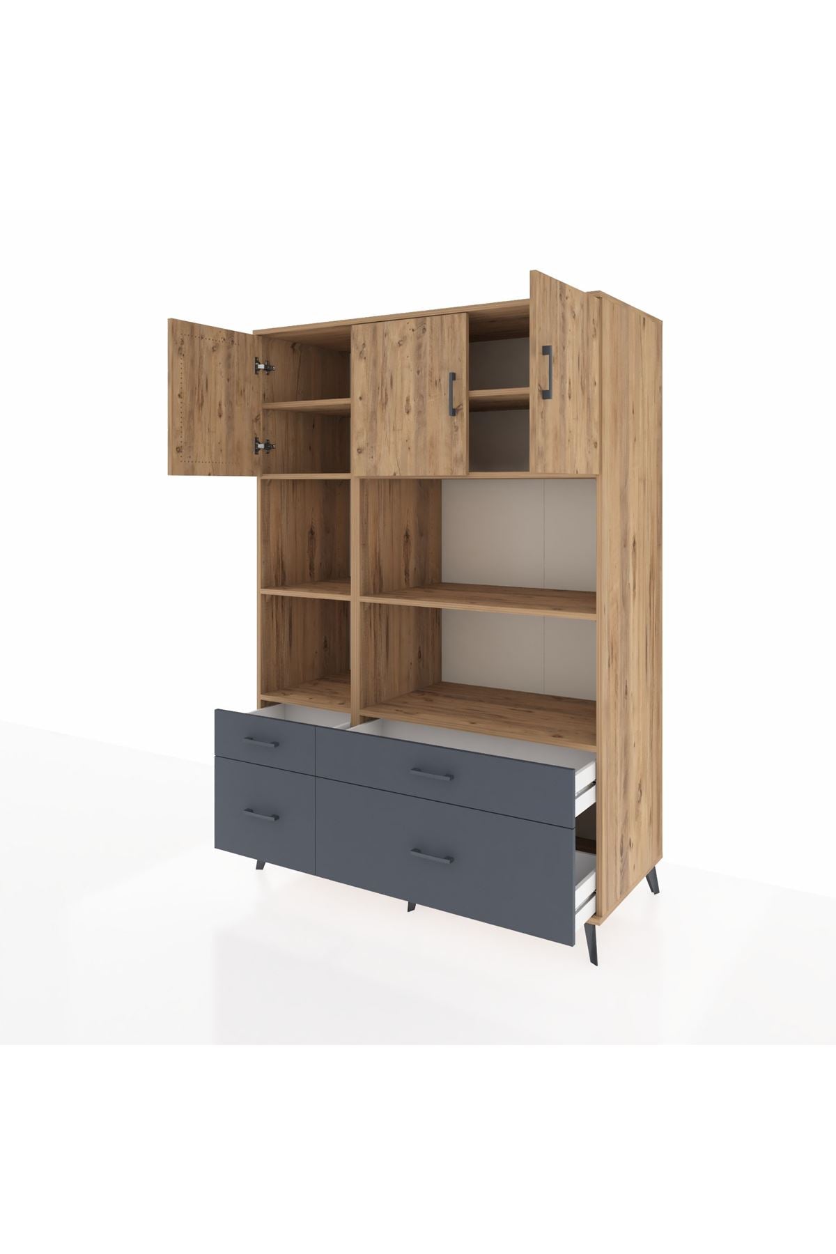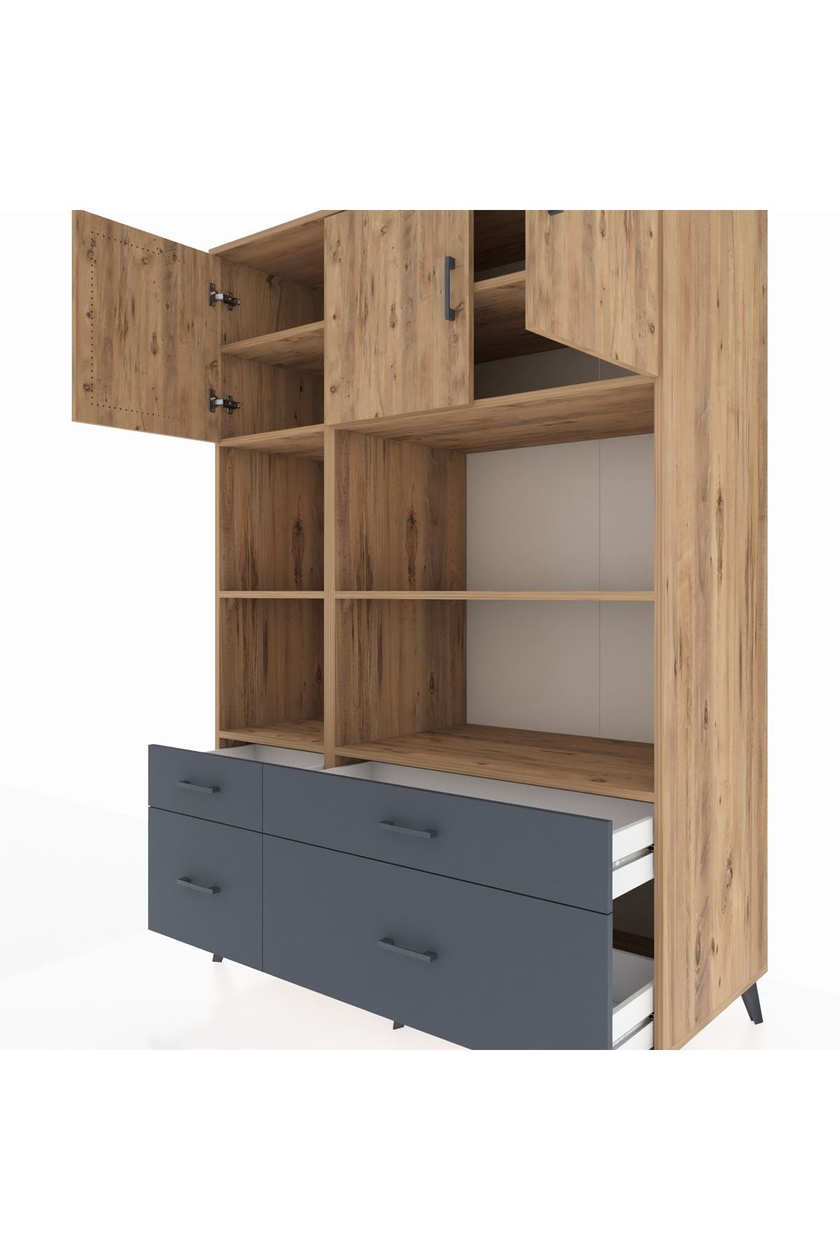 Kronos Dolap 8 Raflı 4 Çekmeceli 3 Kapaklı 132x59x195 Çam-Çam/Antrasit