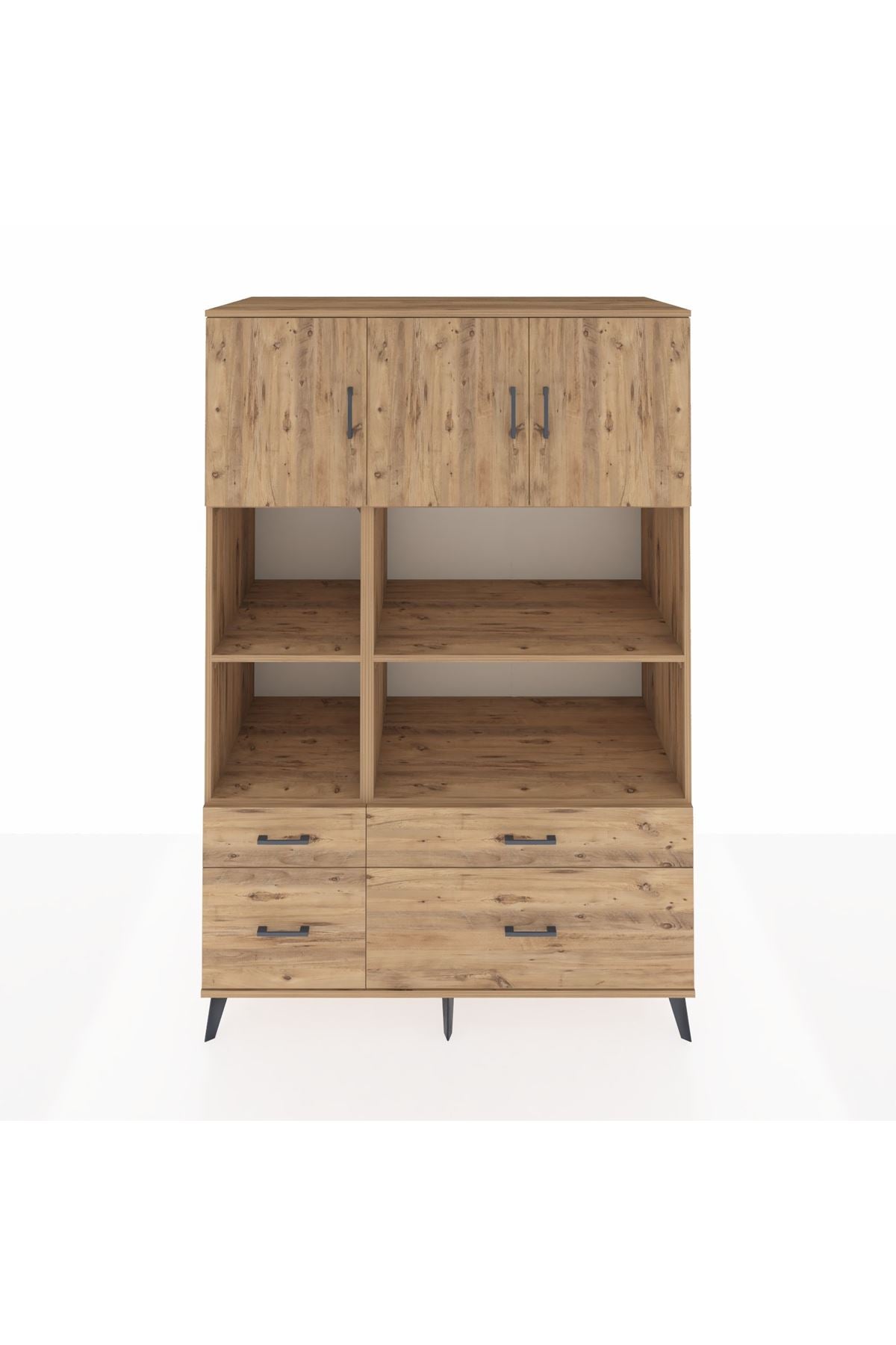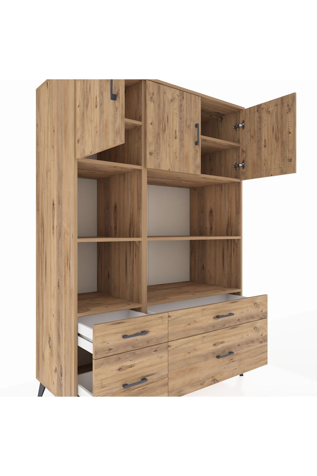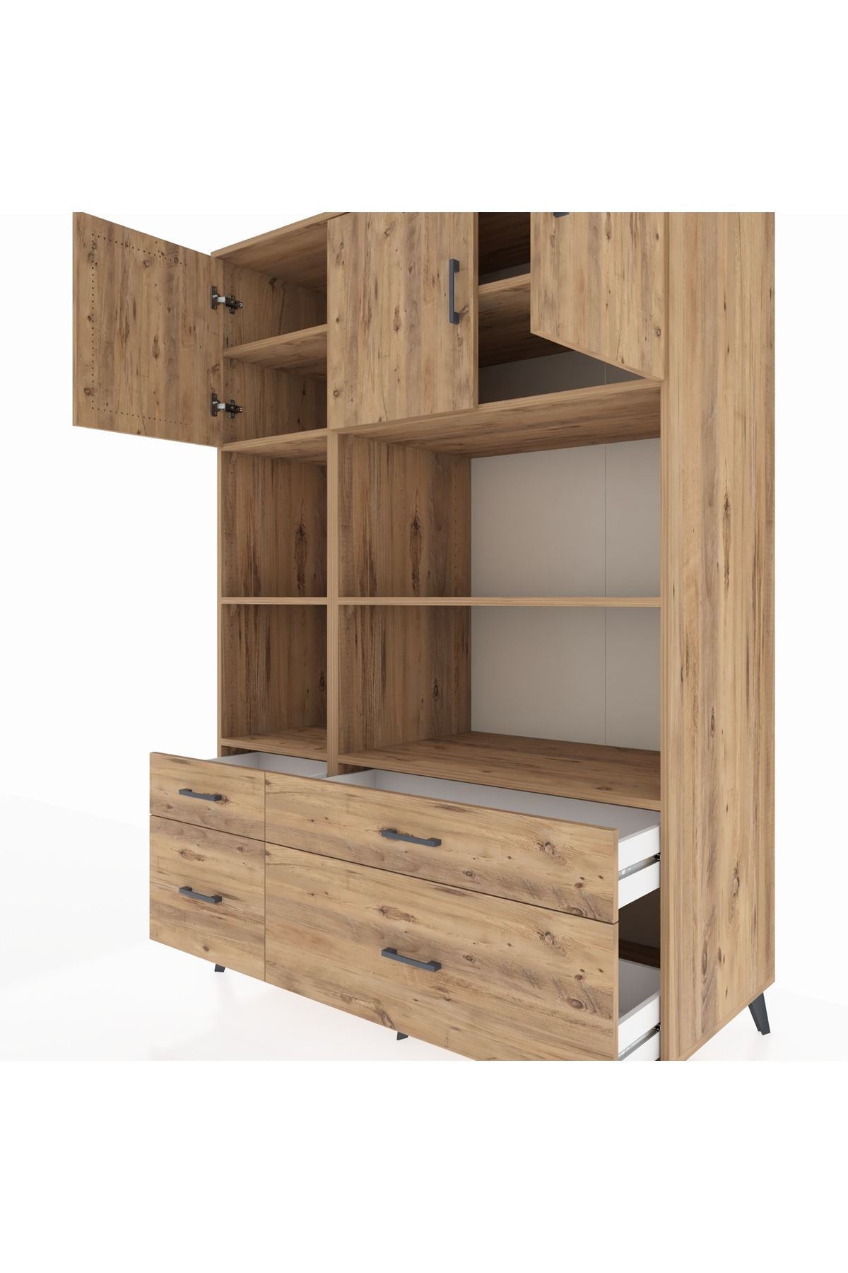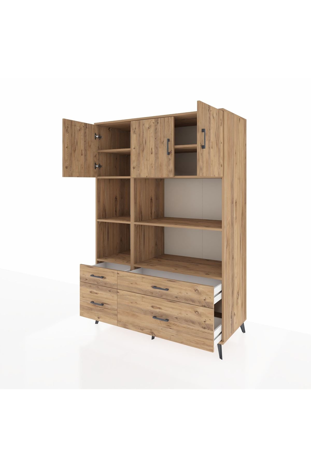 Kronos Dolap 8 Raflı 4 Çekmeceli 3 Kapaklı 132x59x195 Çam-Çam/Çam