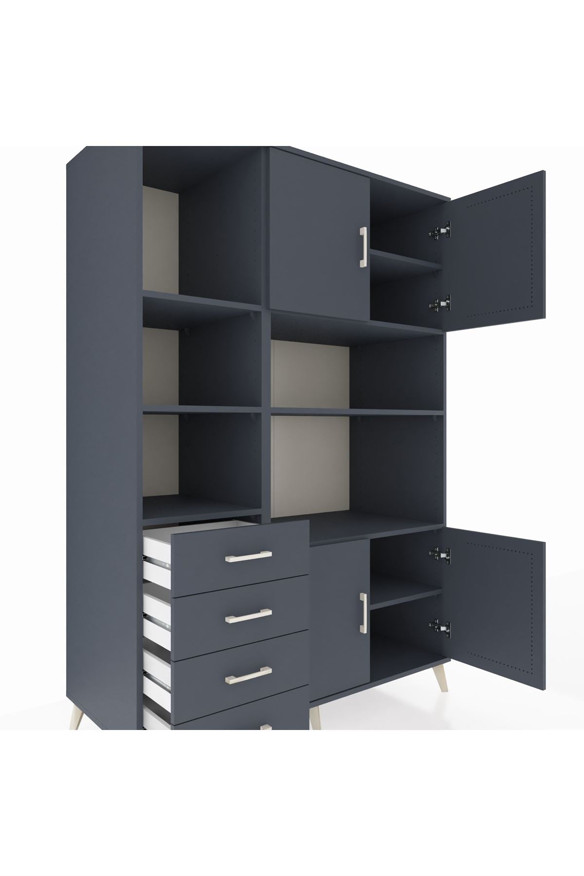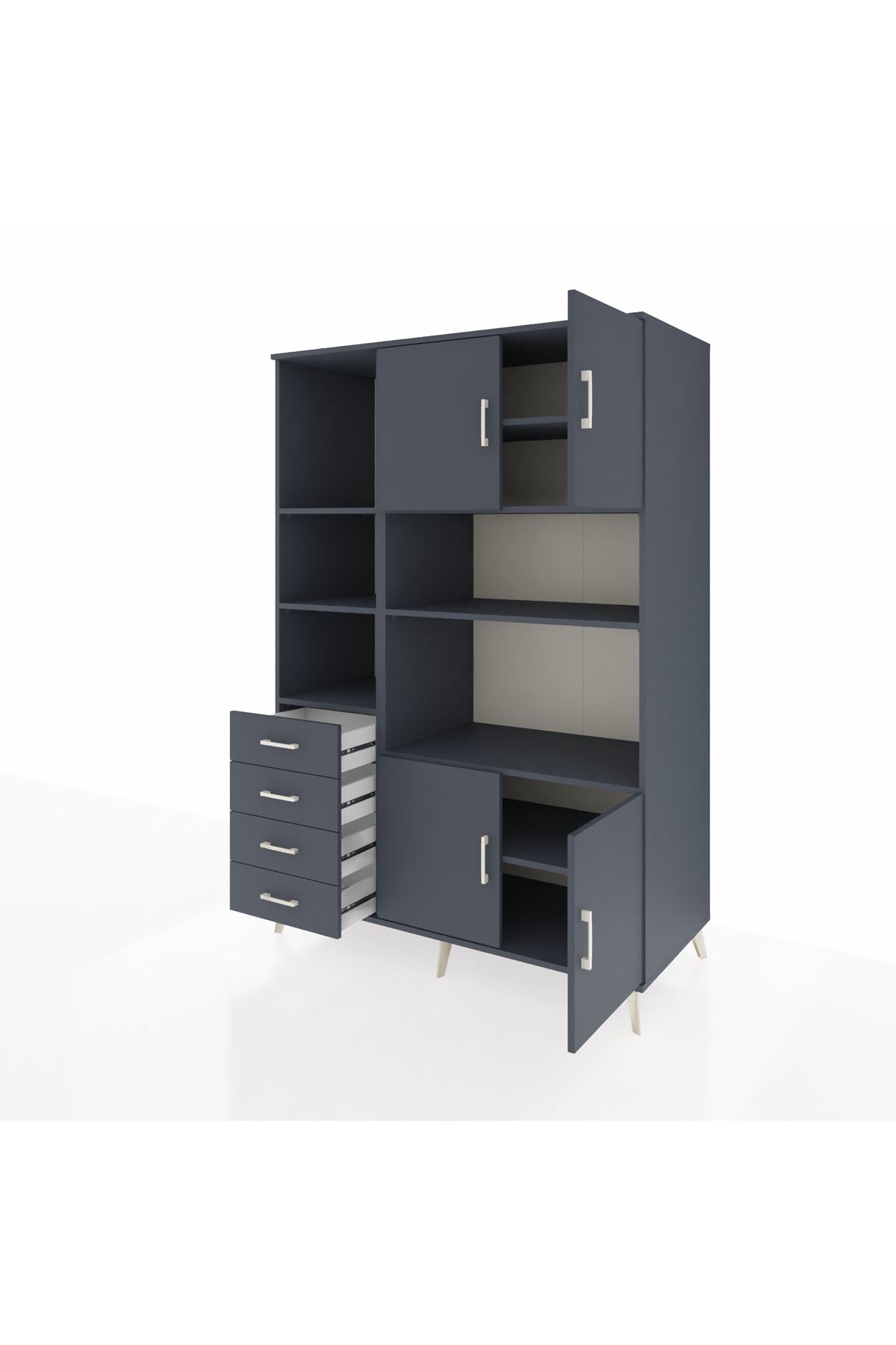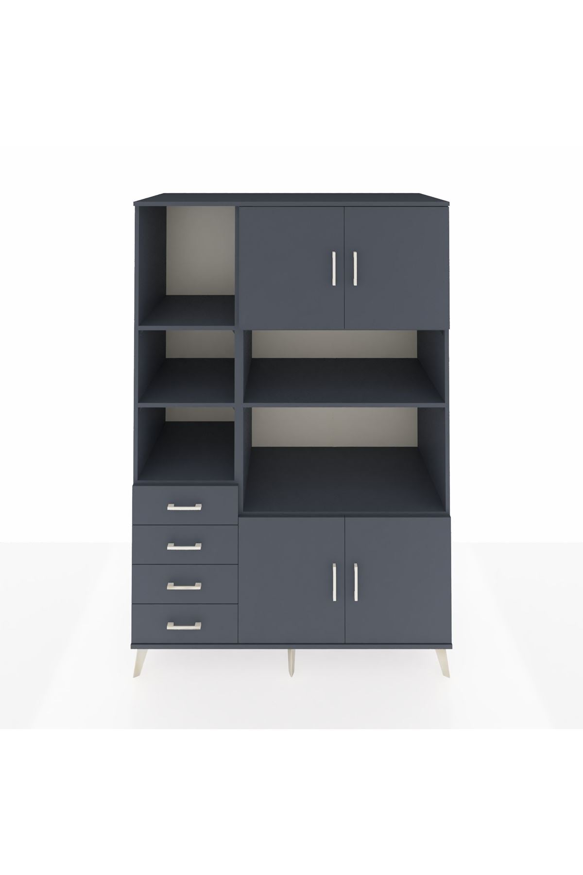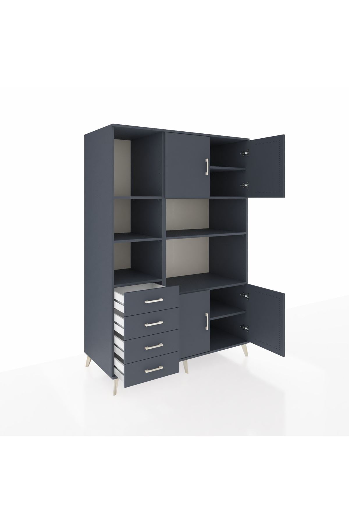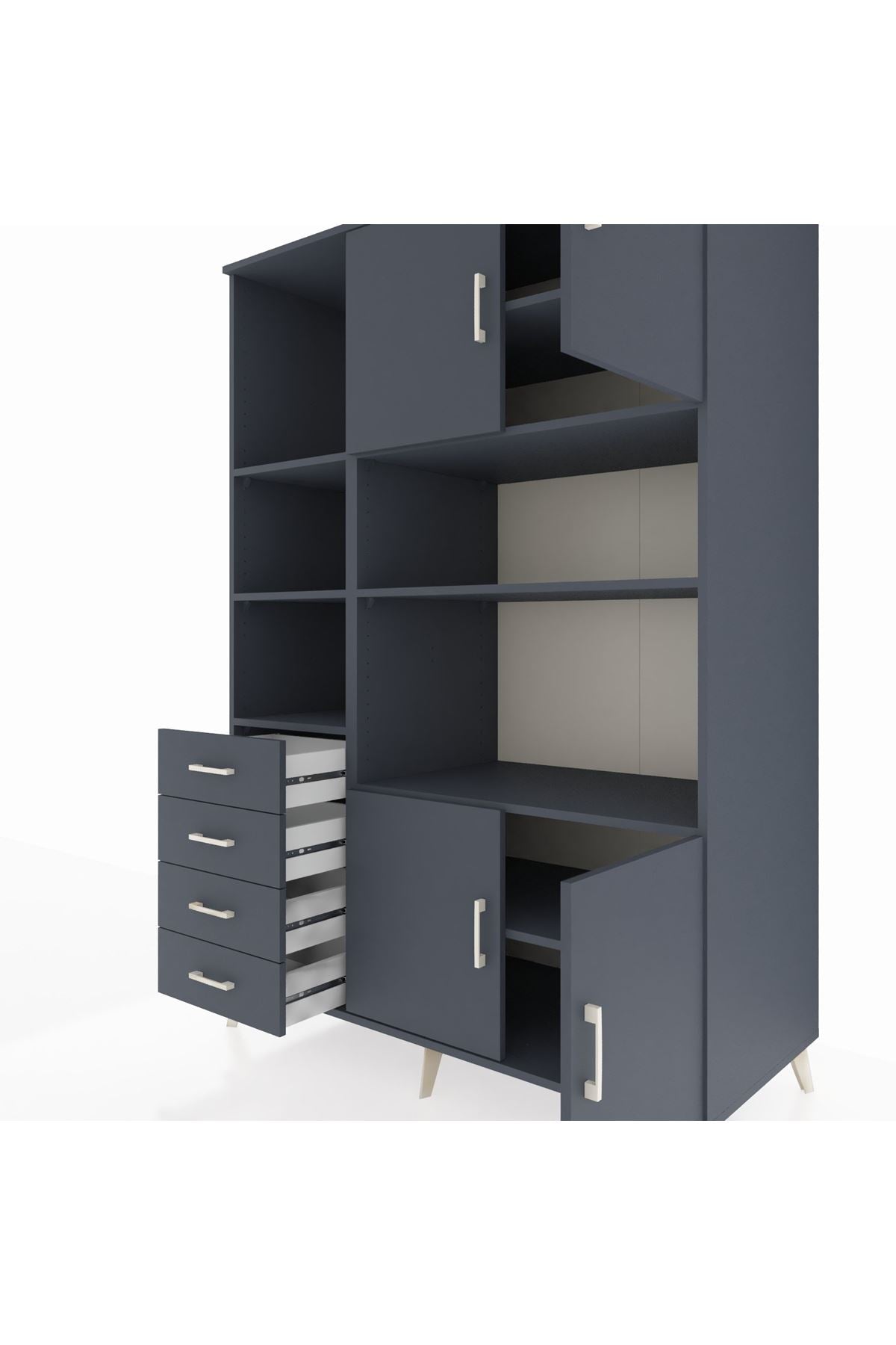 Kronos Dolap 8 Raflı 4 Çekmeceli 4 Kapaklı 132x59x195 Antrasit-Antrasit/Antrasit