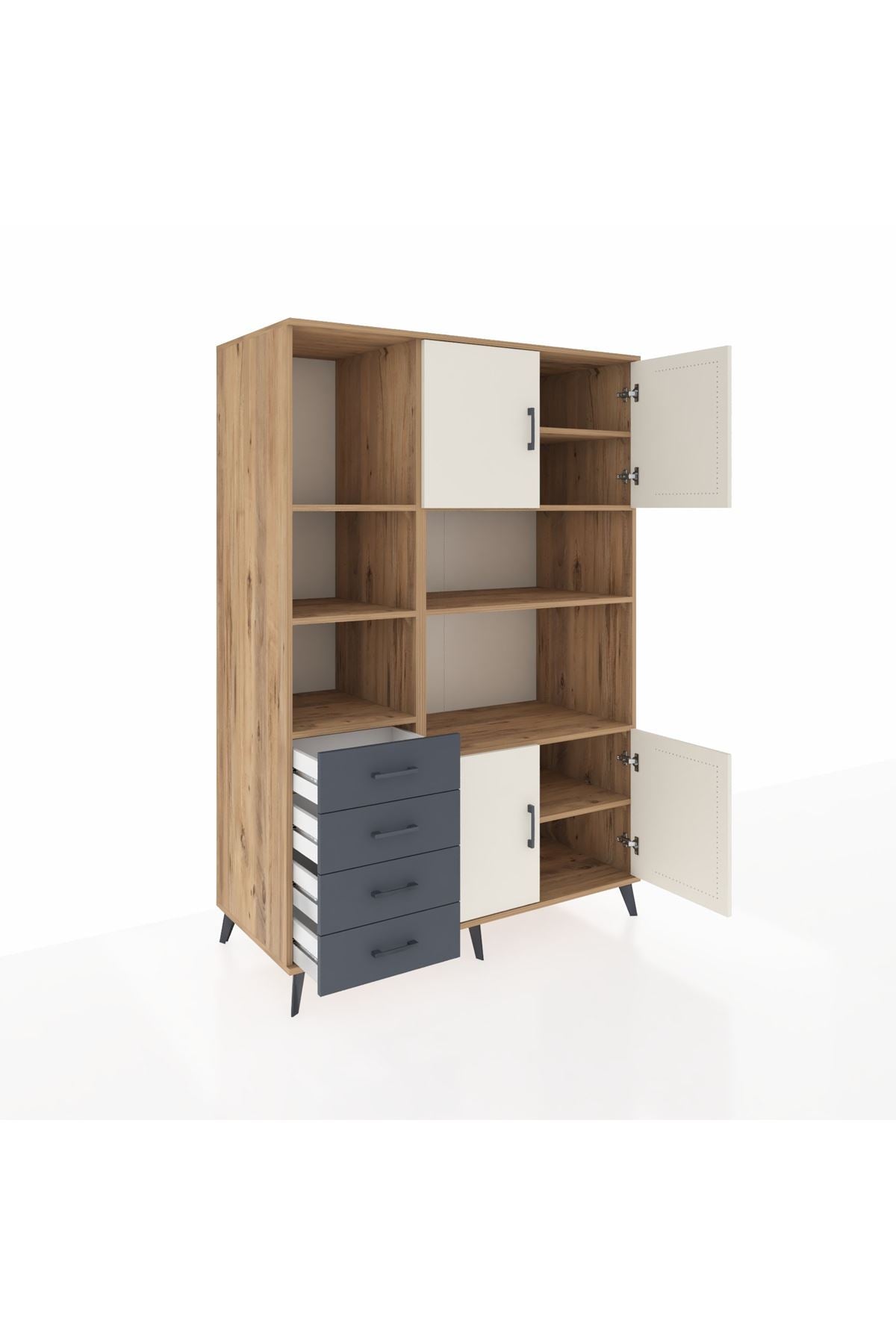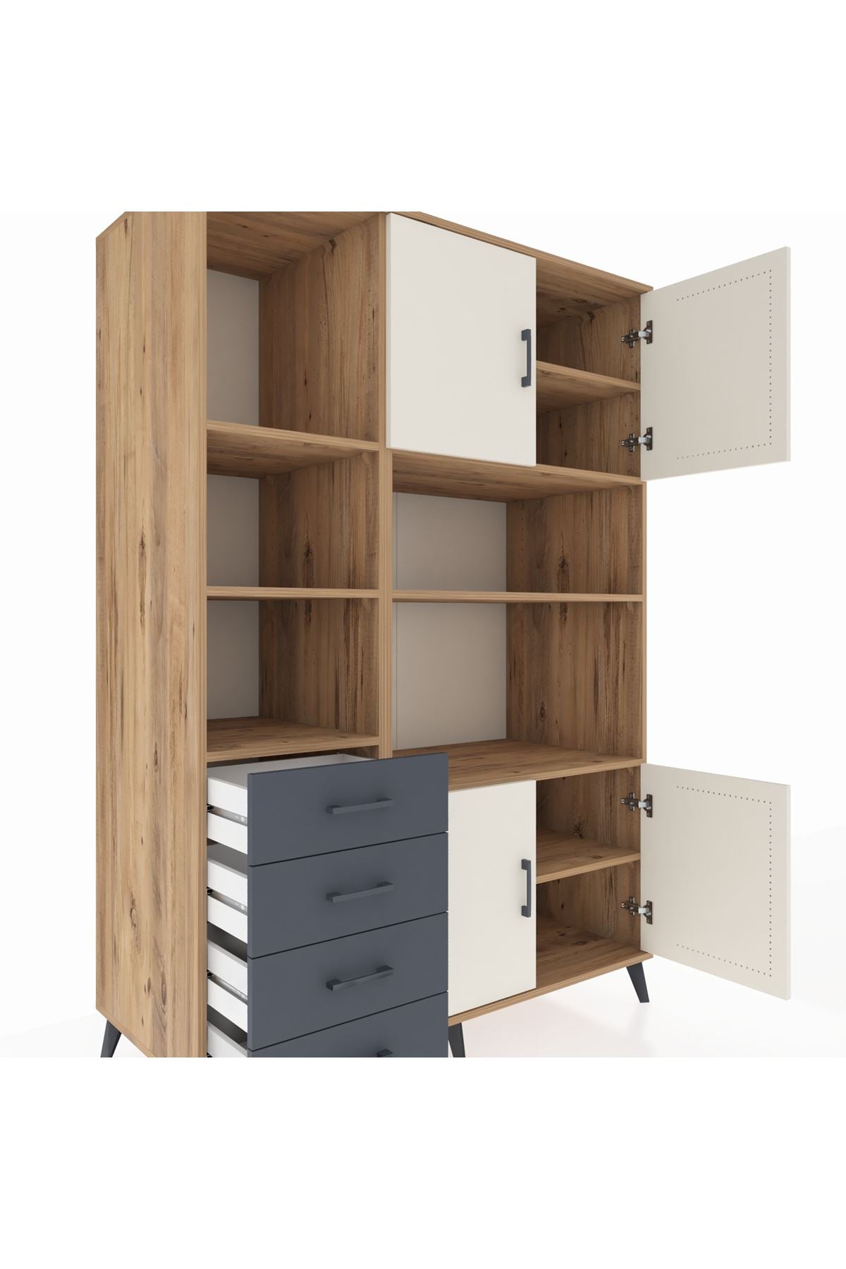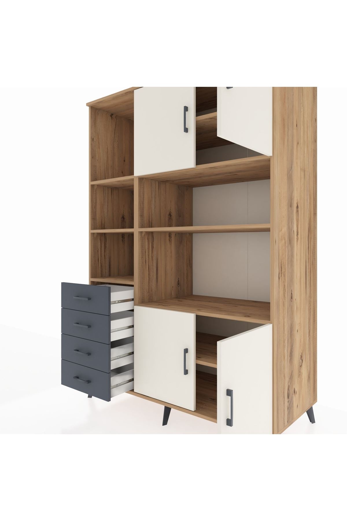 Kronos Dolap 8 Raflı 4 Çekmeceli 4 Kapaklı 132x59x195 Çam-Aytaşı/Antrasit