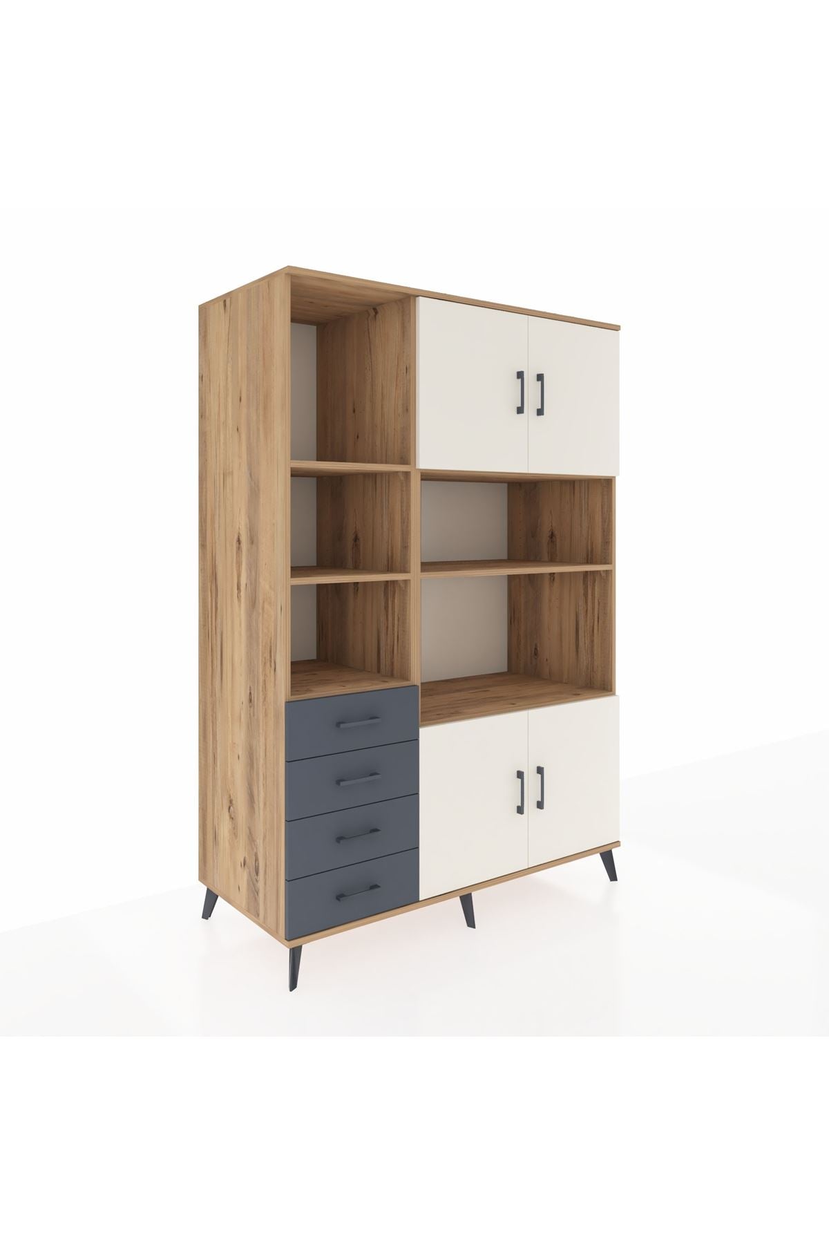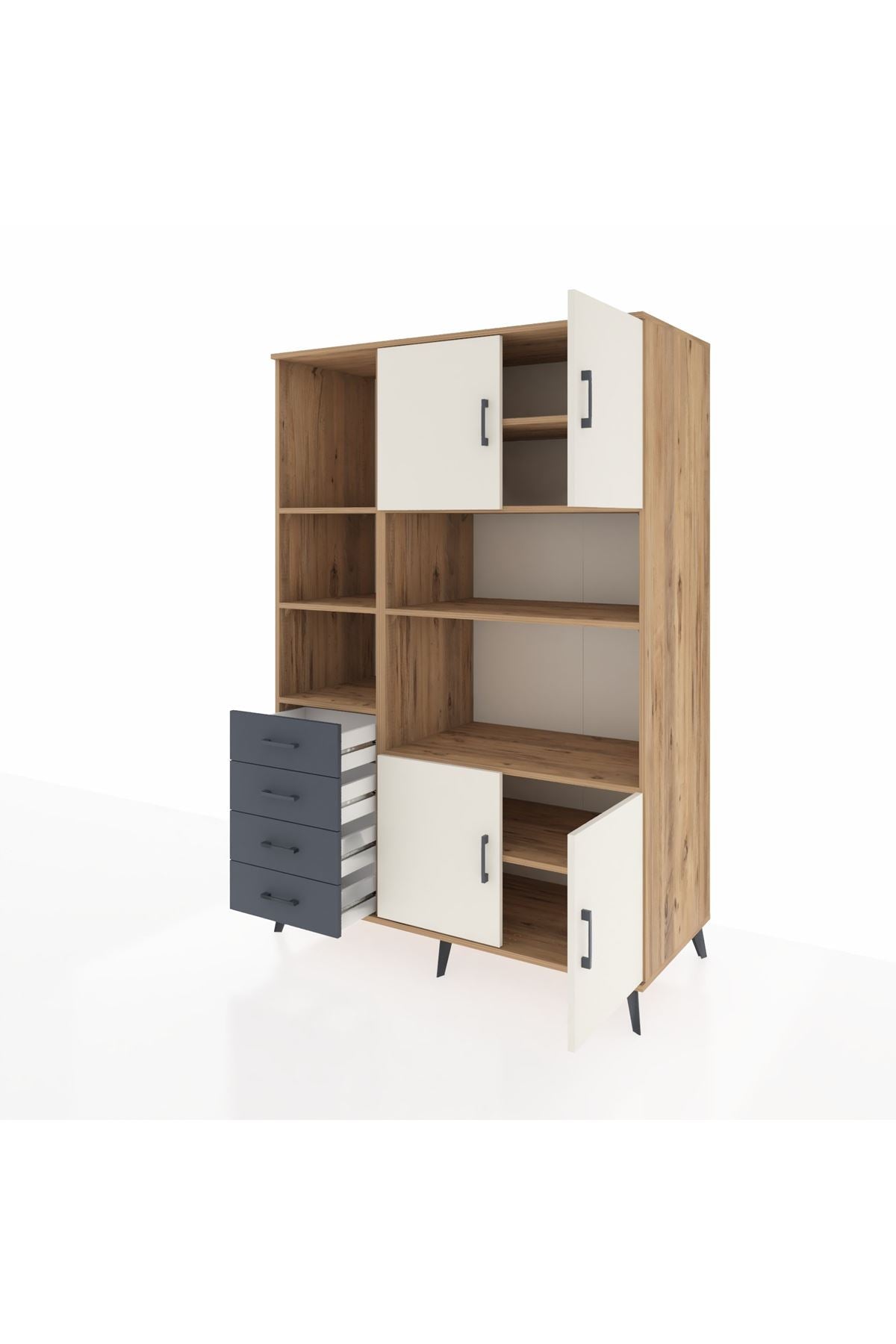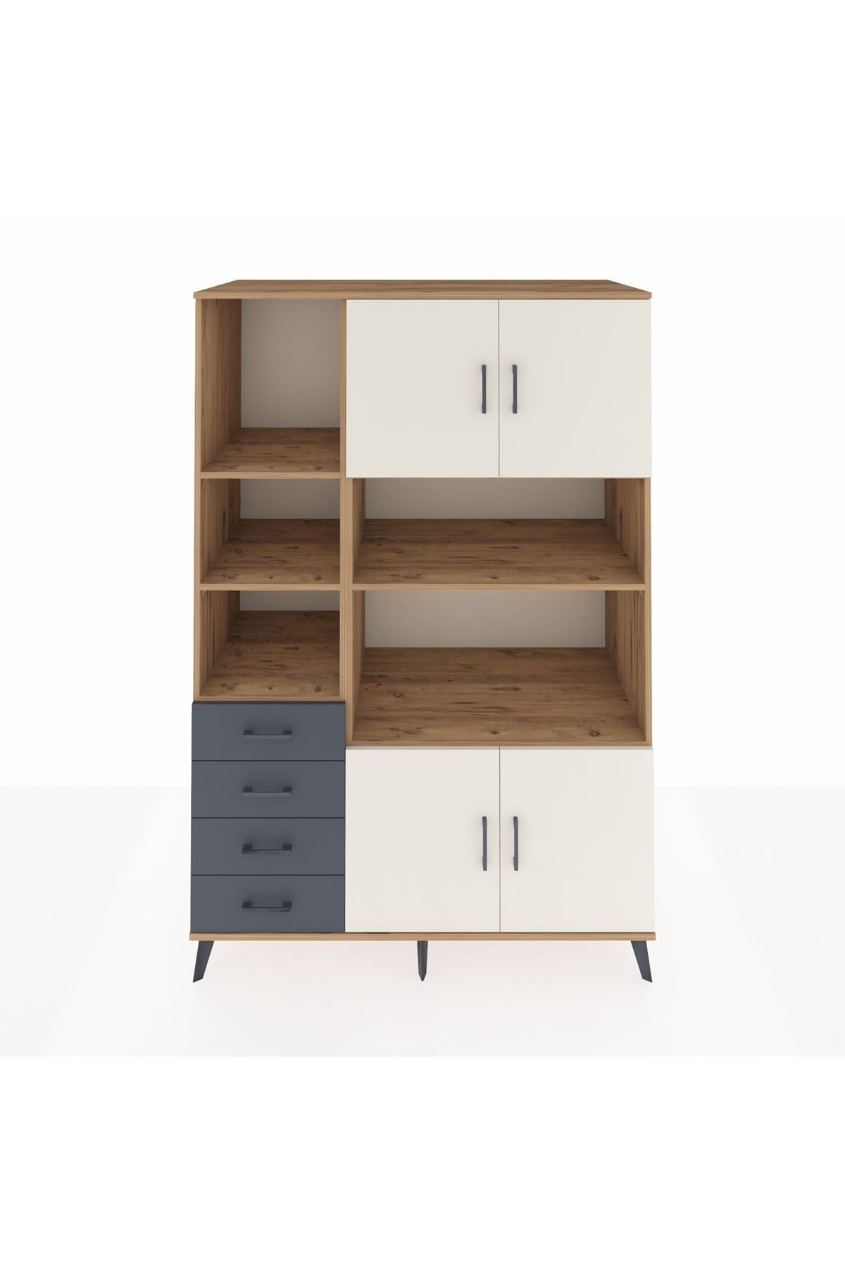 Kronos Dolap 8 Raflı 4 Çekmeceli 4 Kapaklı 132x59x195 Çam-Aytaşı/Antrasit