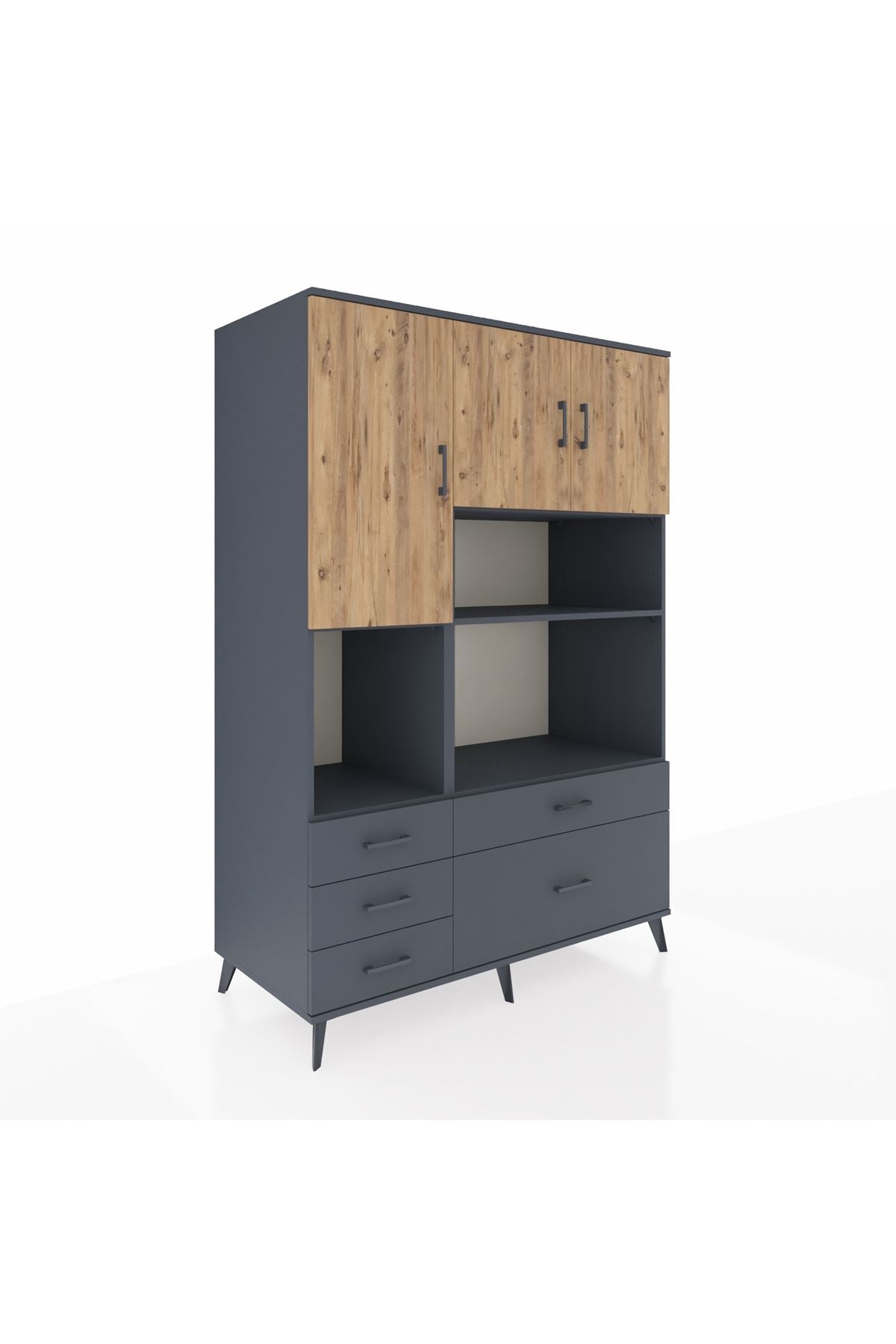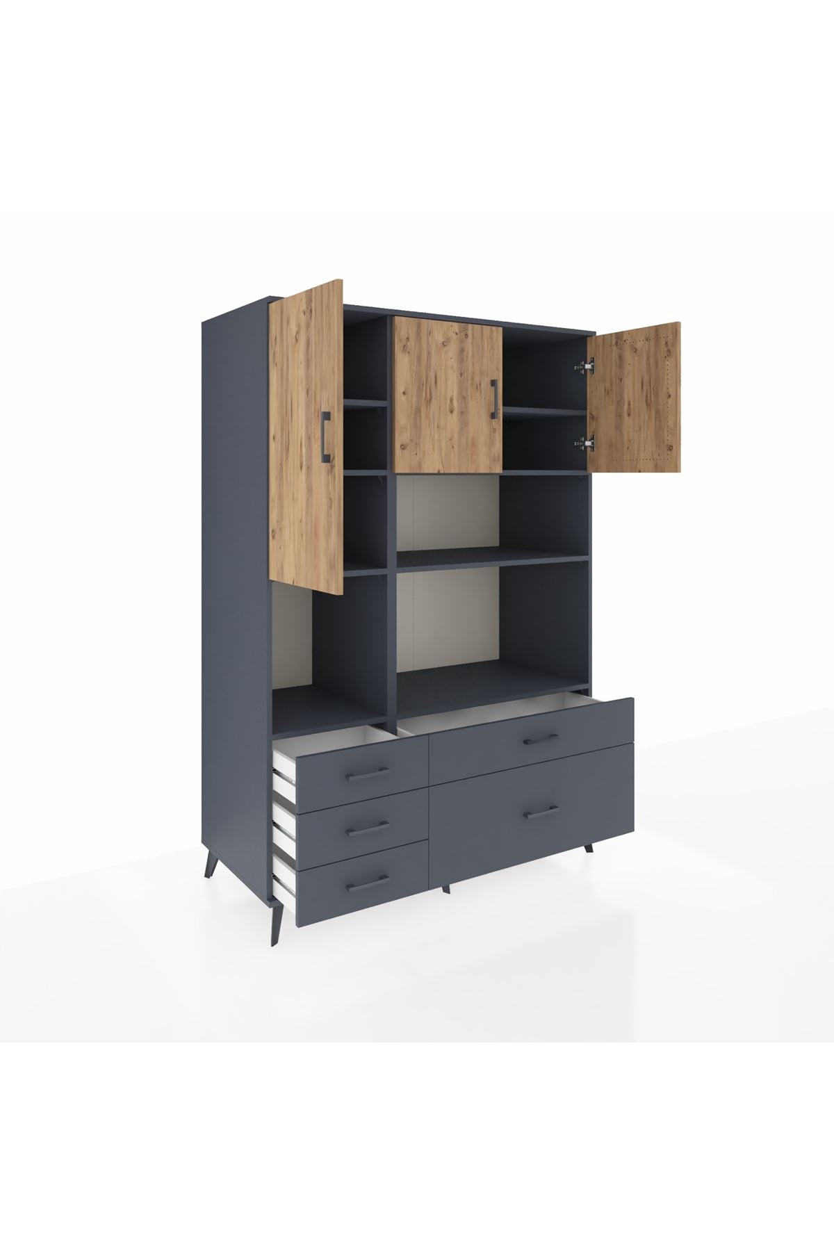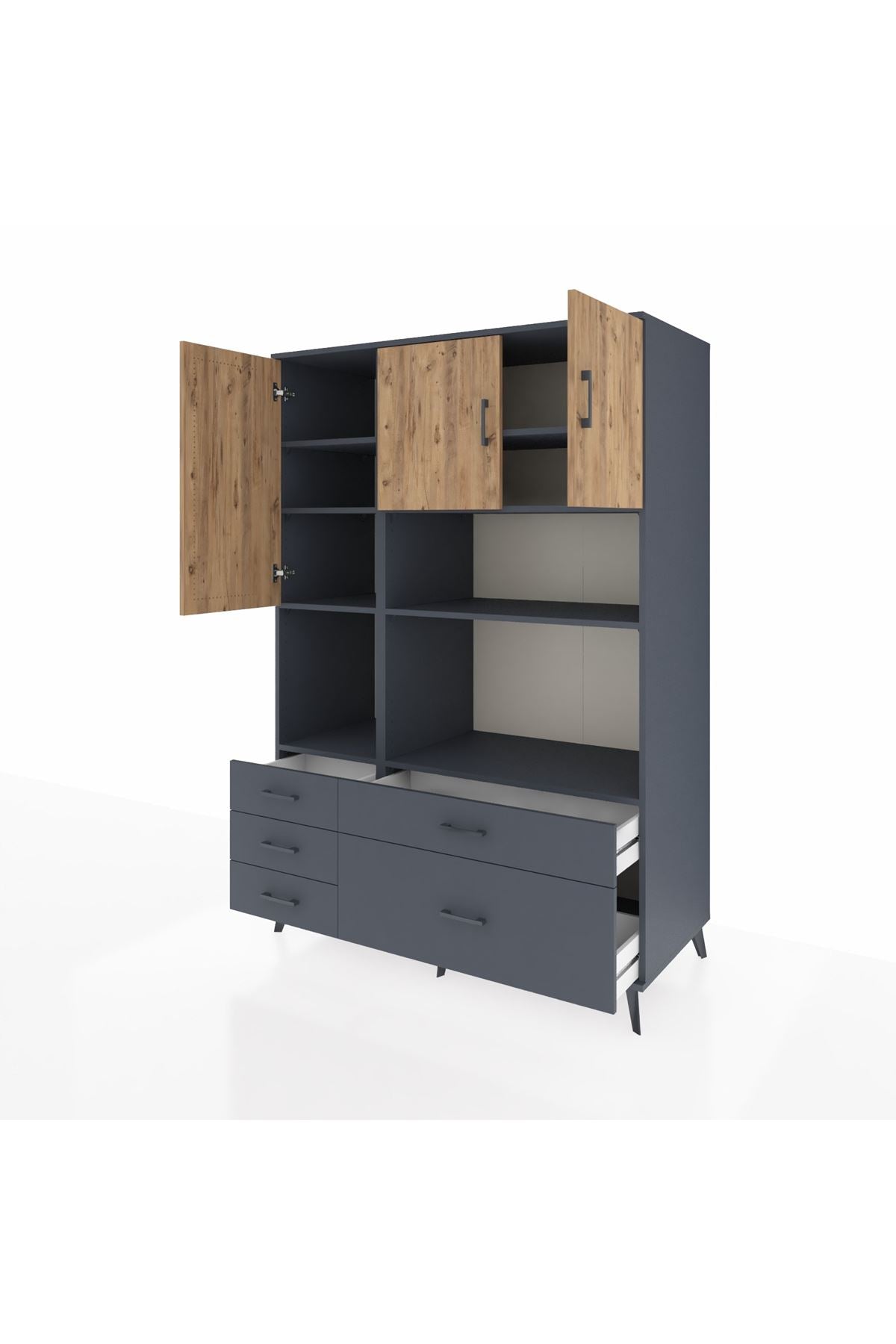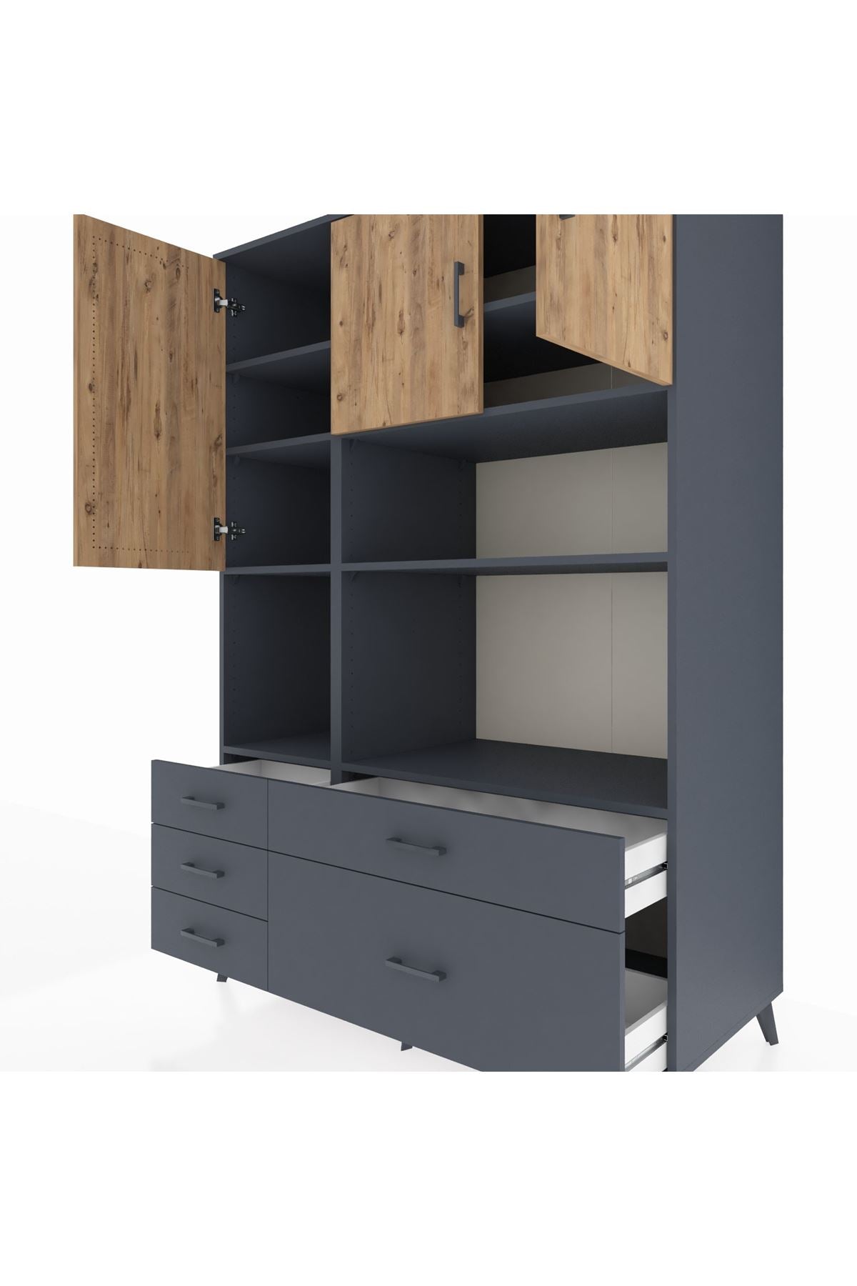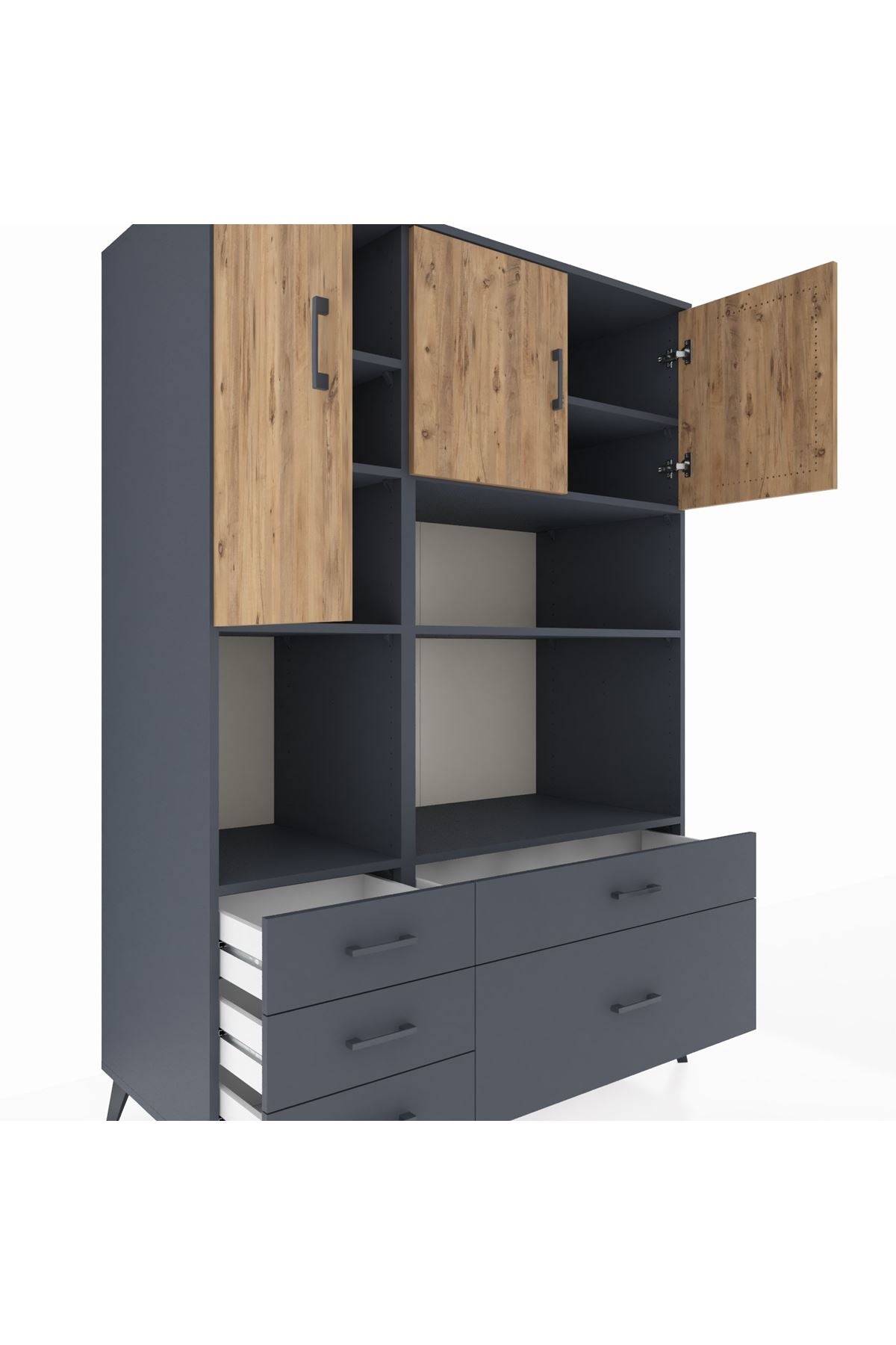 Kronos Dolap 8 Raflı 5 Çekmeceli 3 Kapaklı 132x59x195 Antrasit-Çam/Antrasit