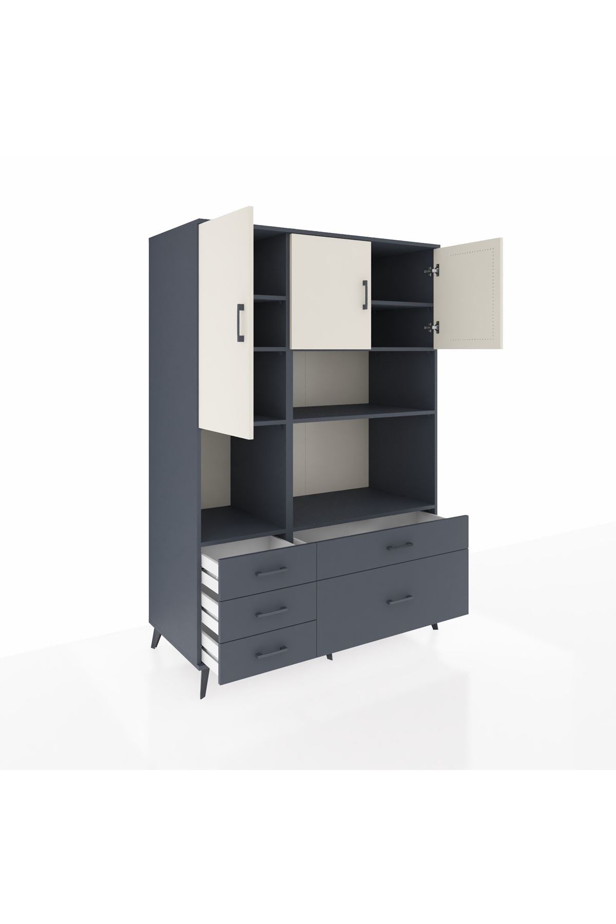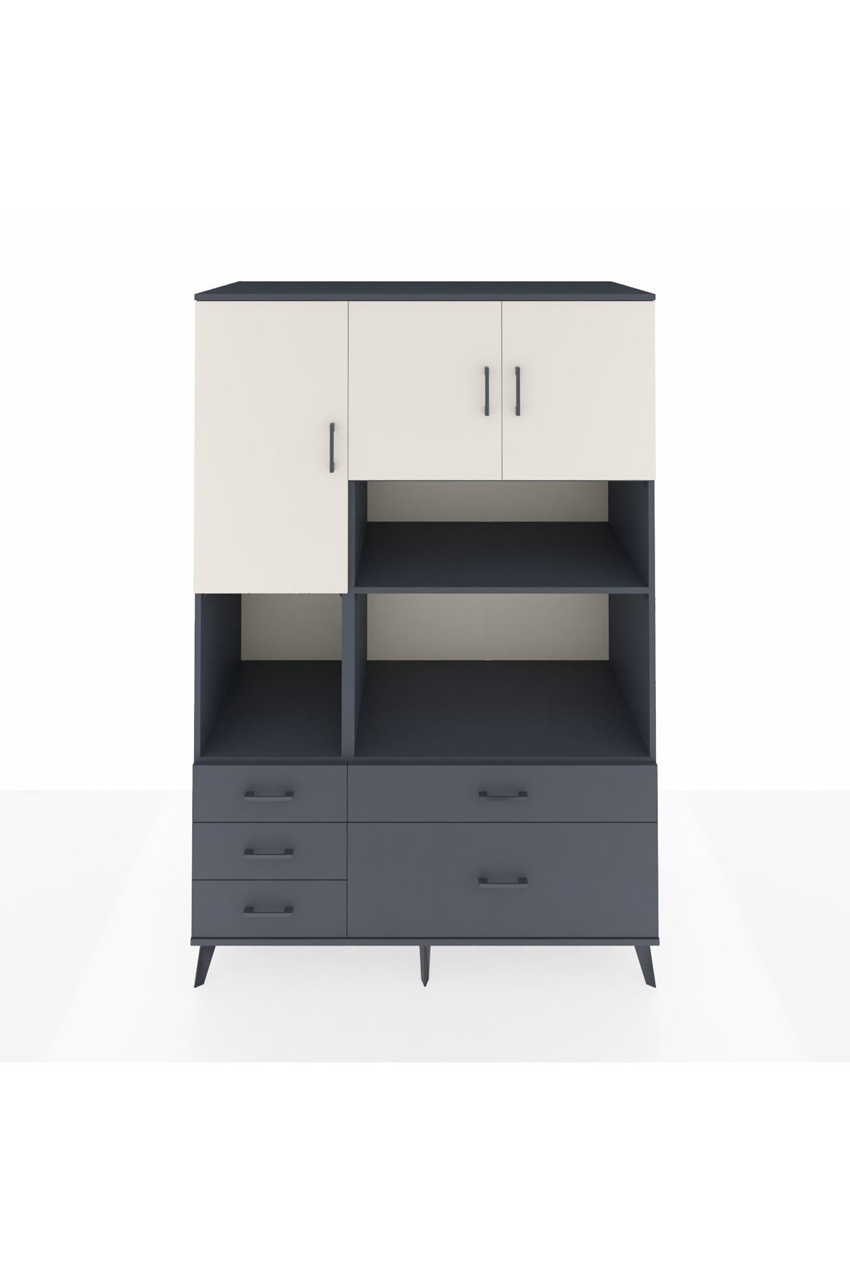 Kronos Dolap 8 Raflı 5 Çekmeceli 3 Kapaklı 132x59x195 Antrasit-Aytaşı/Antrasit