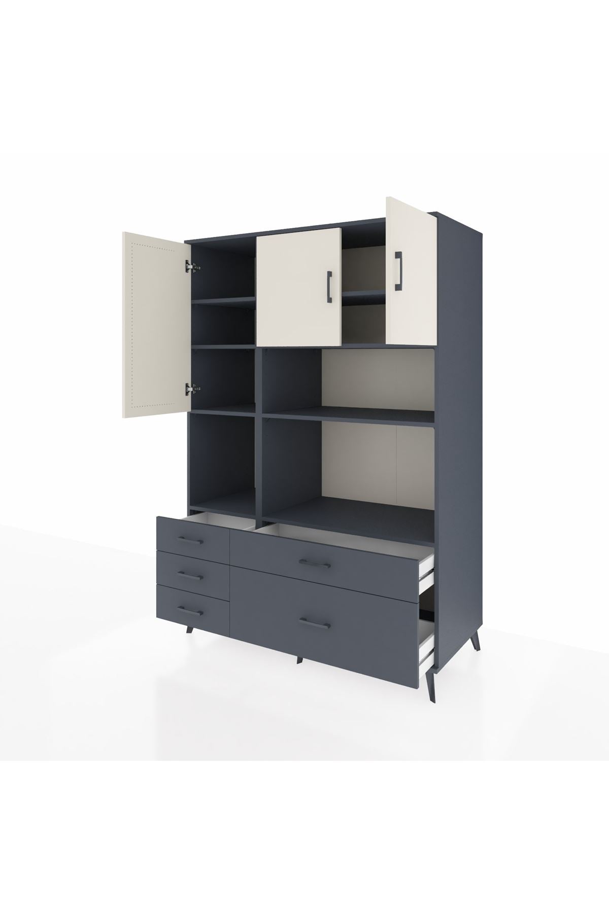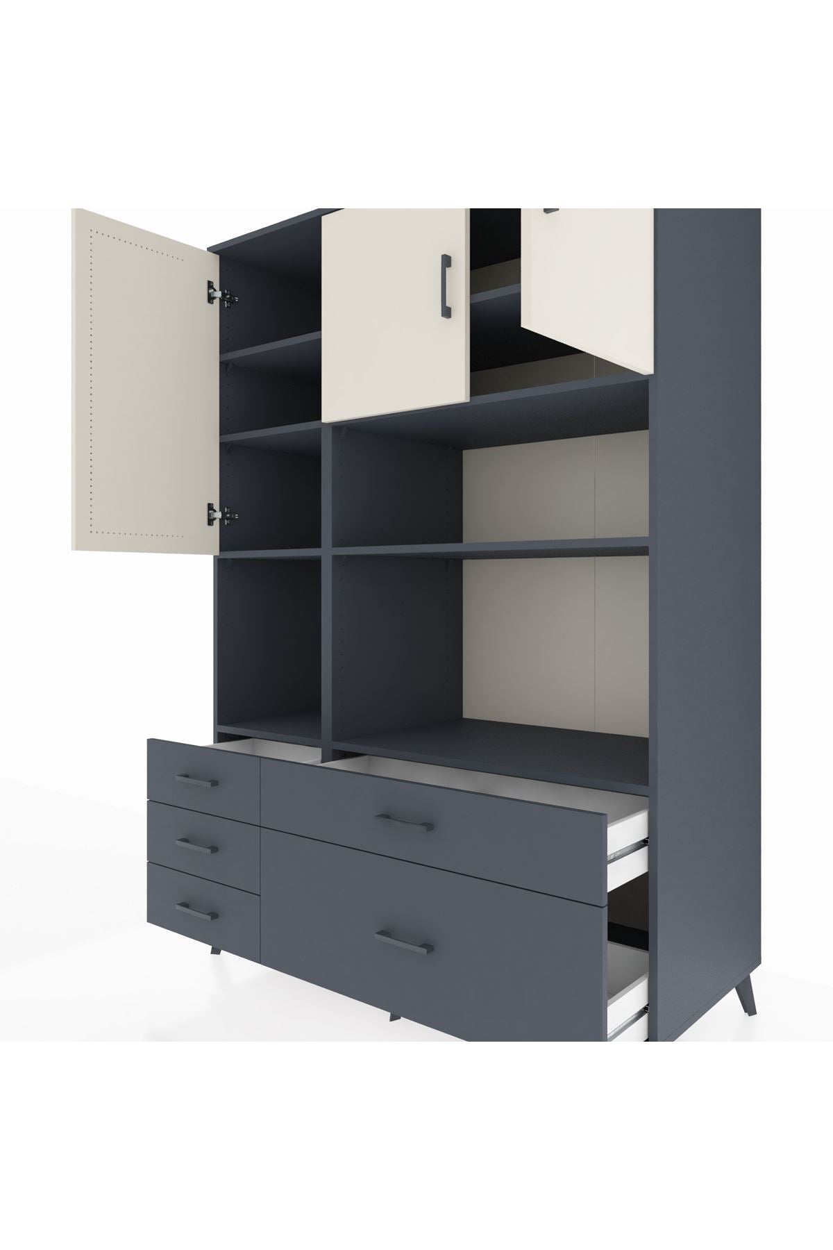 8 adet geniş rafı ile kitap, klasör, dekoratif ürün veya tekstil eşyalarınızı düzenli şekilde yerleştirebilirsiniz 🗂️ 5 çekmecesi, küçük eşyalarınızı ve aksesuarlarınızı toplu tutmanıza yardımcı olur 3 kapaklı yapısı ile eşyalarınız tozdan uzak ve güvenle saklanır 🚪