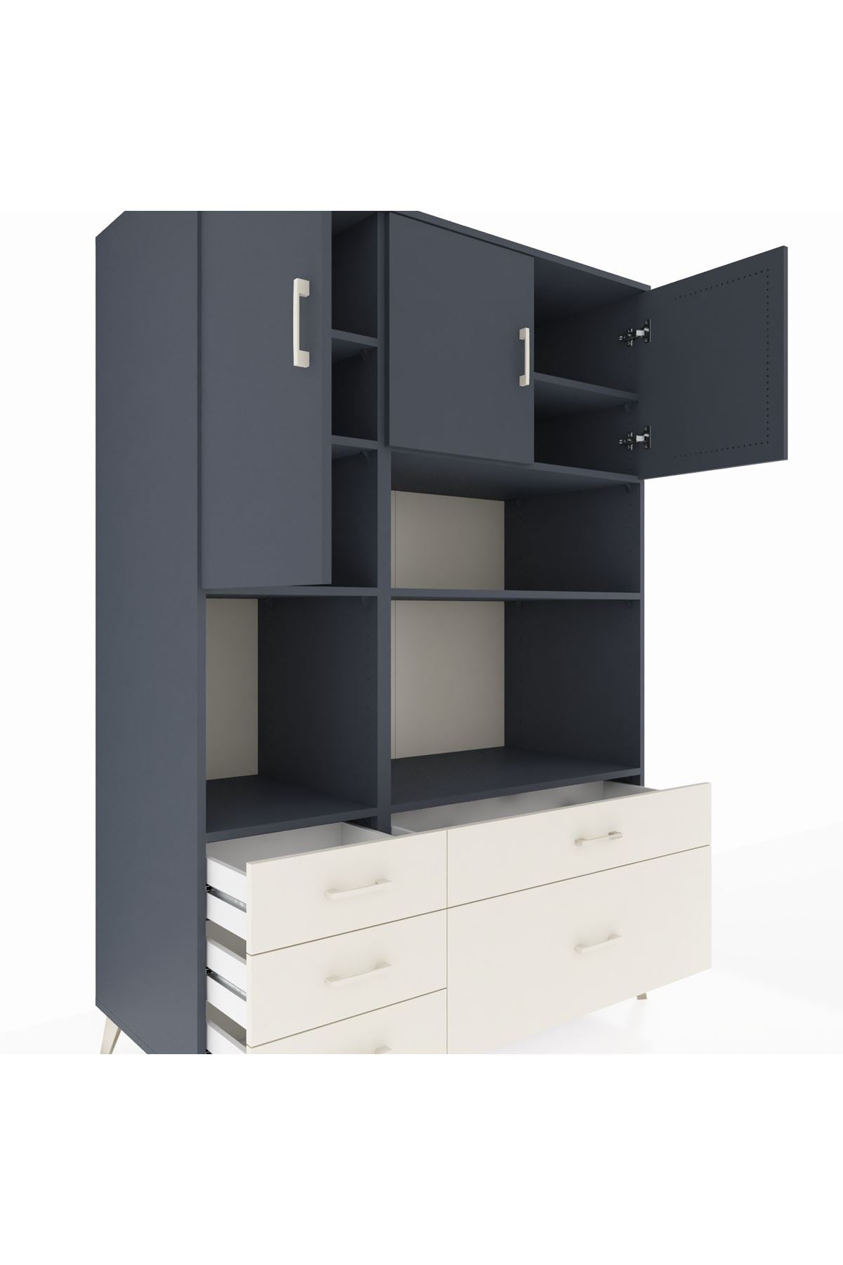 132 cm genişliği, 59 cm derinliği ve 195 cm yüksekliğiyle Kronos Dolap; 8 rafı, 5 çekmecesi ve 3 kapaklı yapısıyla tam anlamıyla çok amaçlı bir depolama çözümüdür. 📦