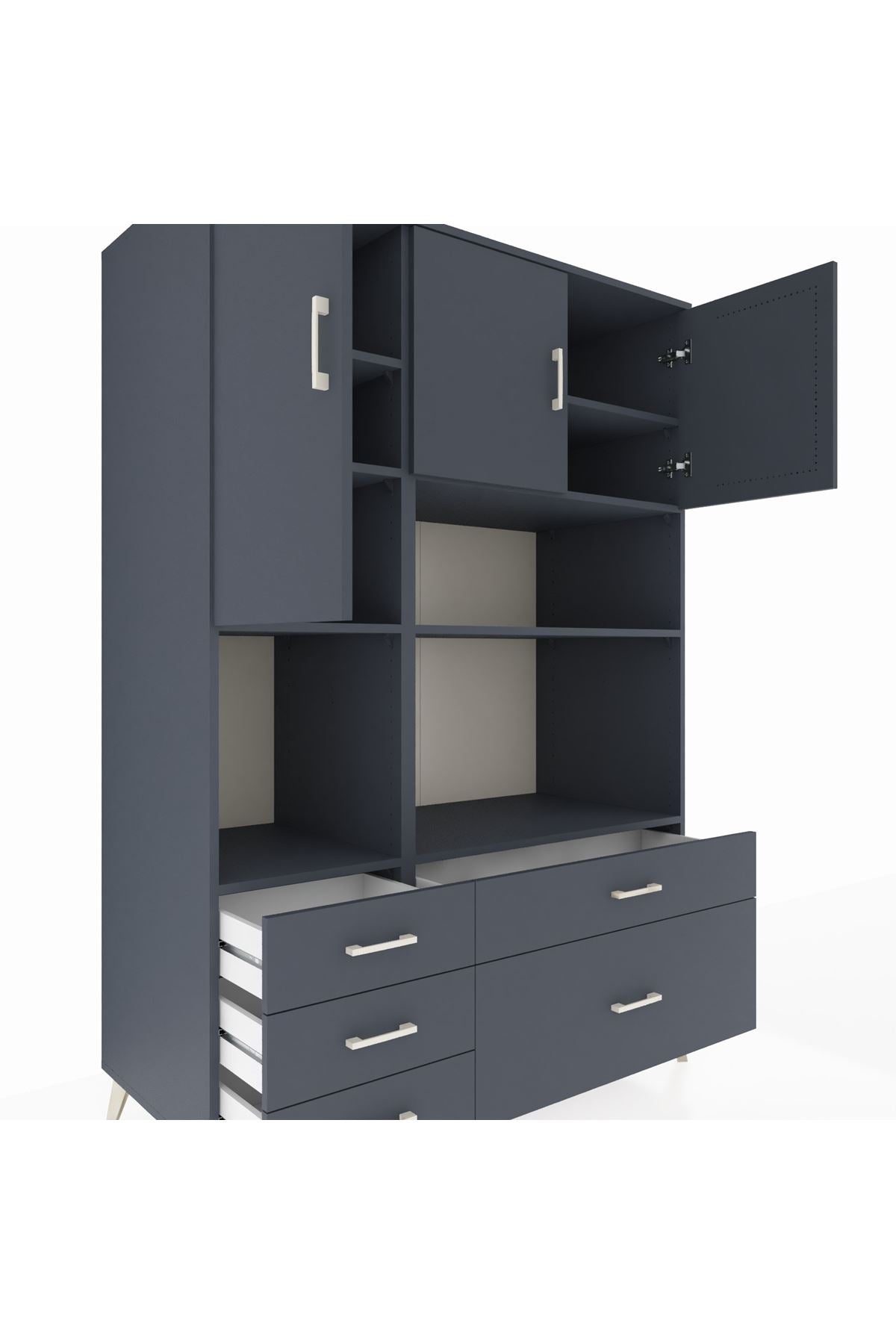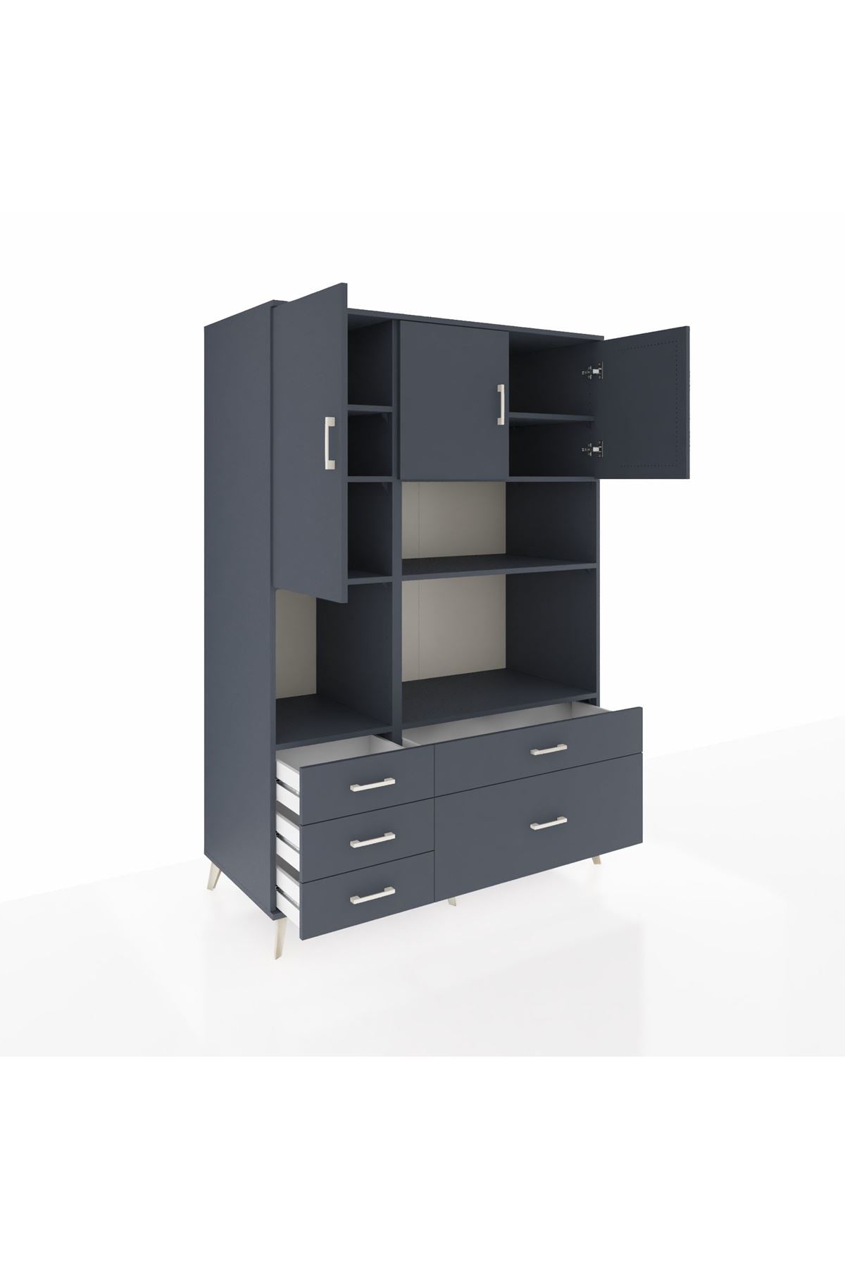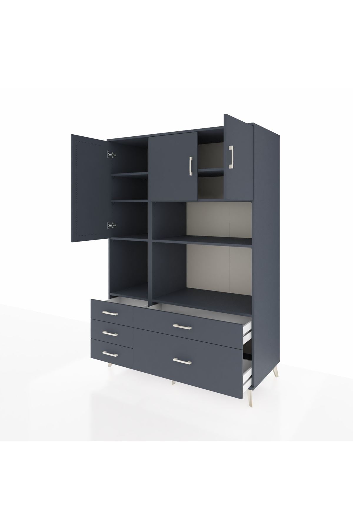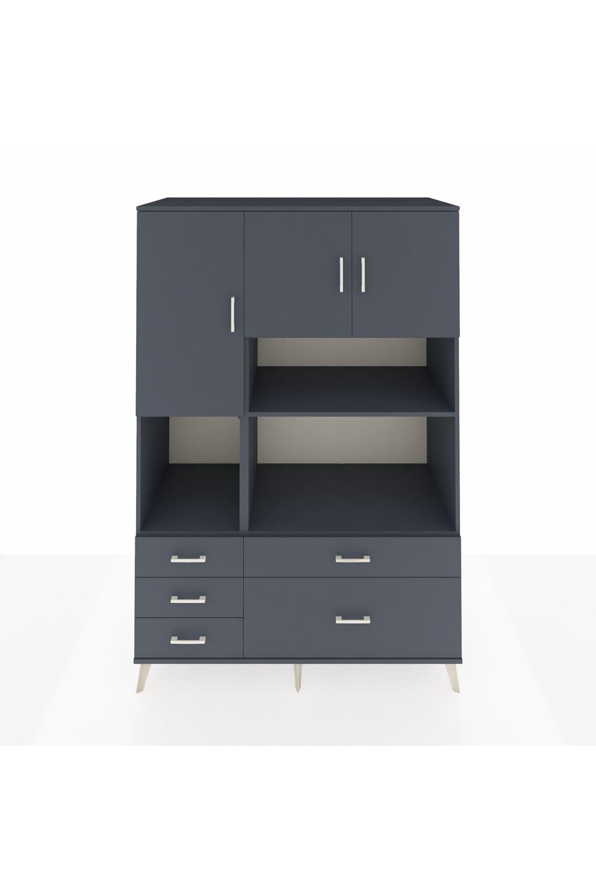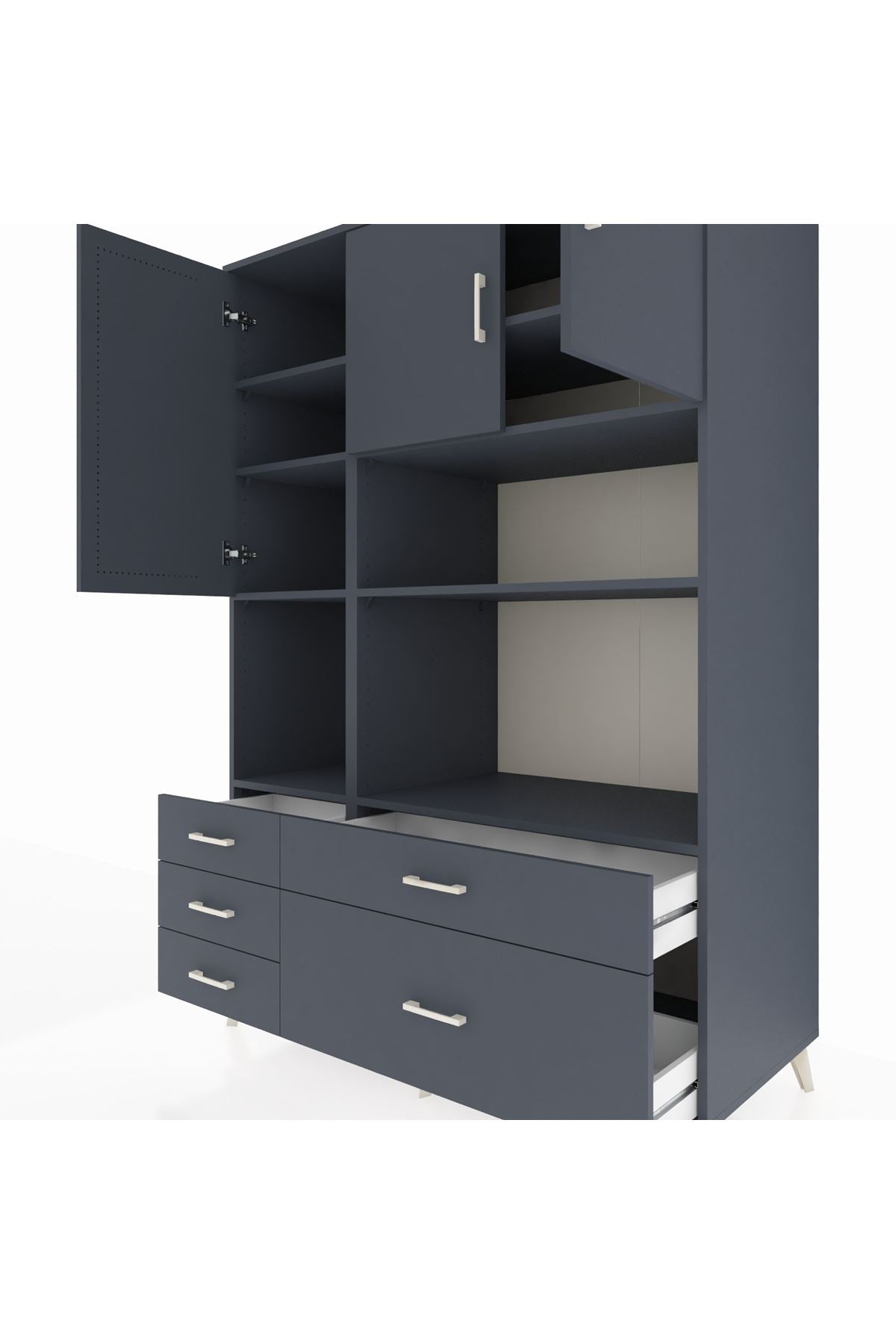 Kronos Dolap 8 Raflı 5 Çekmeceli 3 Kapaklı 132x59x195 Antrasit-Antrasit/Antrasit