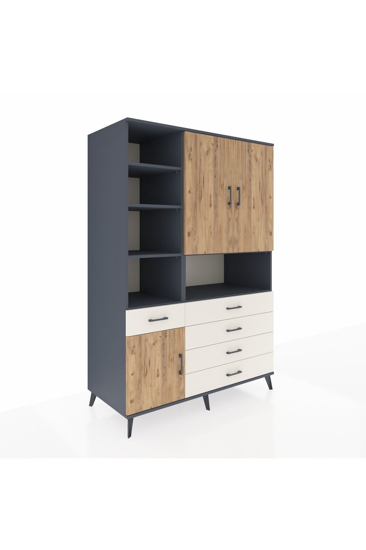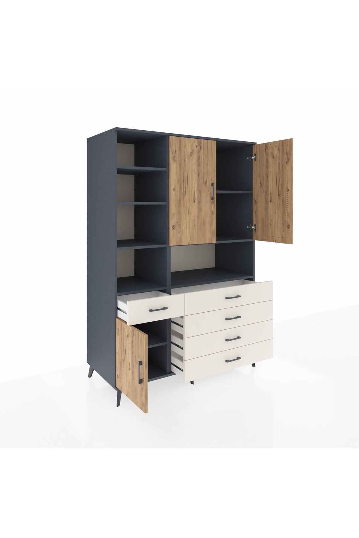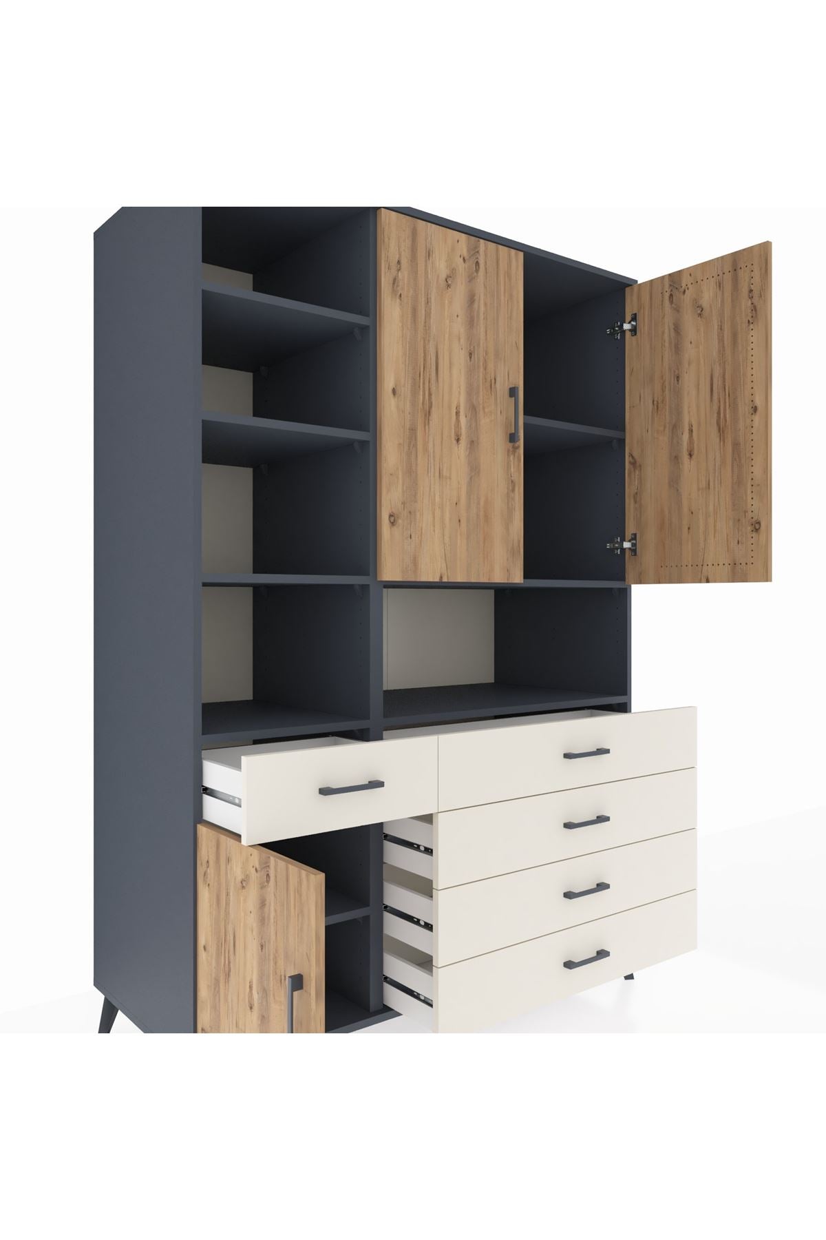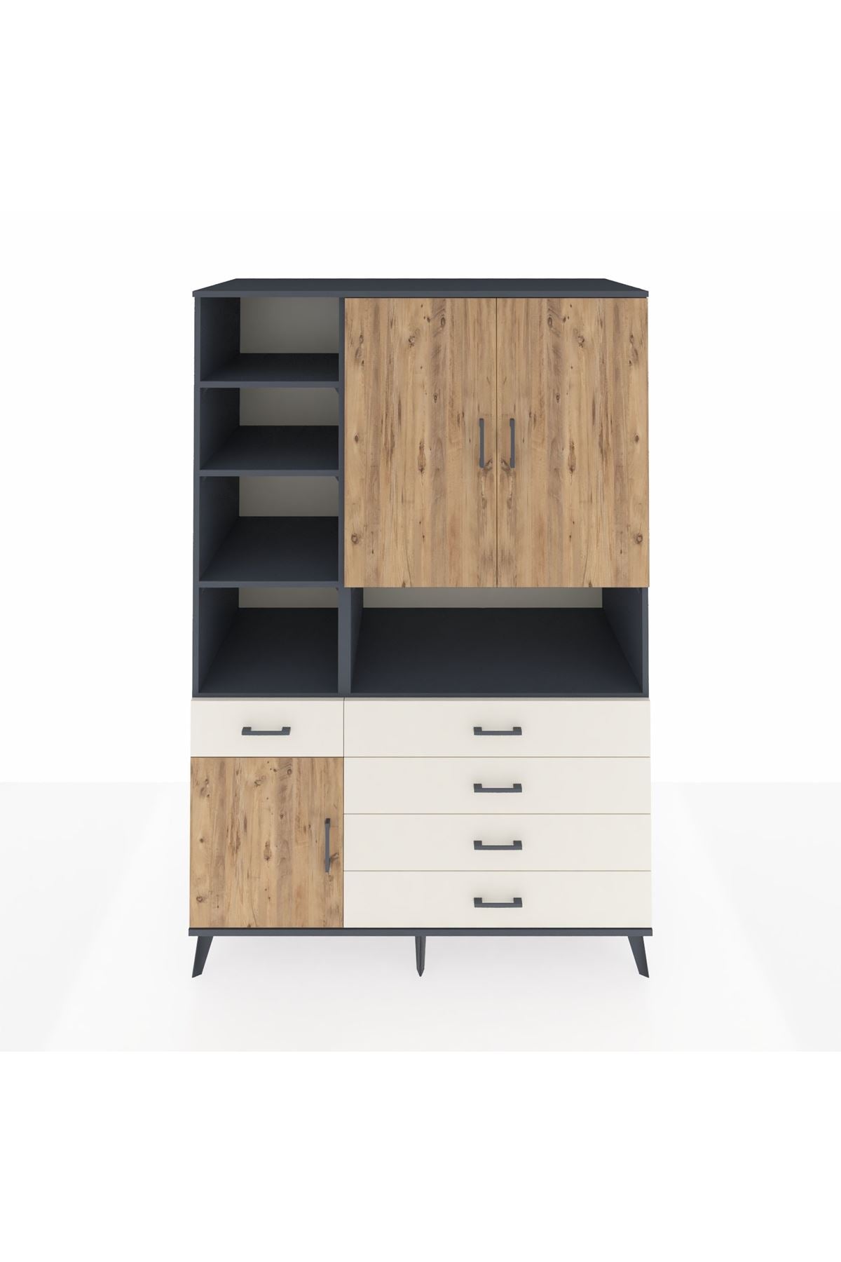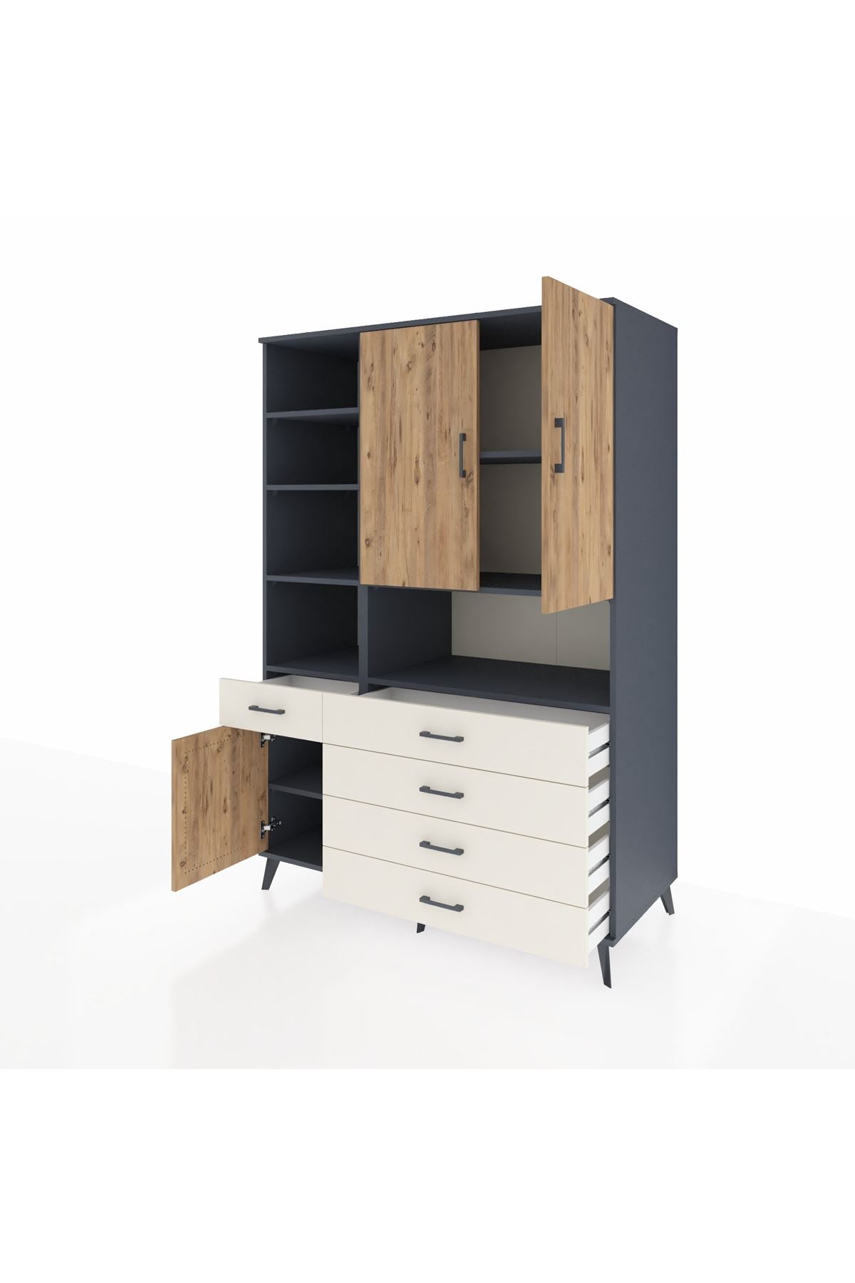 Kronos Dolap 8 Raflı 5 Çekmeceli 3 Kapaklı 132x59x195 Antrasit-Çam/Aytaşı