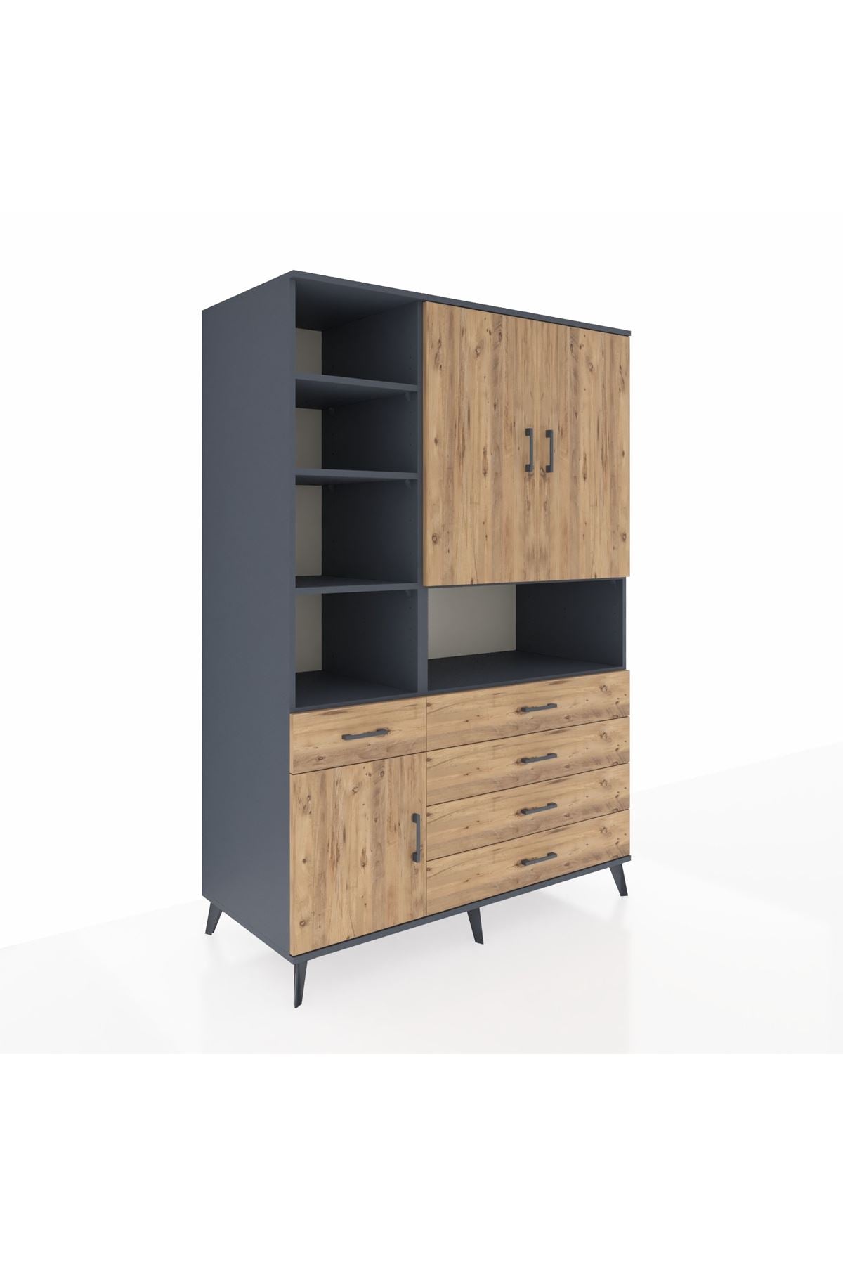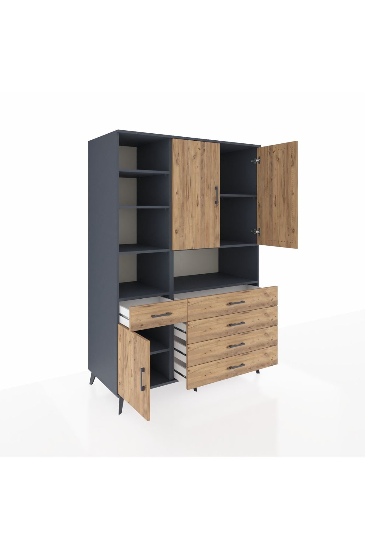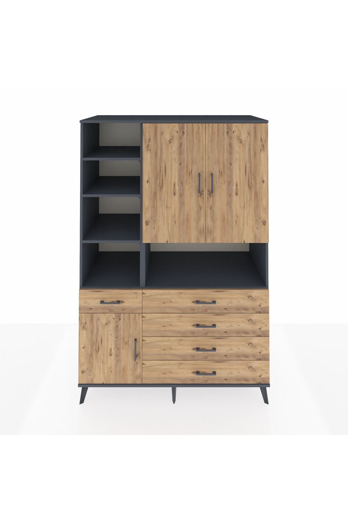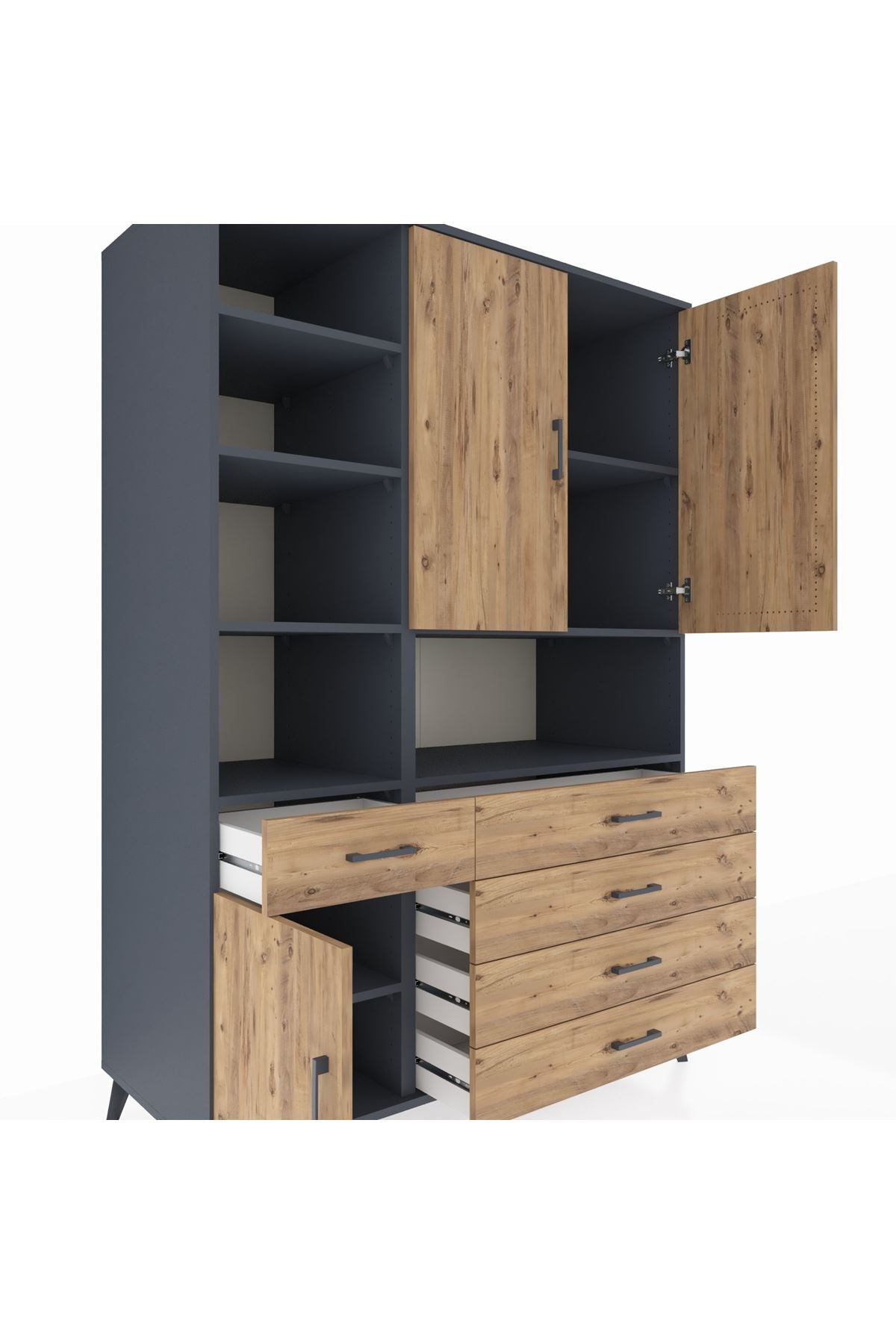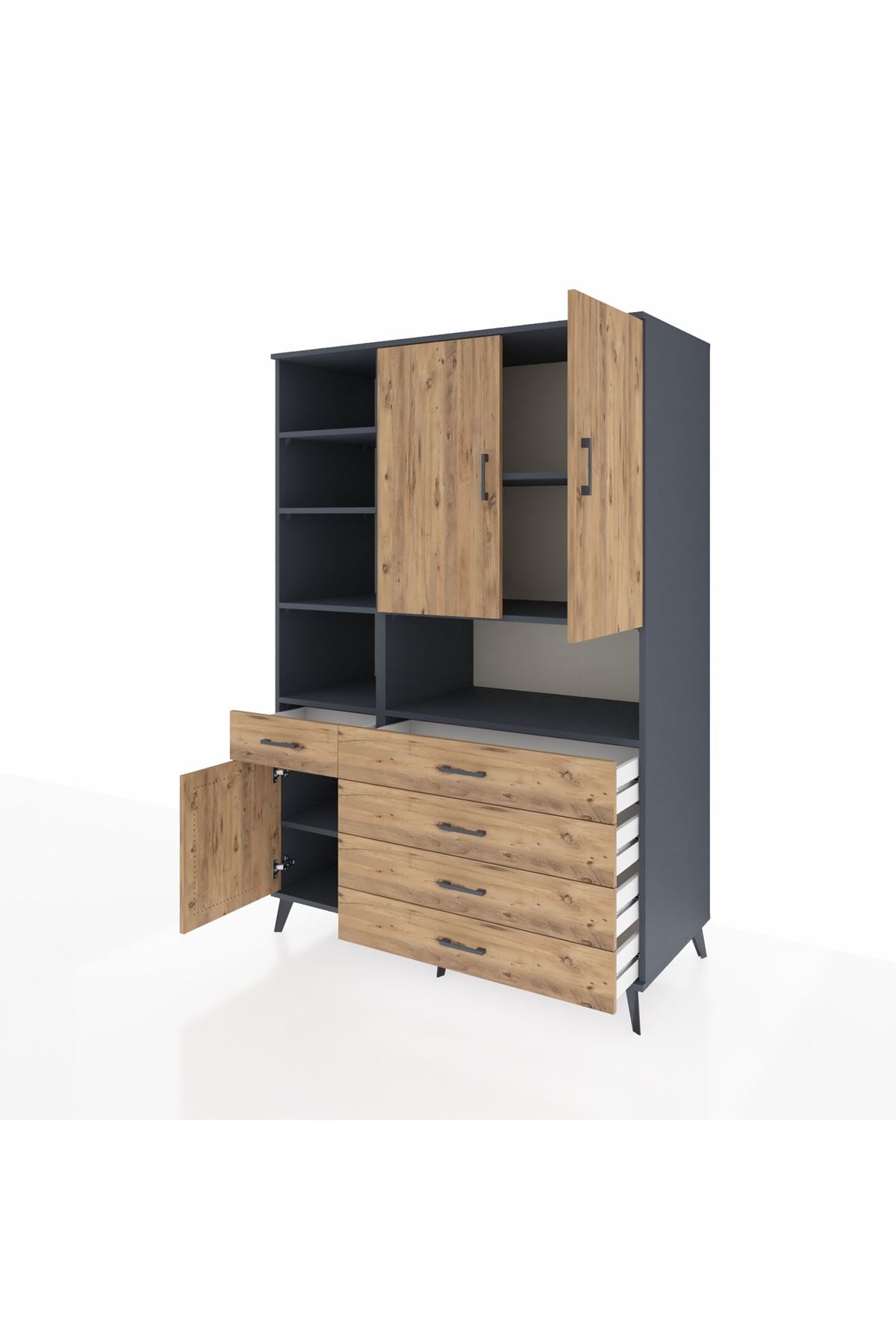Kronos Dolap 8 Raflı 5 Çekmeceli 3 Kapaklı 132x59x195 Antrasit-Çam/Çam