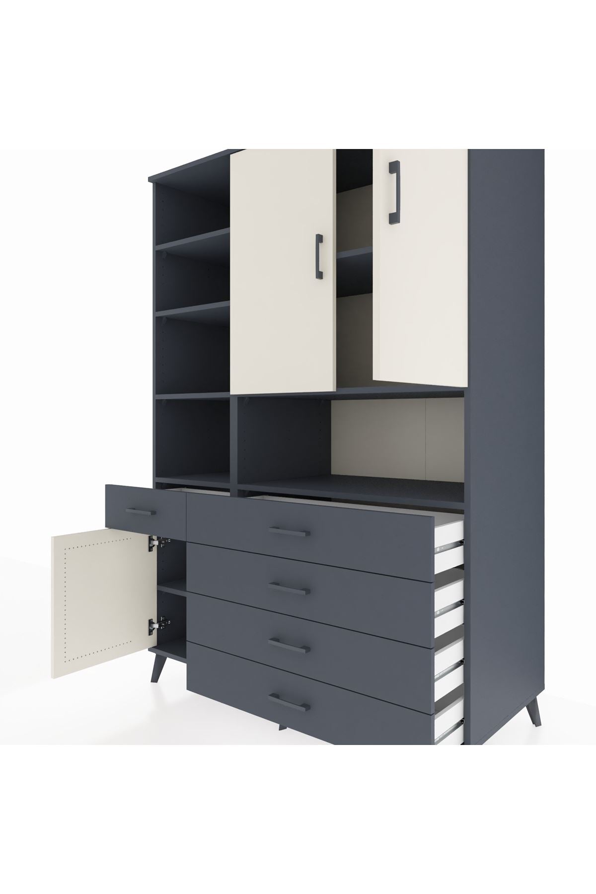 Kronos Dolap 8 Raflı 5 Çekmeceli 3 Kapaklı 132x59x195 Antrasit-Aytaşı/Antrasit