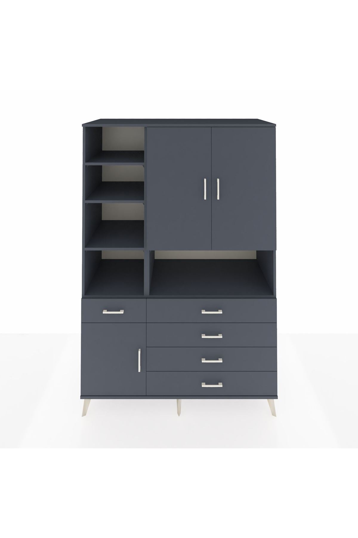 Kronos Dolap 8 Raflı 5 Çekmeceli 3 Kapaklı 132x59x195 Antrasit-Antrasit/Antrasit