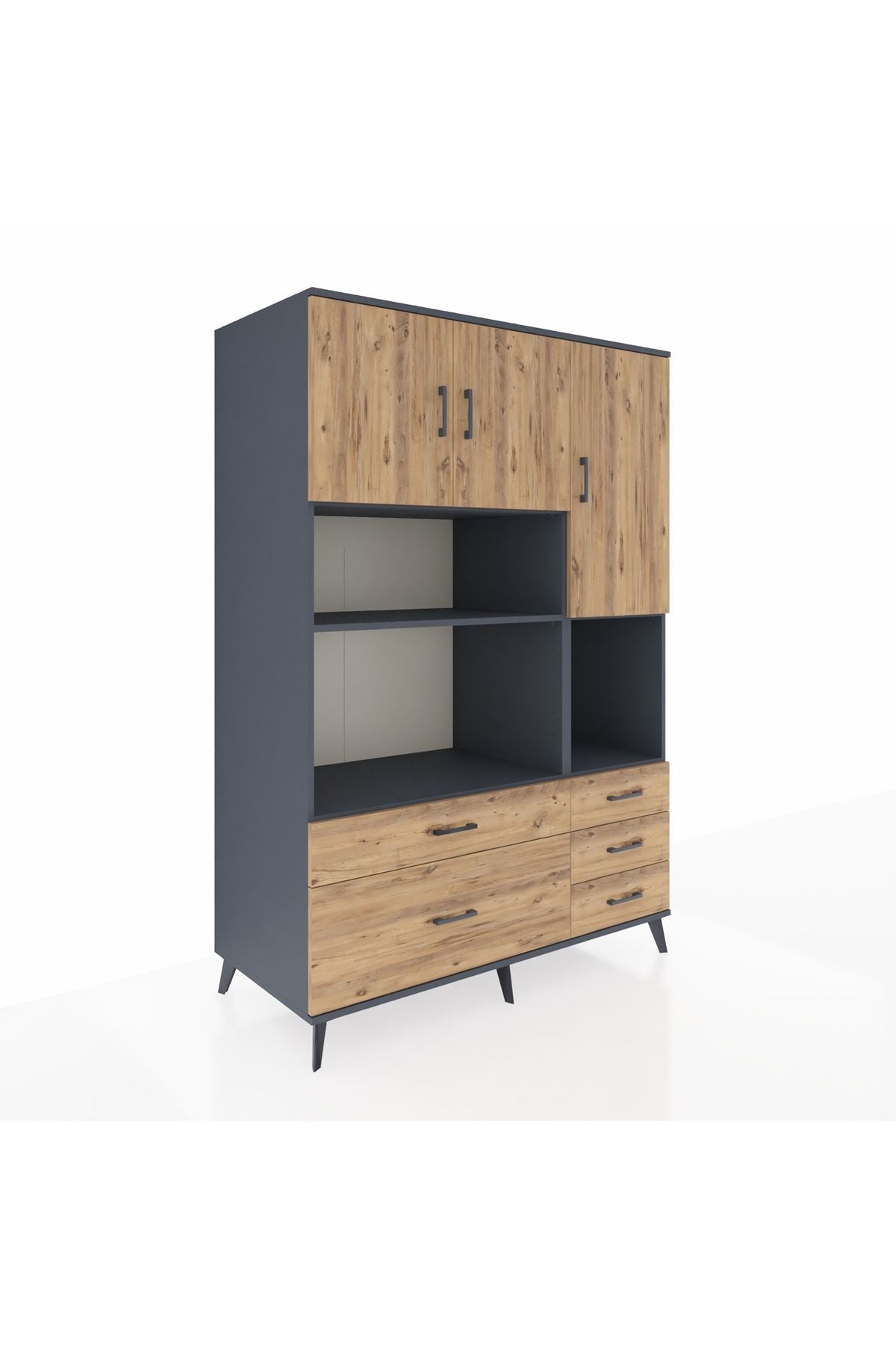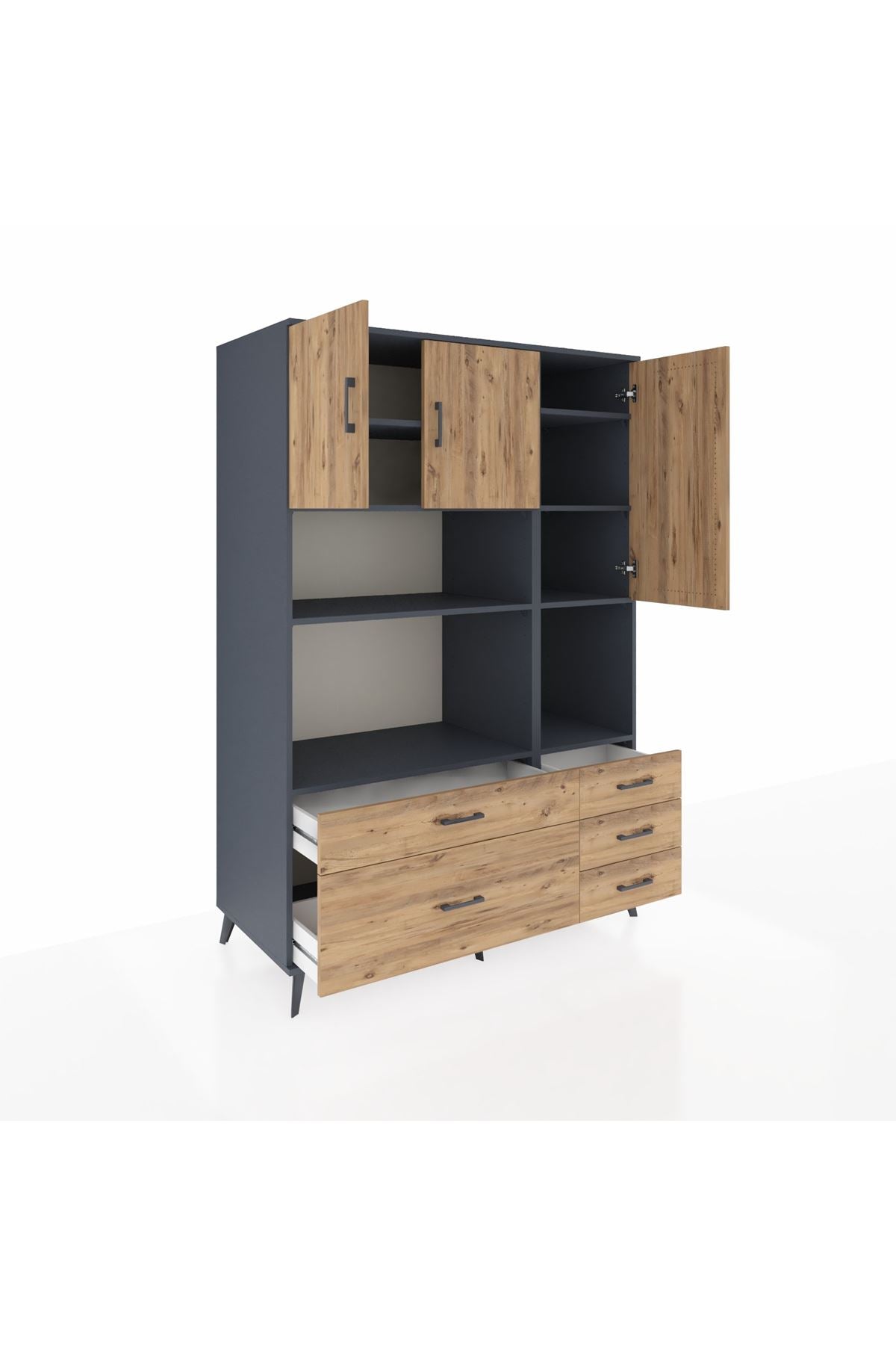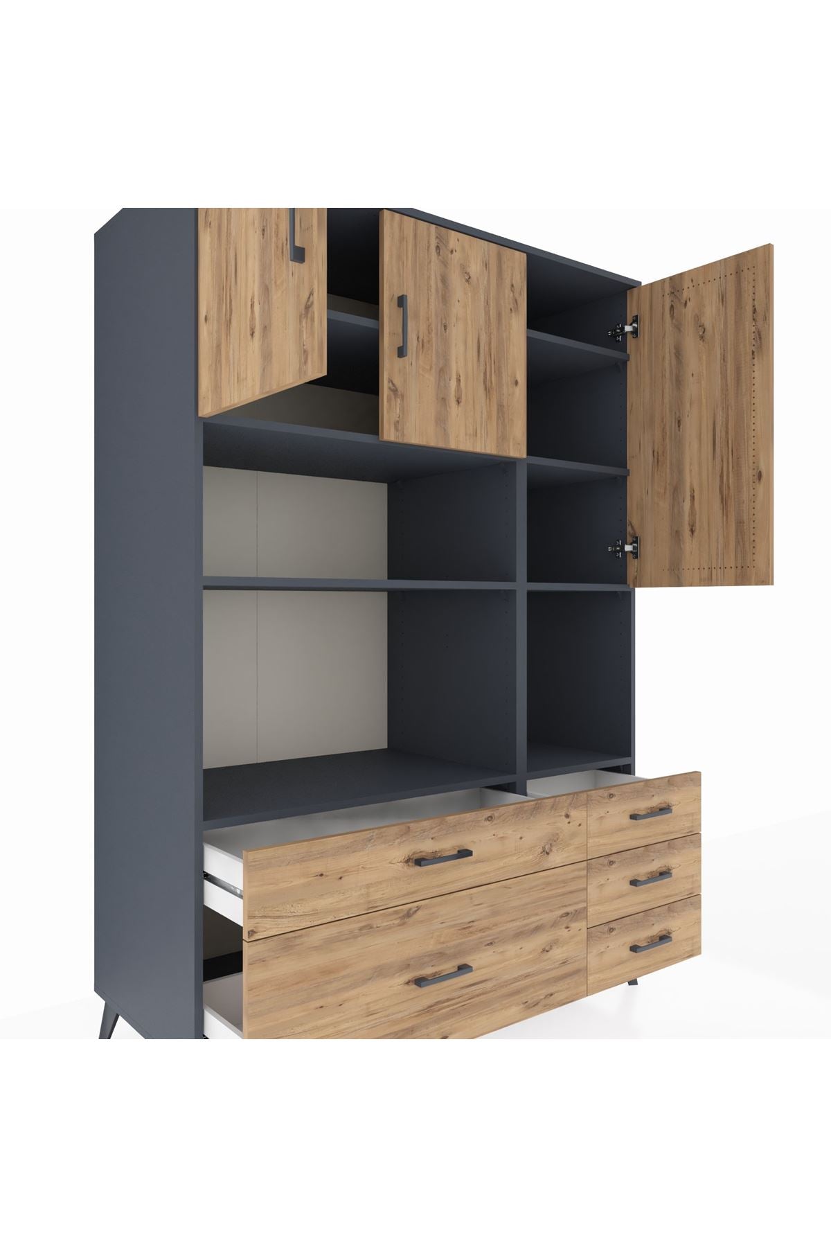 Kronos Dolap 8 Raflı 5 Çekmeceli 3 Kapaklı 132x59x195 Antrasit-Çam/Çam