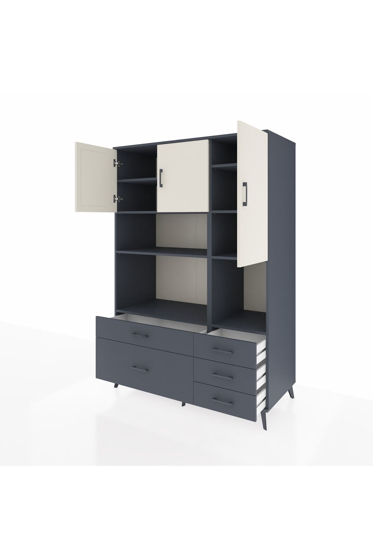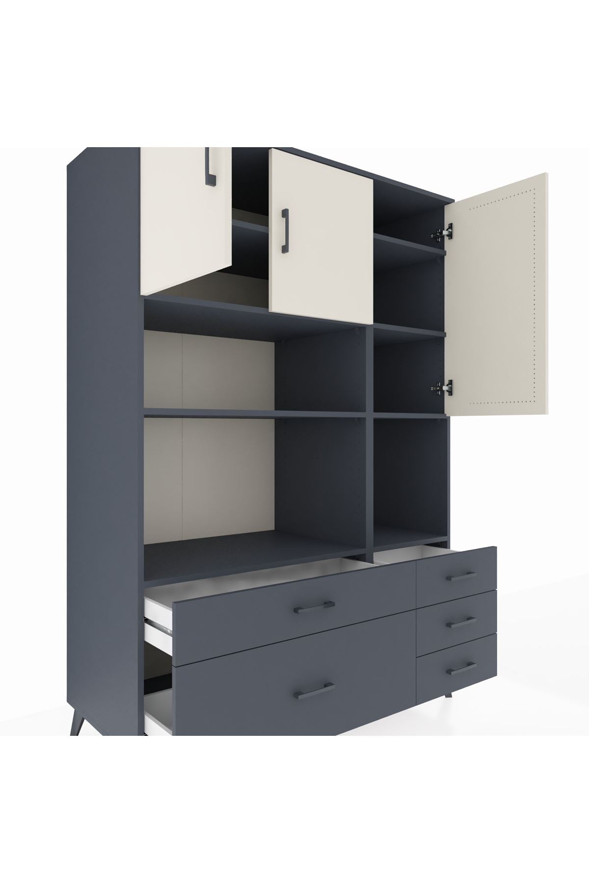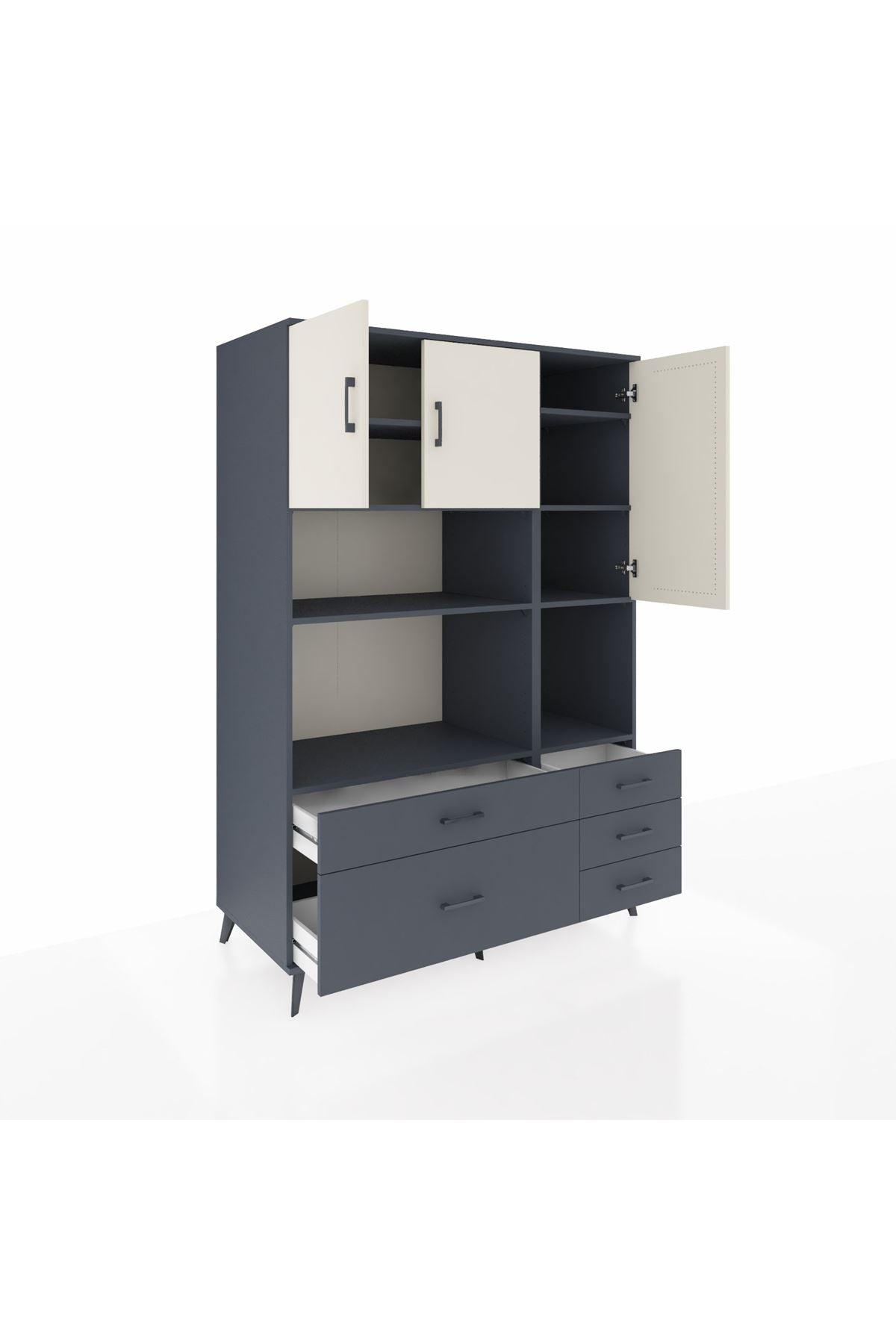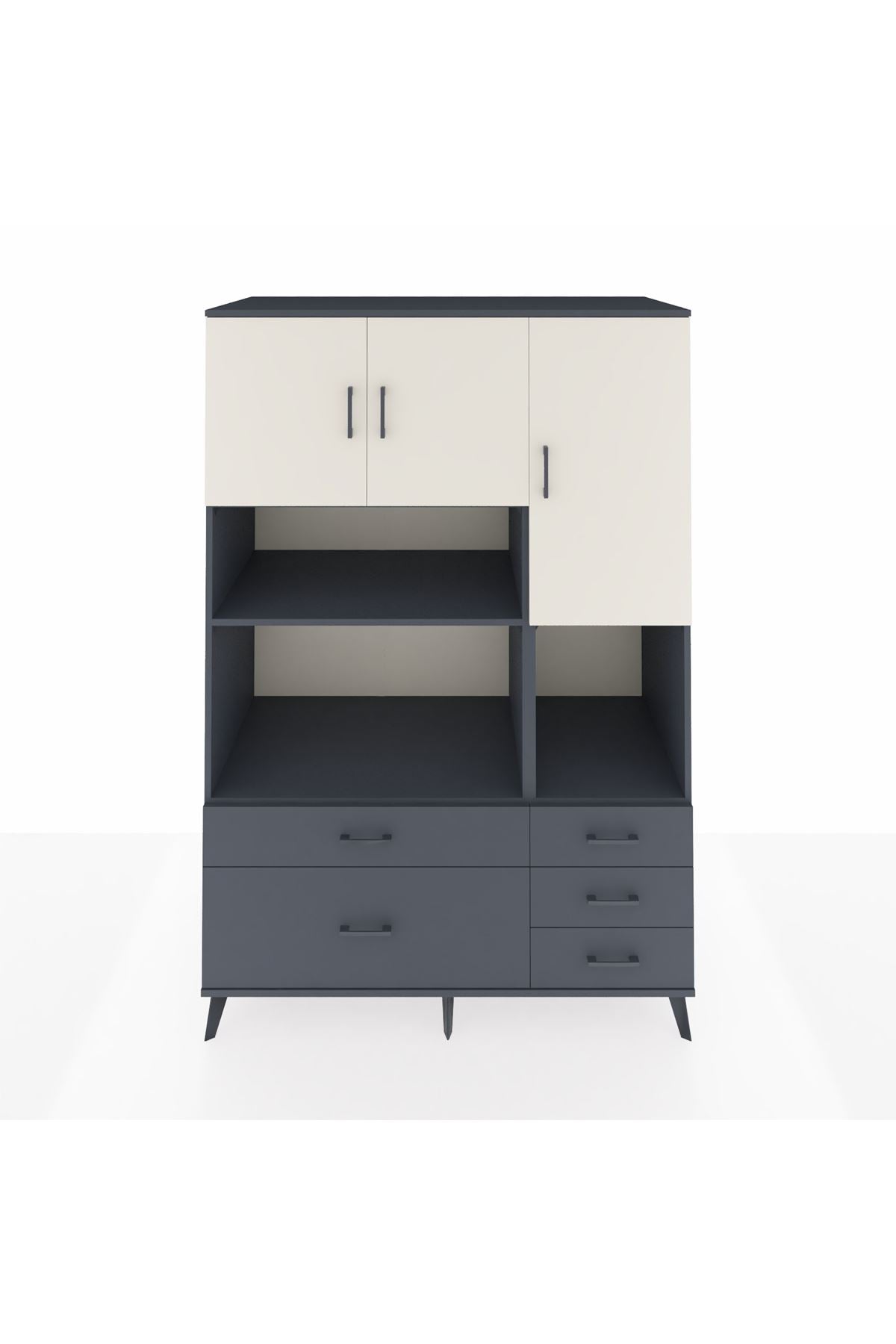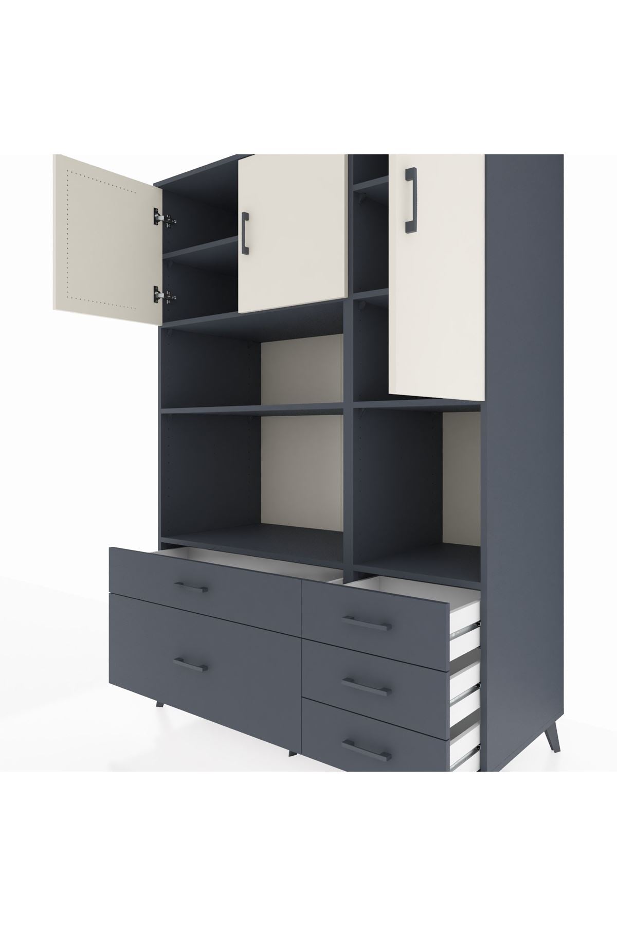 Kronos Dolap 8 Raflı 5 Çekmeceli 3 Kapaklı 132x59x195 Antrasit-Aytaşı/Antrasit