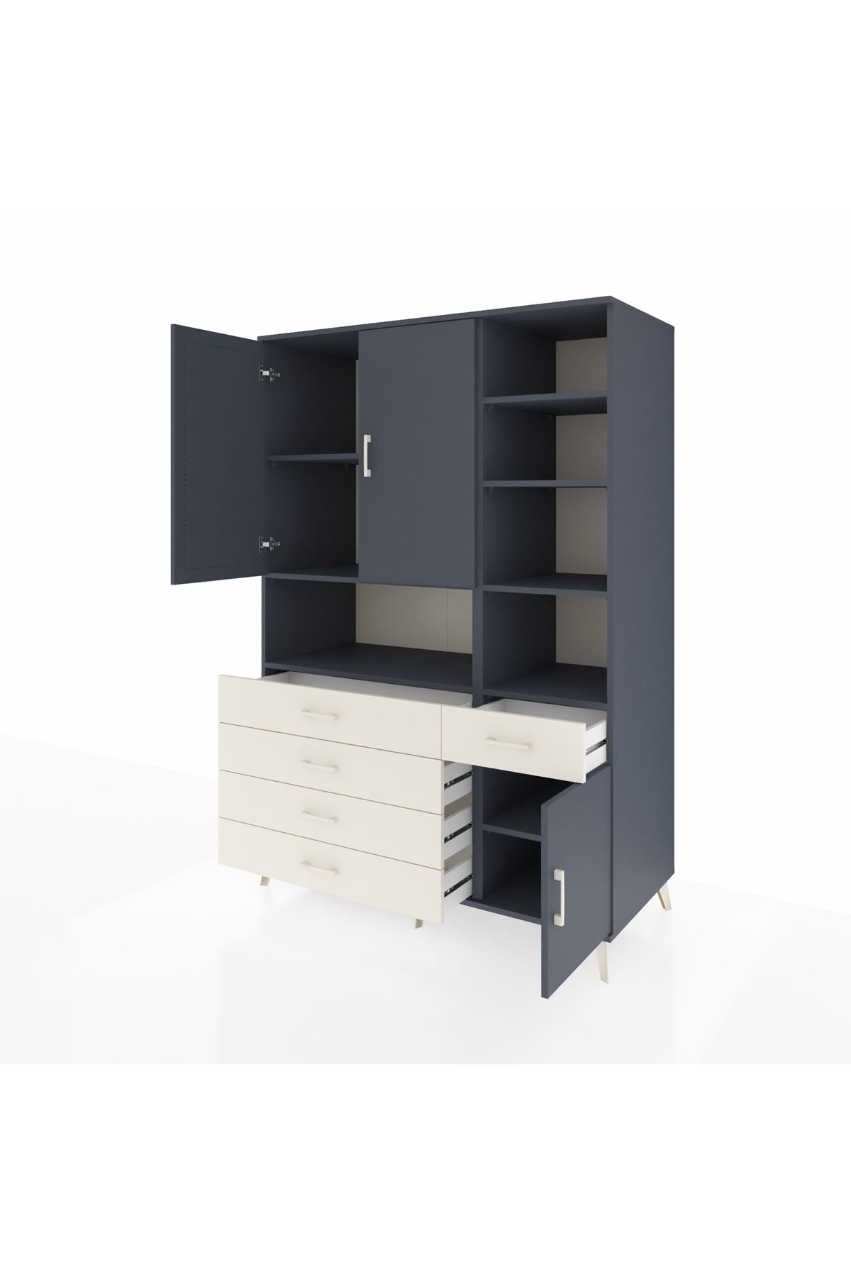 🗄️ Kronos Dolap 8 Raflı 5 Çekmeceli 3 Kapaklı 132x59x195 Antrasit-Antrasit/Aytaşı ile Yaşam Alanlarınıza Modern Düzen!