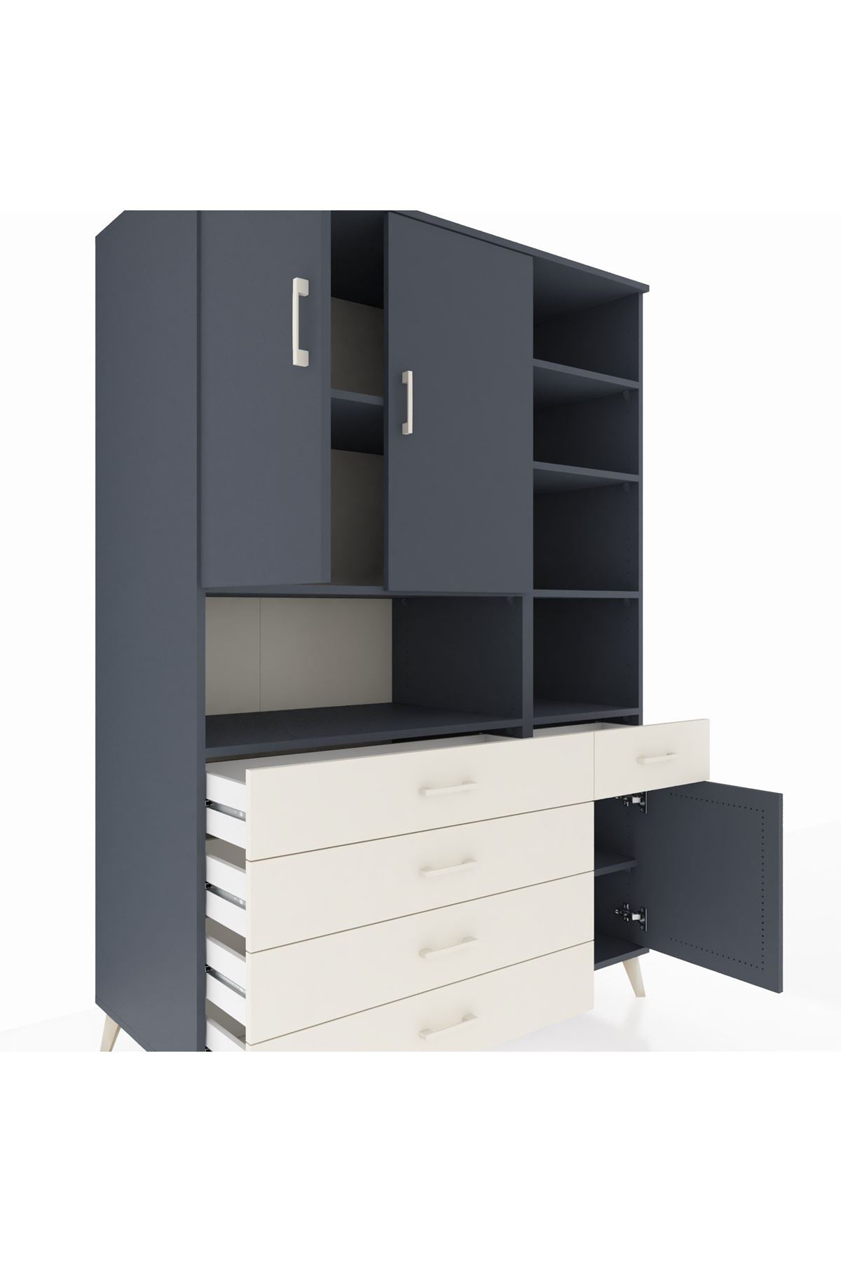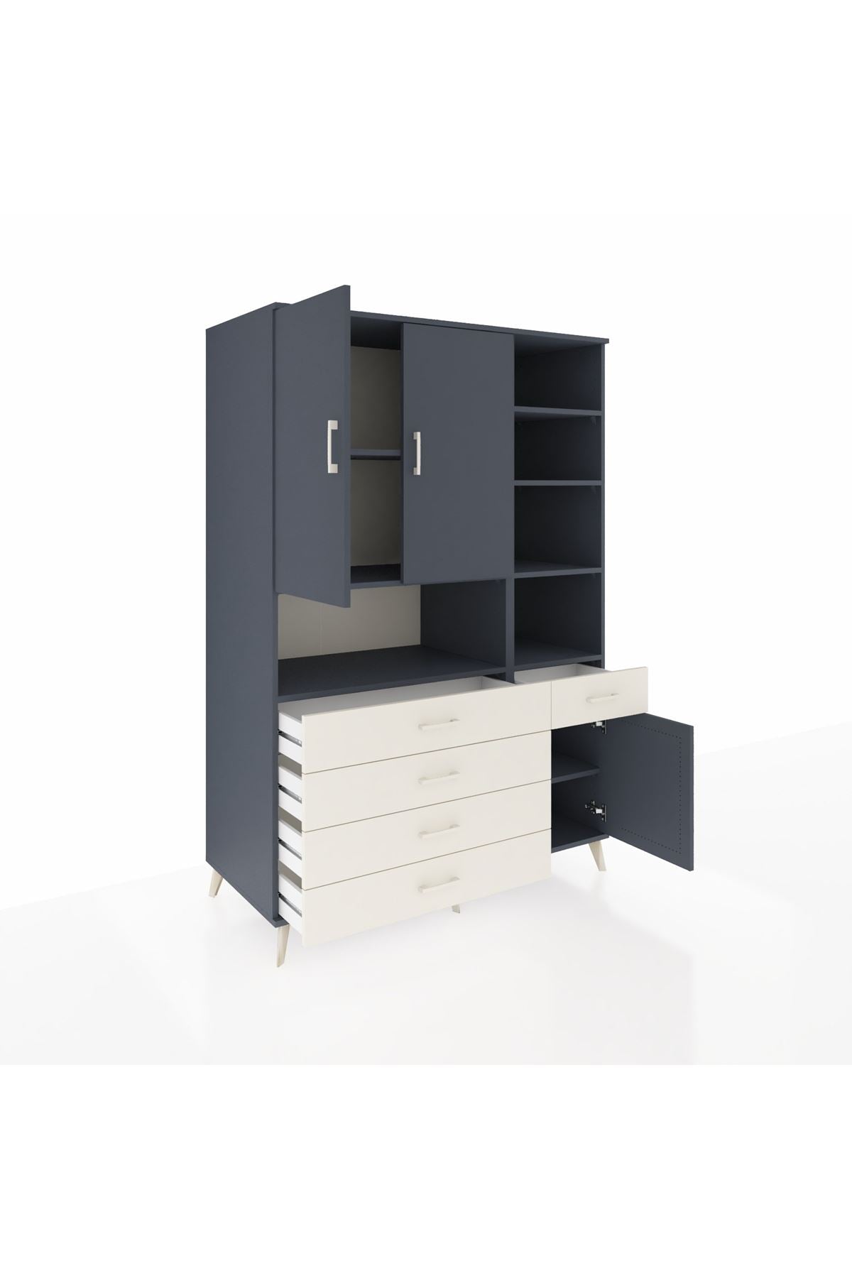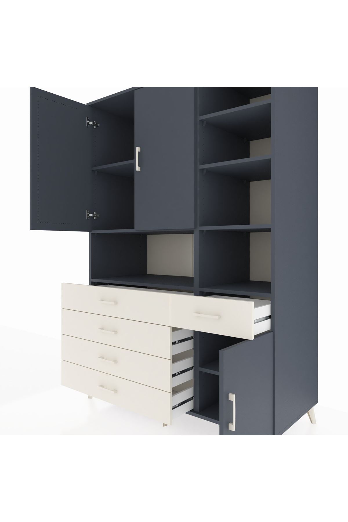 Kronos Dolap 8 Raflı 5 Çekmeceli 3 Kapaklı 132x59x195 Antrasit-Antrasit/Aytaşı