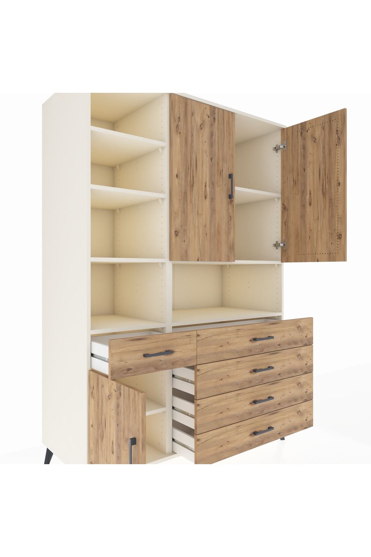 Kronos Dolap 8 Raflı 5 Çekmeceli 3 Kapaklı 132x59x195 Aytaşı-Çam/Çam