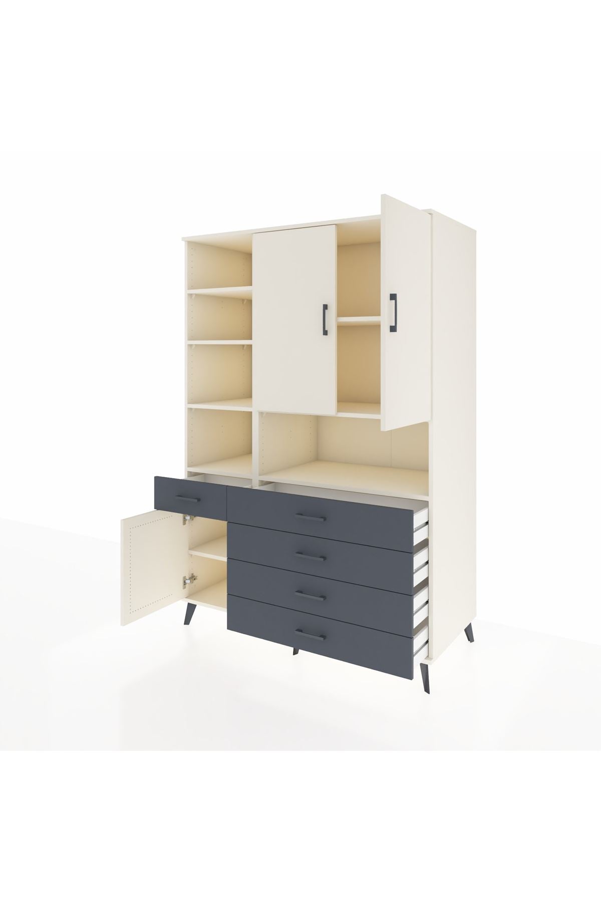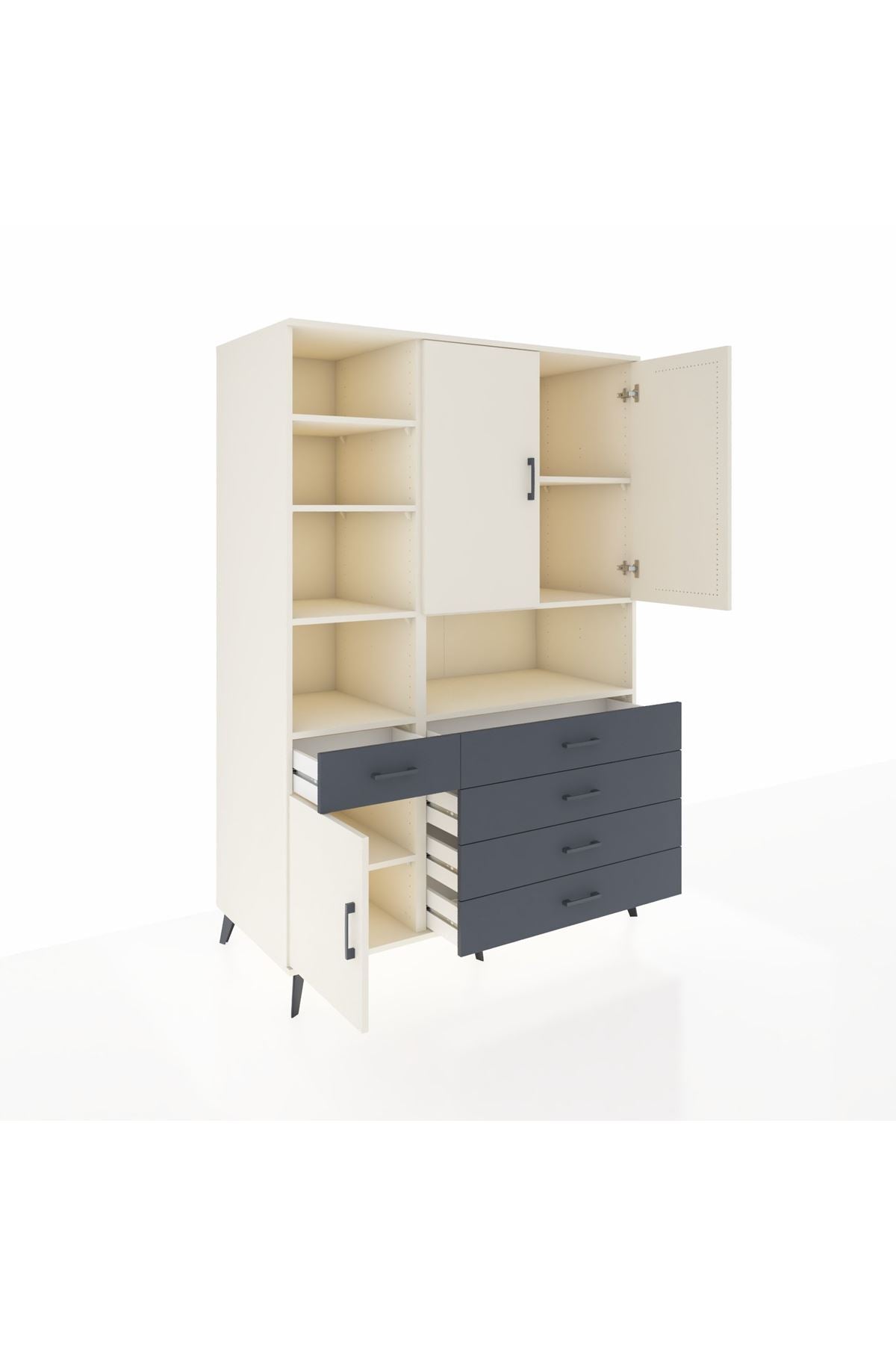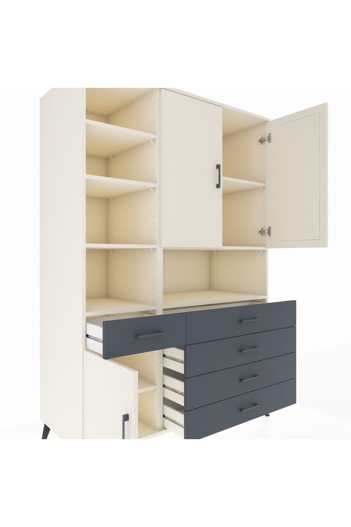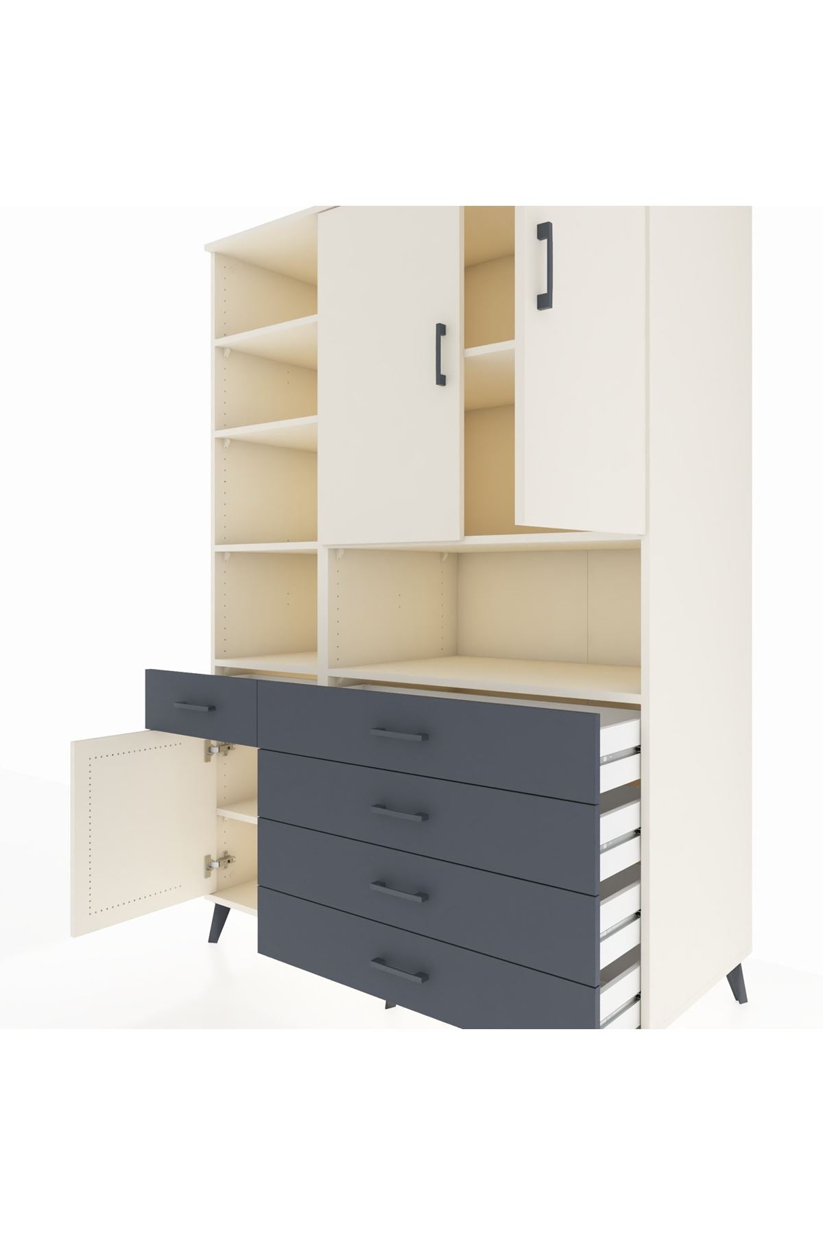 - 🗄️ 8 raf, 5 çekmece, 3 kapak