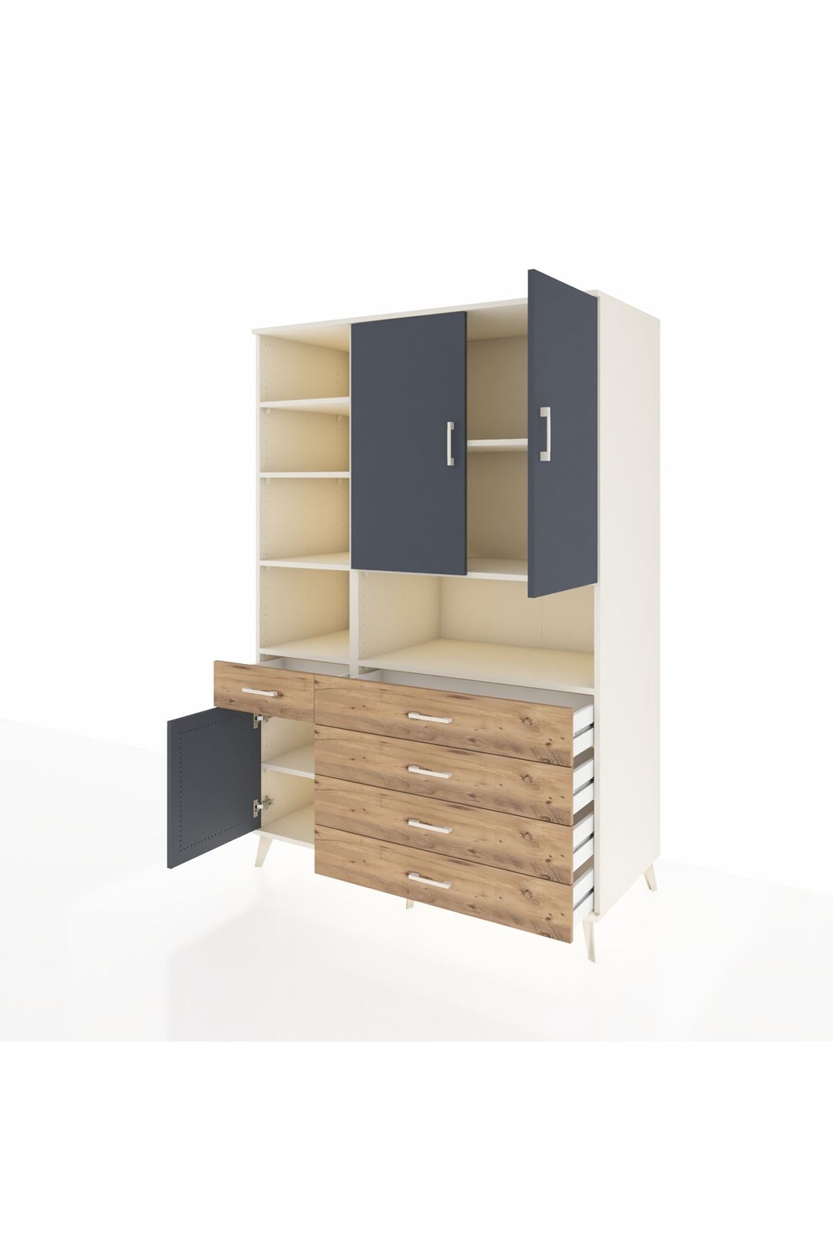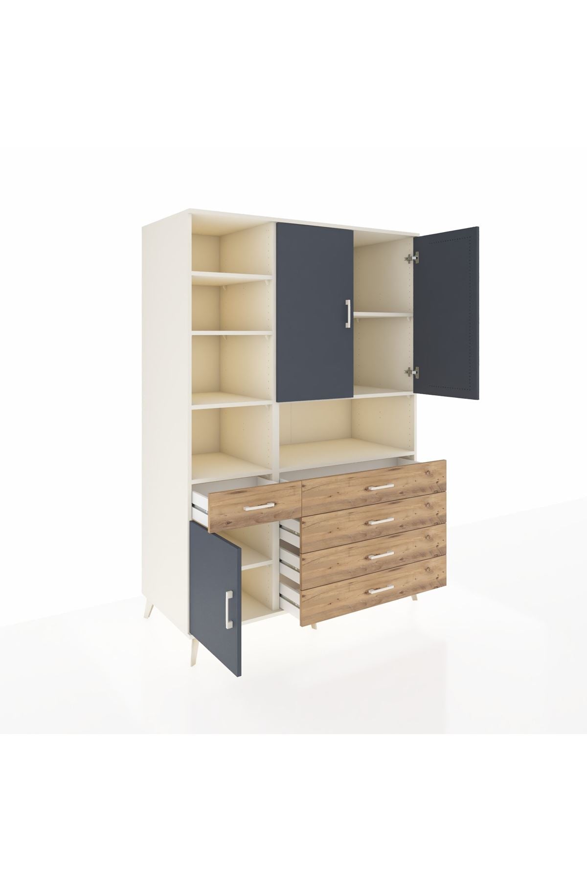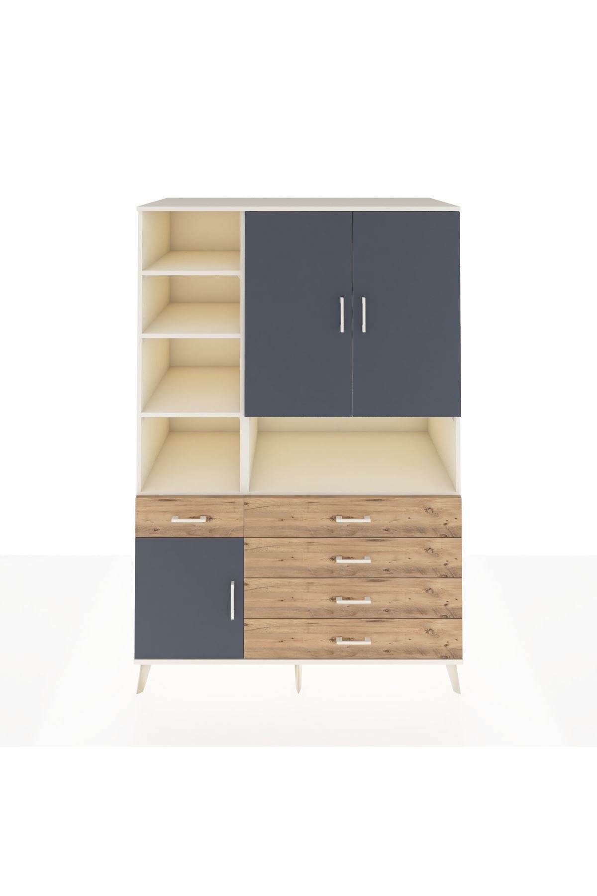 Kronos Dolap 8 Raflı 5 Çekmeceli 3 Kapaklı 132x59x195 Aytaşı-Antrasit/Çam