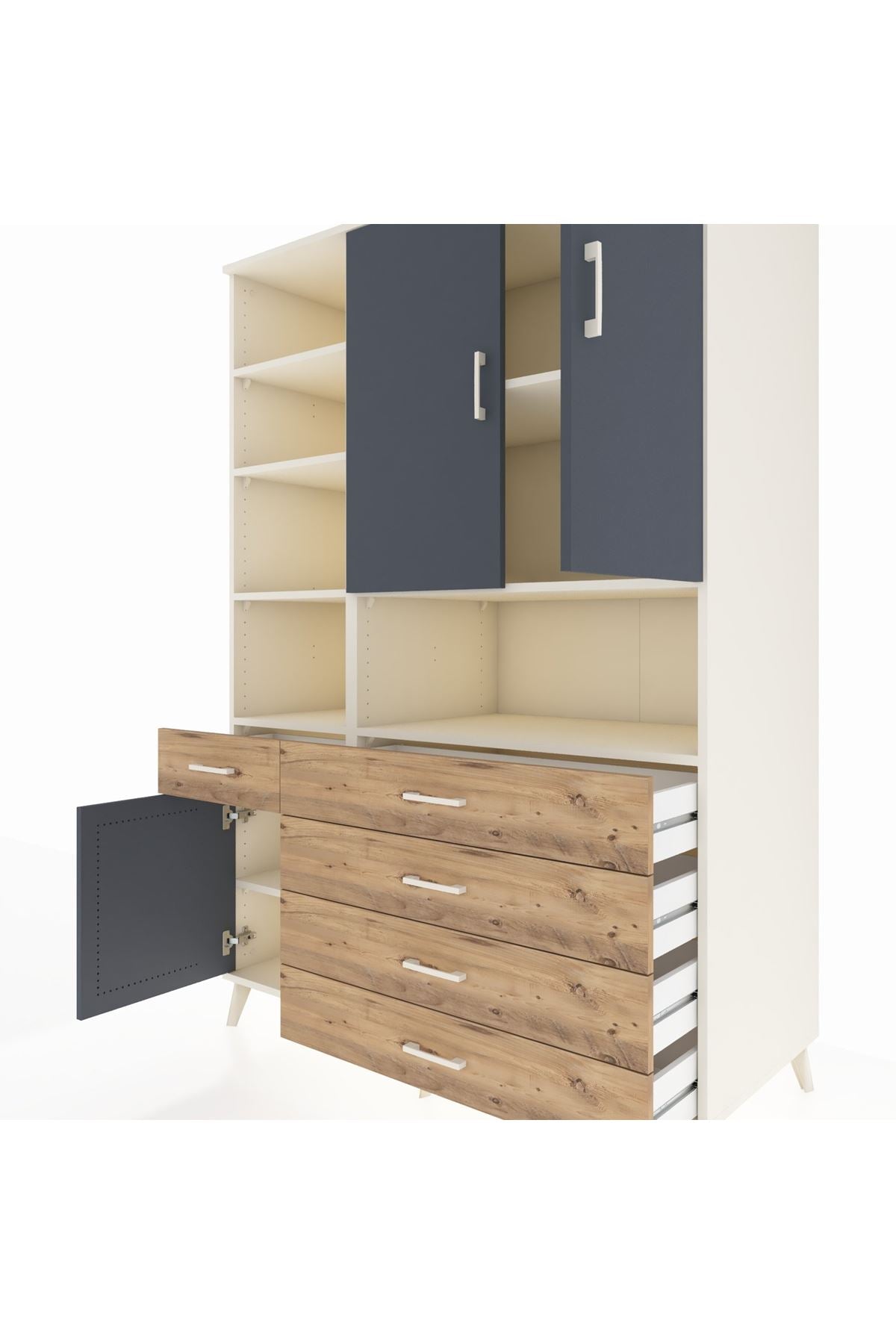 🕰️ Kronos Dolap 8 Raflı 5 Çekmeceli 3 Kapaklı 132x59x195 Aytaşı-Antrasit/Çam