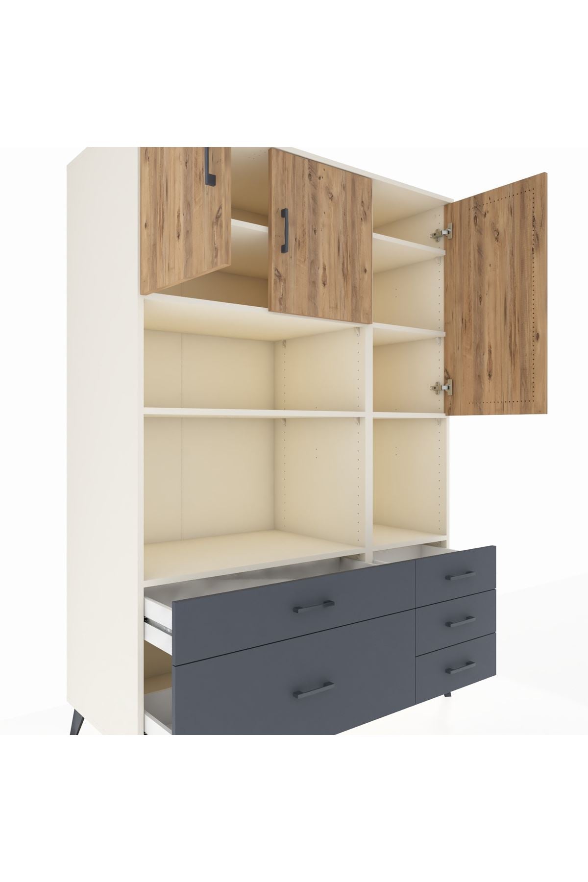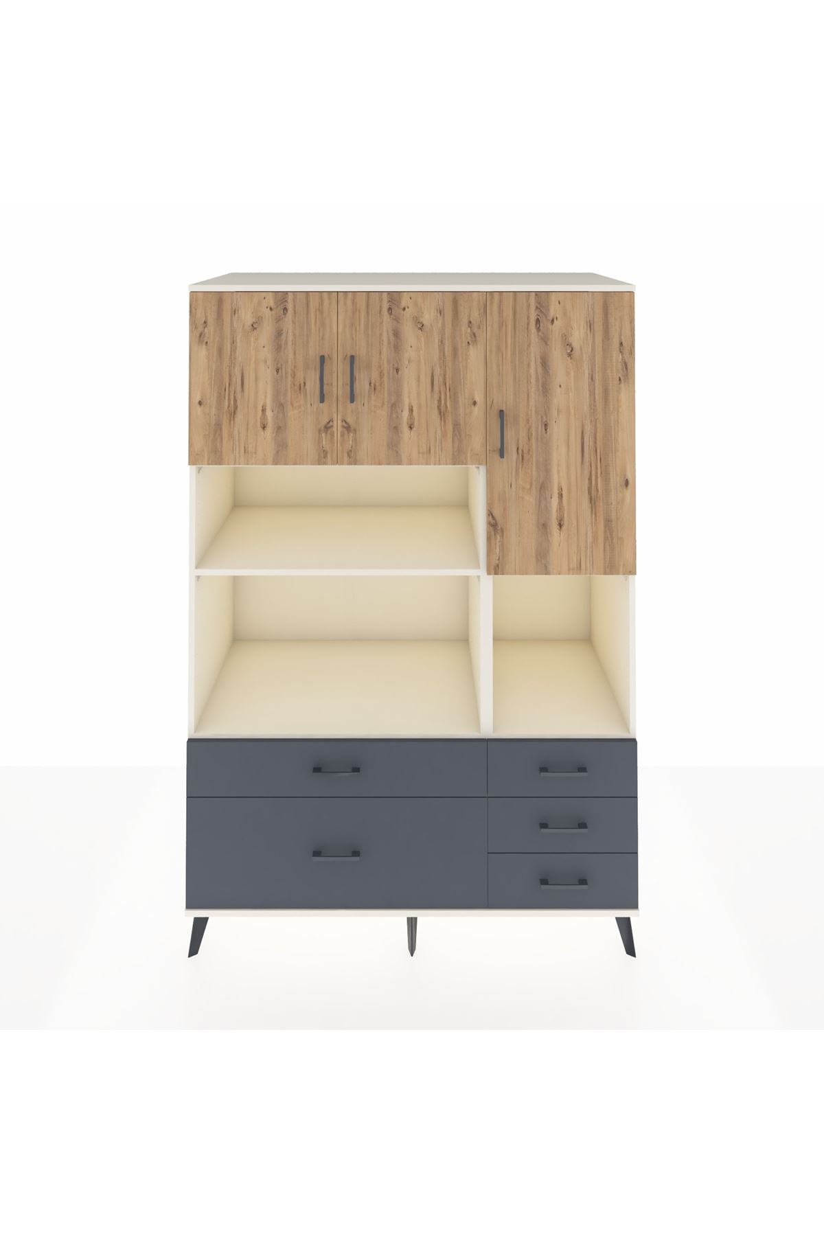 Kronos Dolap 8 Raflı 5 Çekmeceli 3 Kapaklı 132x59x195 Aytaşı-Çam/Antrasit
