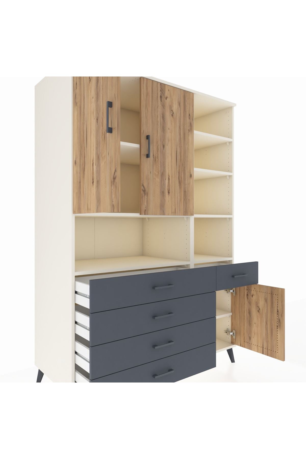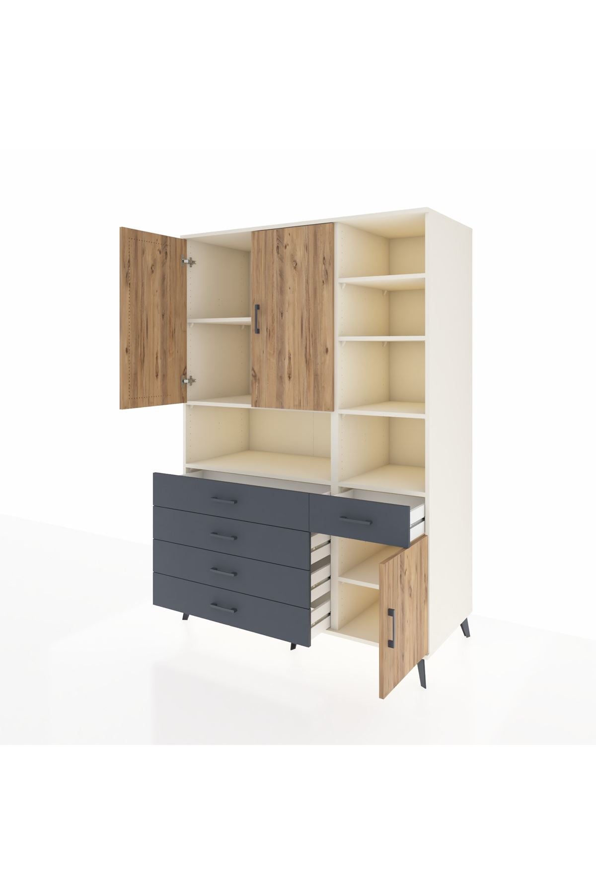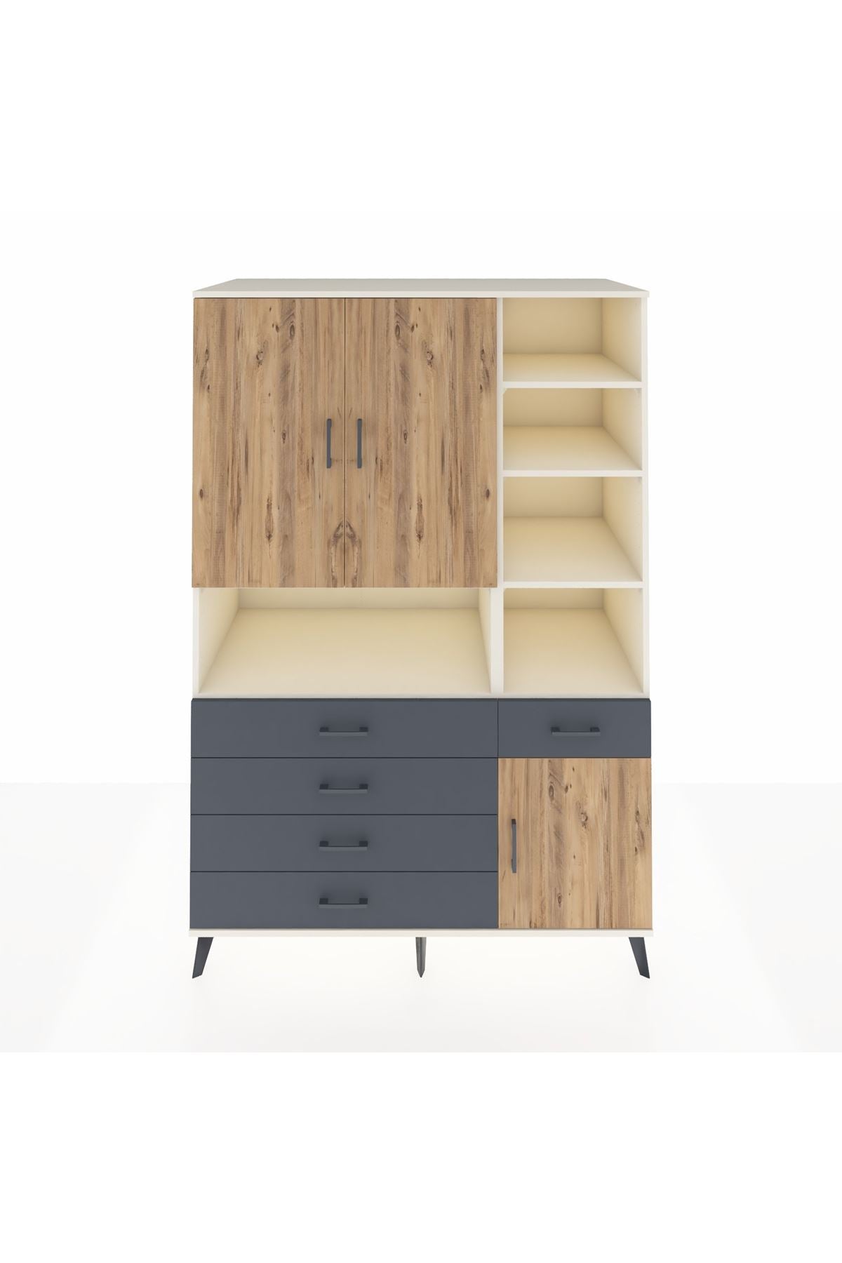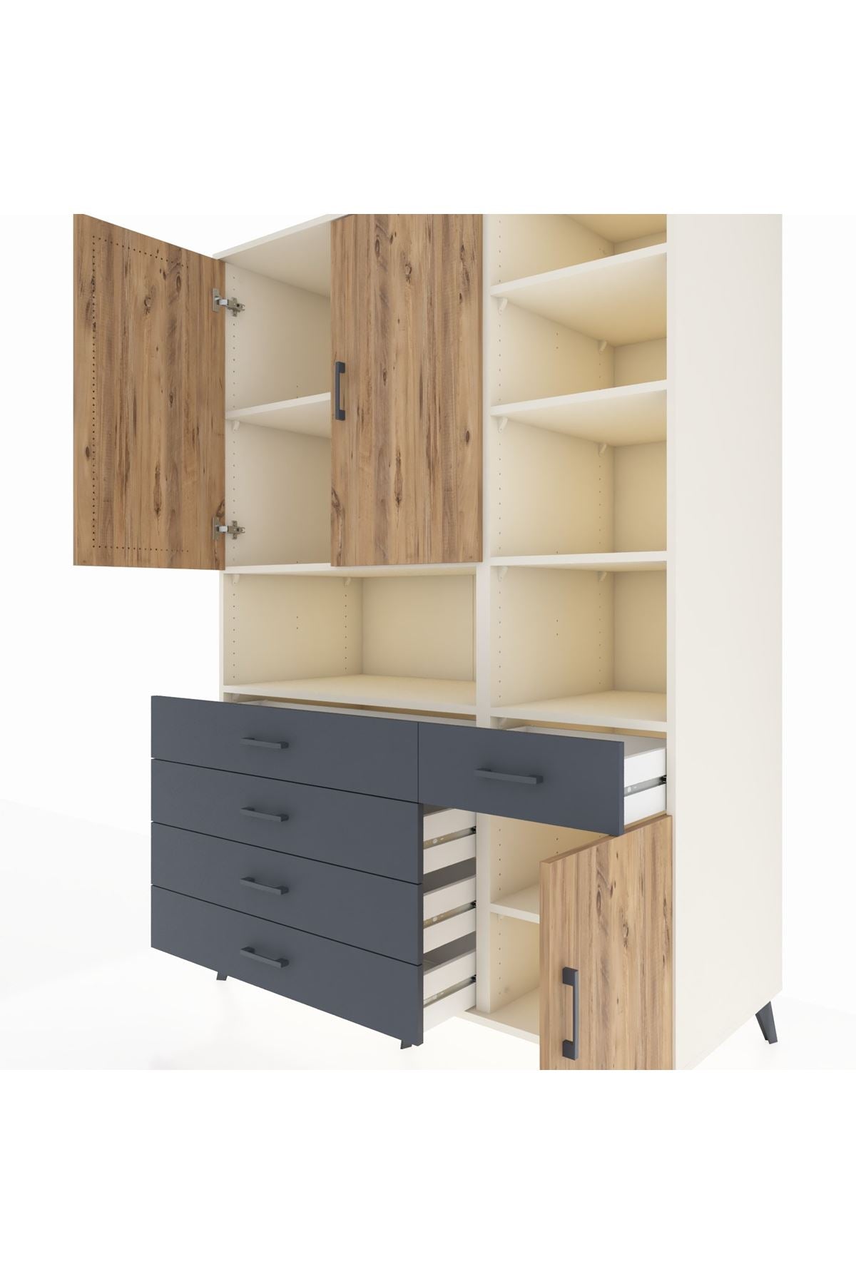 Kronos Dolap 8 Raflı 5 Çekmeceli 3 Kapaklı 132x59x195 Aytaşı-Çam/Antrasit