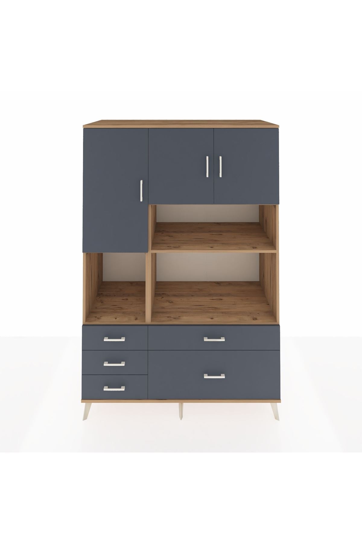 Kronos Dolap 8 Raflı 5 Çekmeceli 3 Kapaklı 132x59x195 Çam-Antrasit/Antrasit