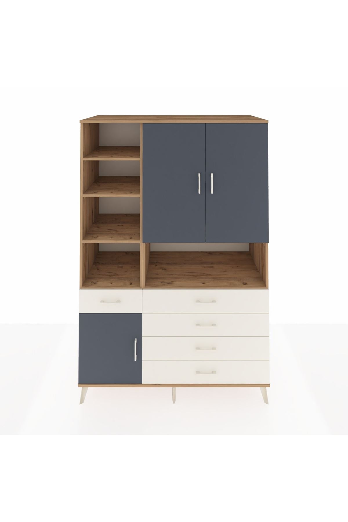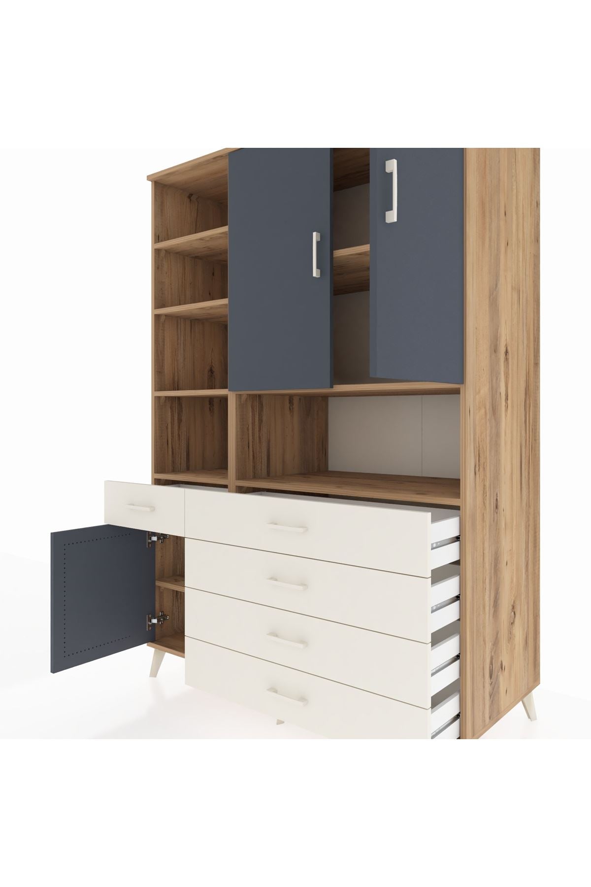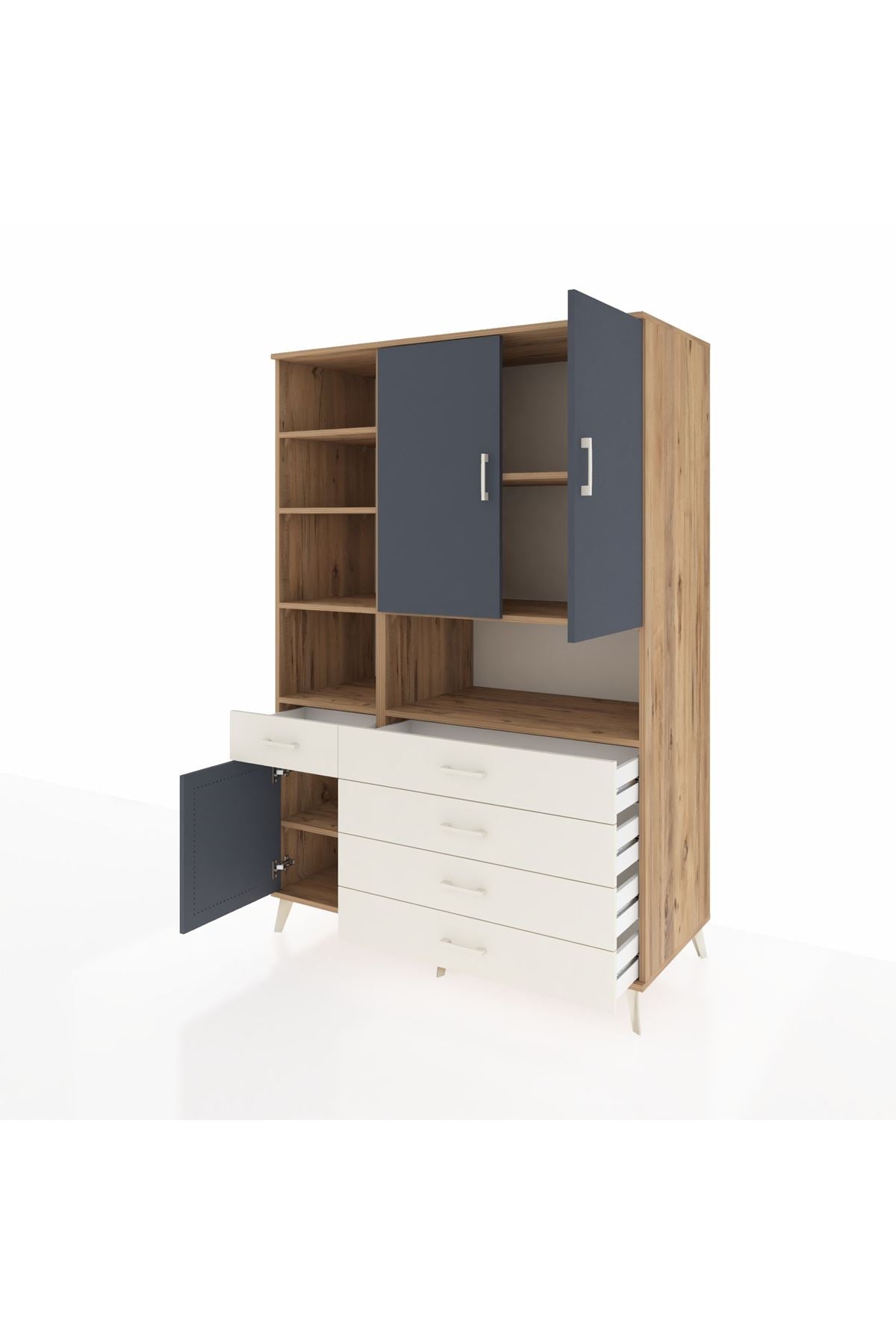 Kronos Dolap 8 Raflı 5 Çekmeceli 3 Kapaklı 132x59x195 Çam-Antrasit/Aytaşı