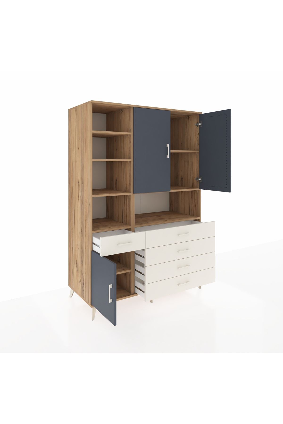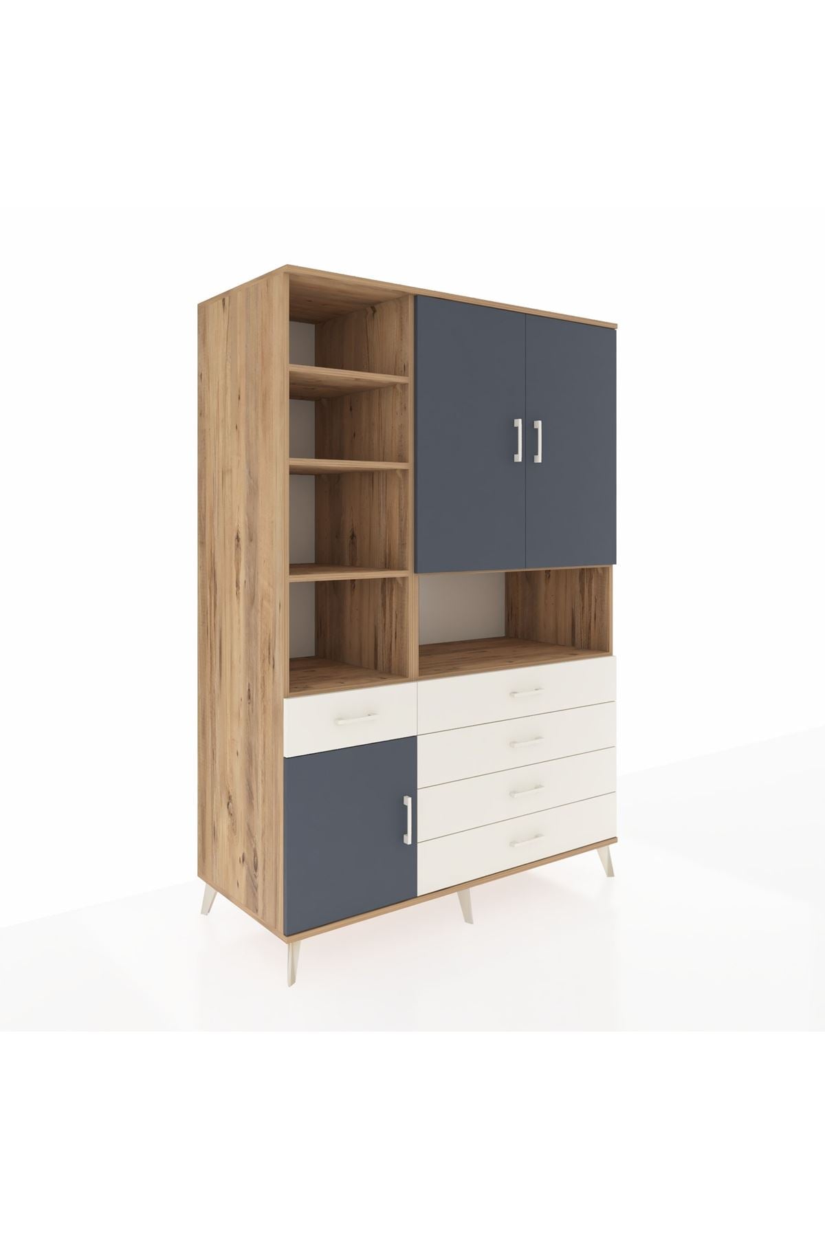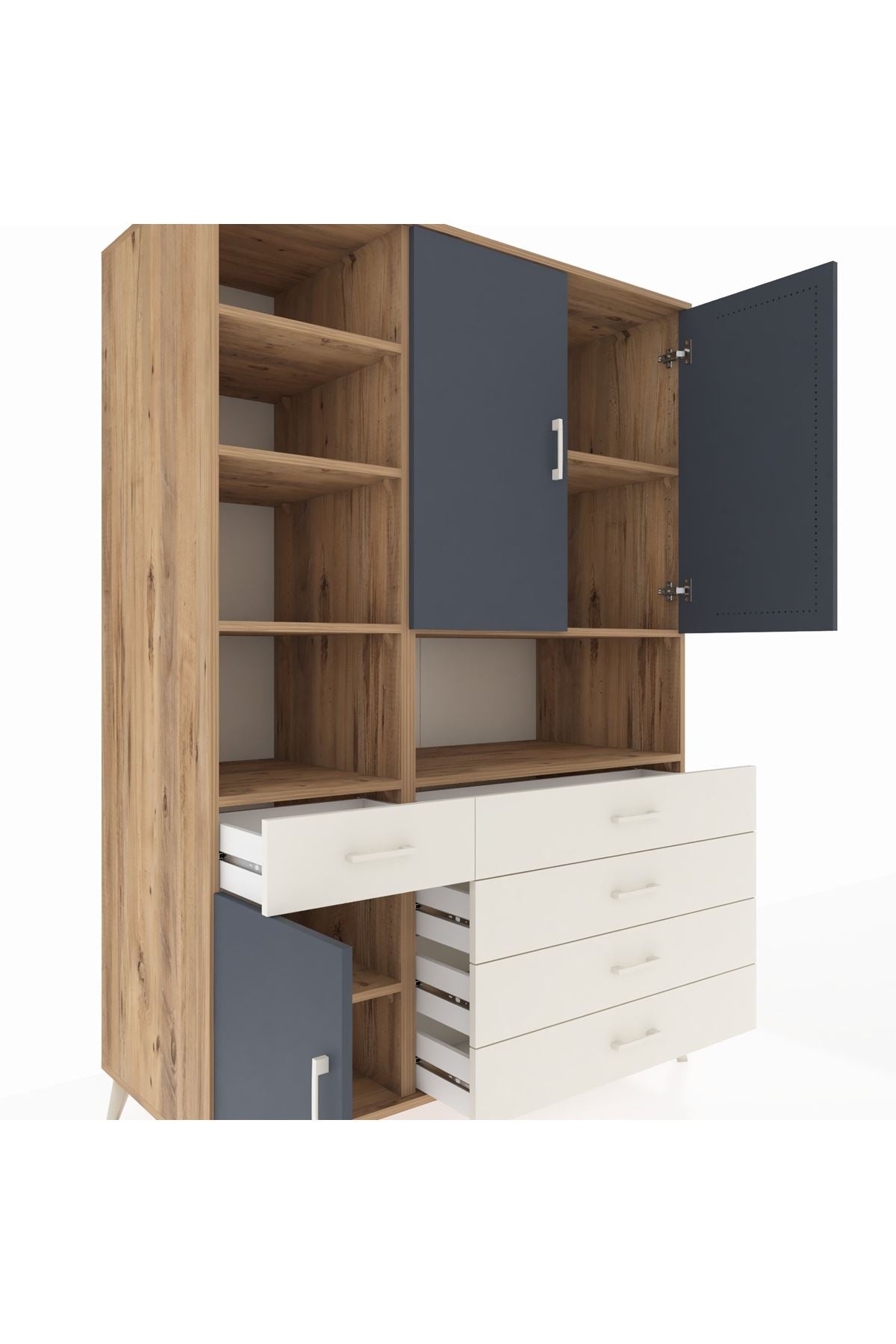 Kronos Dolap 8 Raflı 5 Çekmeceli 3 Kapaklı 132x59x195 Çam-Antrasit/Aytaşı