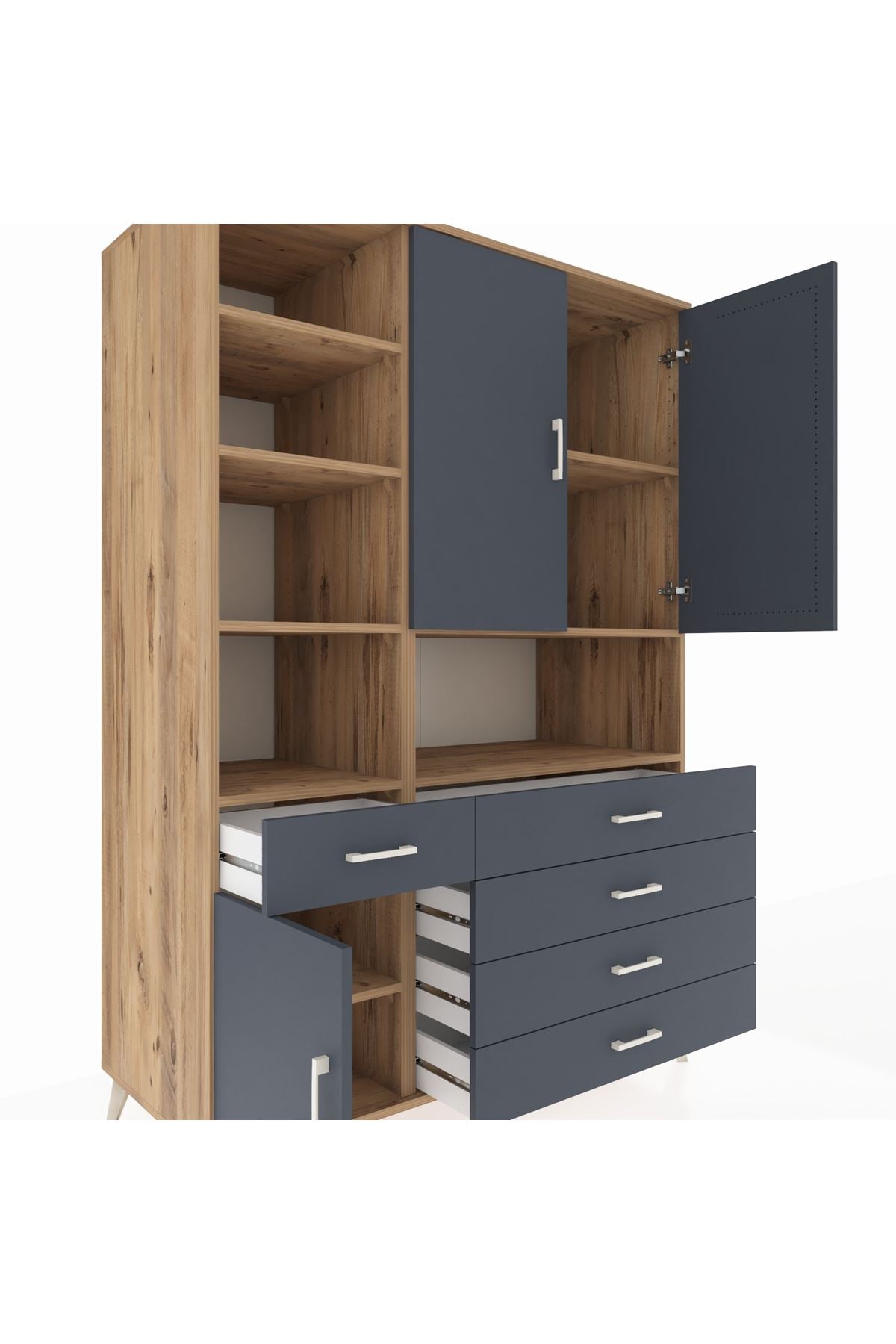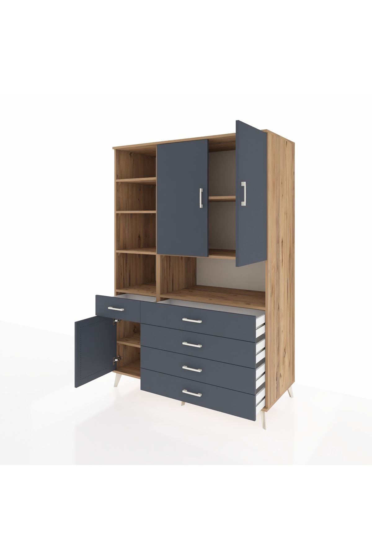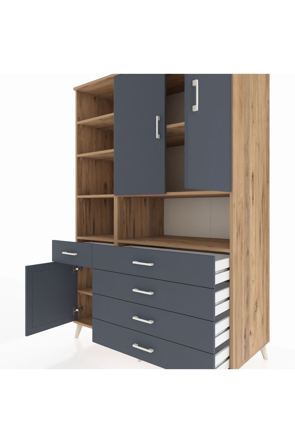 Kronos Dolap 8 Raflı 5 Çekmeceli 3 Kapaklı 132x59x195 Çam-Antrasit/Antrasit