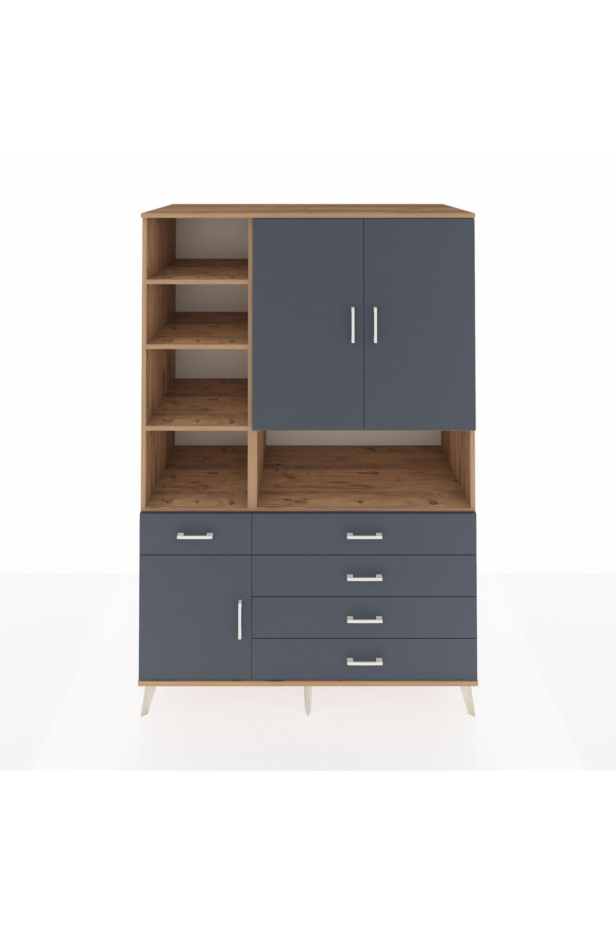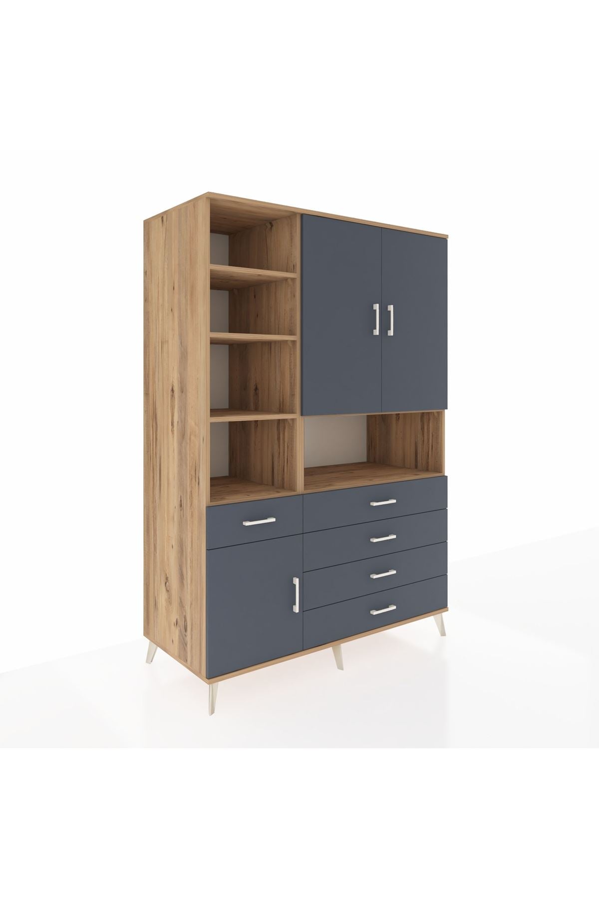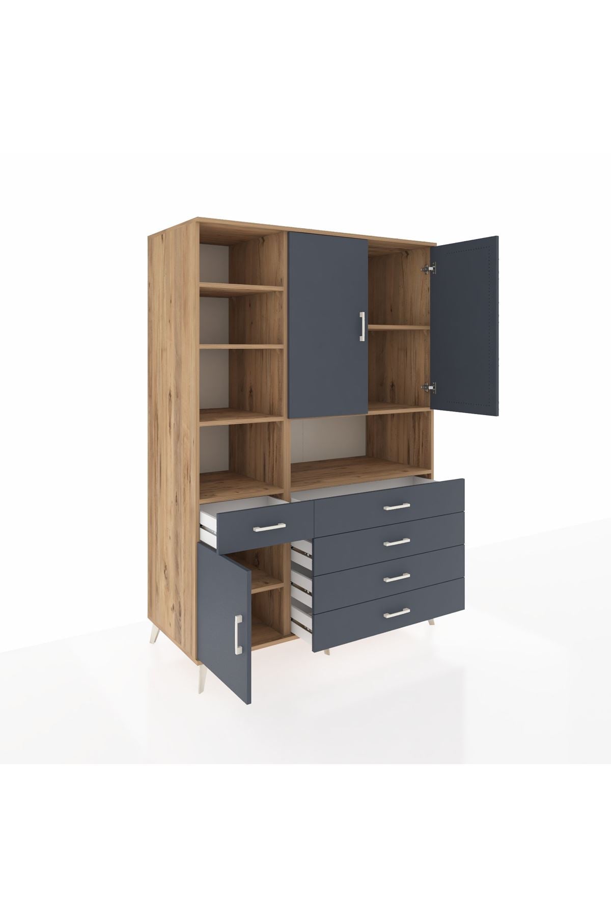 Kronos Dolap 8 Raflı 5 Çekmeceli 3 Kapaklı 132x59x195 Çam-Antrasit/Antrasit
