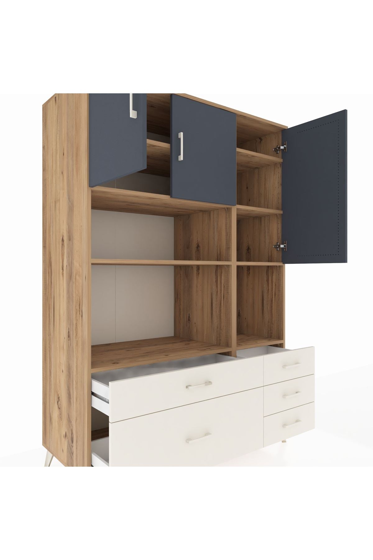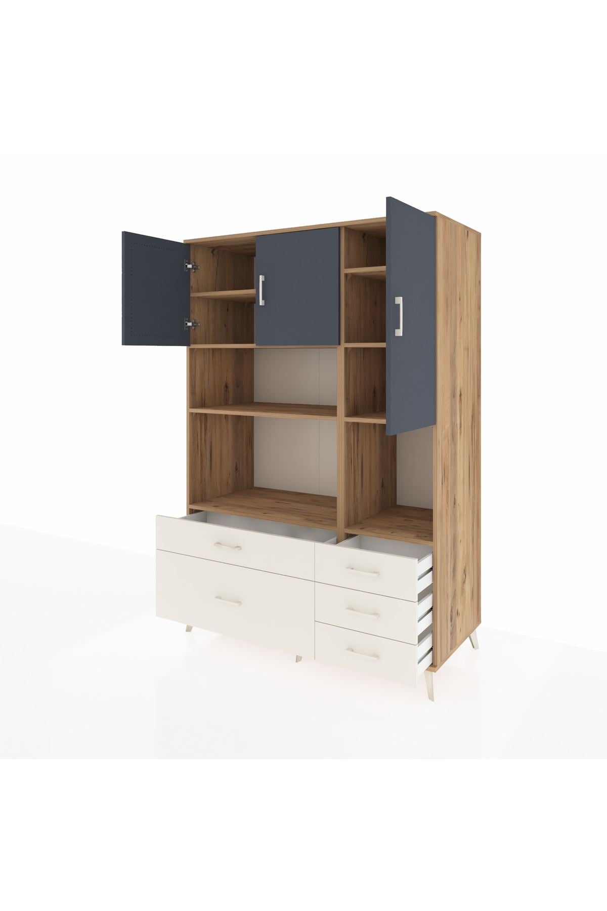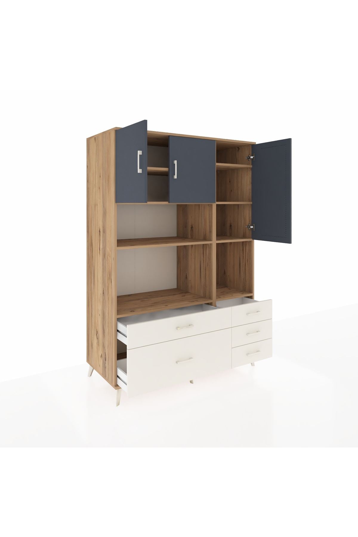 Kronos Dolap 8 Raflı 5 Çekmeceli 3 Kapaklı 132x59x195 Çam-Antrasit/Aytaşı