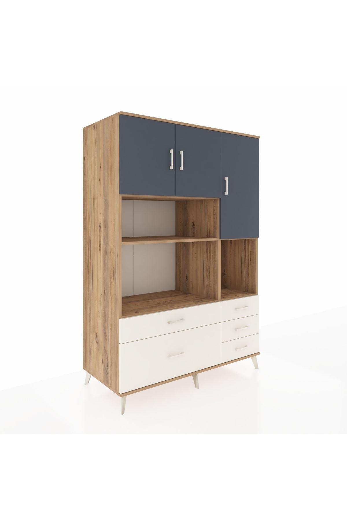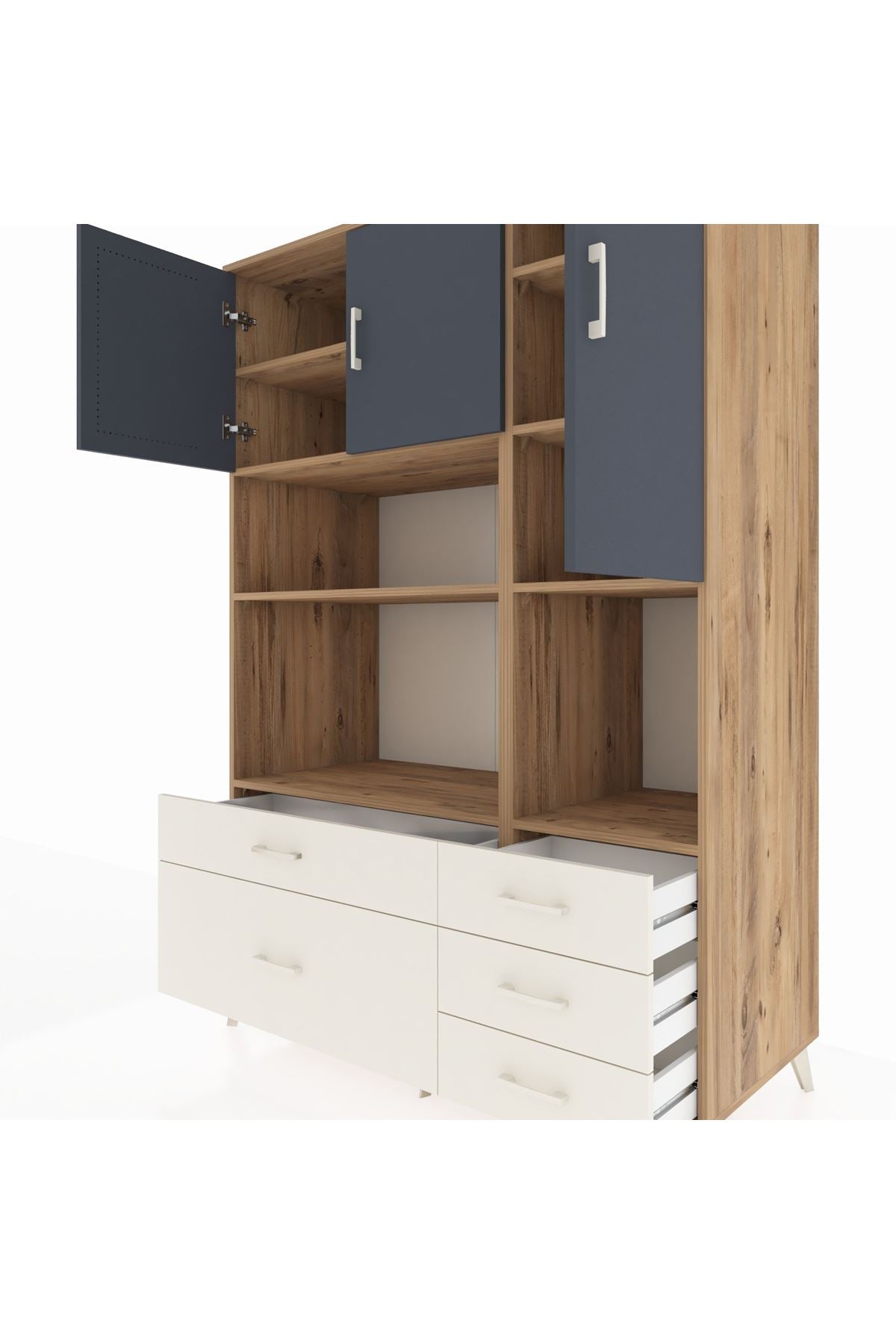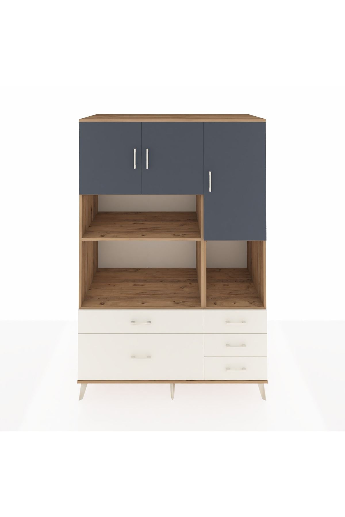 Kronos Dolap 8 Raflı 5 Çekmeceli 3 Kapaklı 132x59x195 Çam-Antrasit/Aytaşı