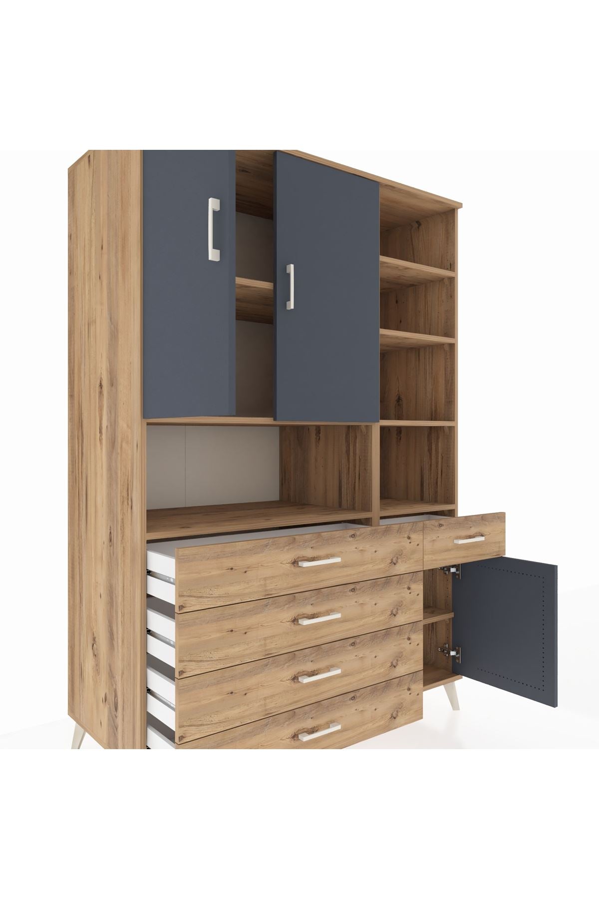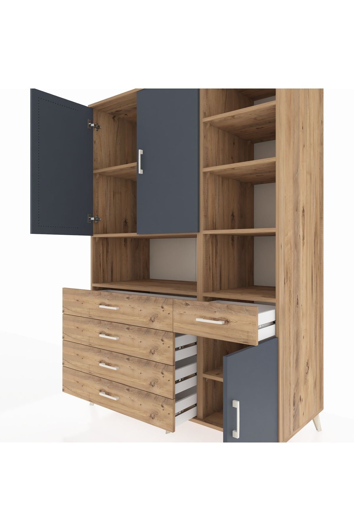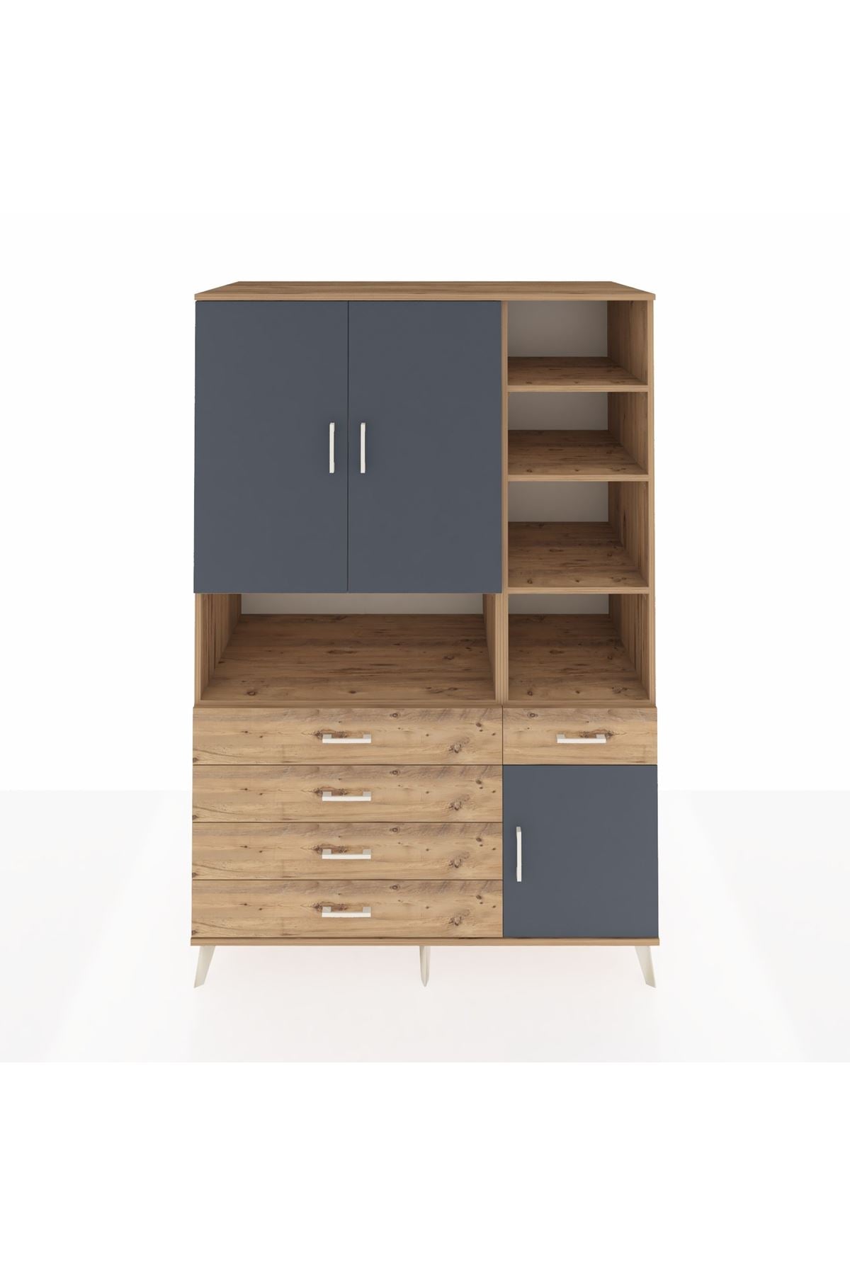 Kronos Dolap 8 Raflı 5 Çekmeceli 3 Kapaklı 132x59x195 Çam-Antrasit/Çam