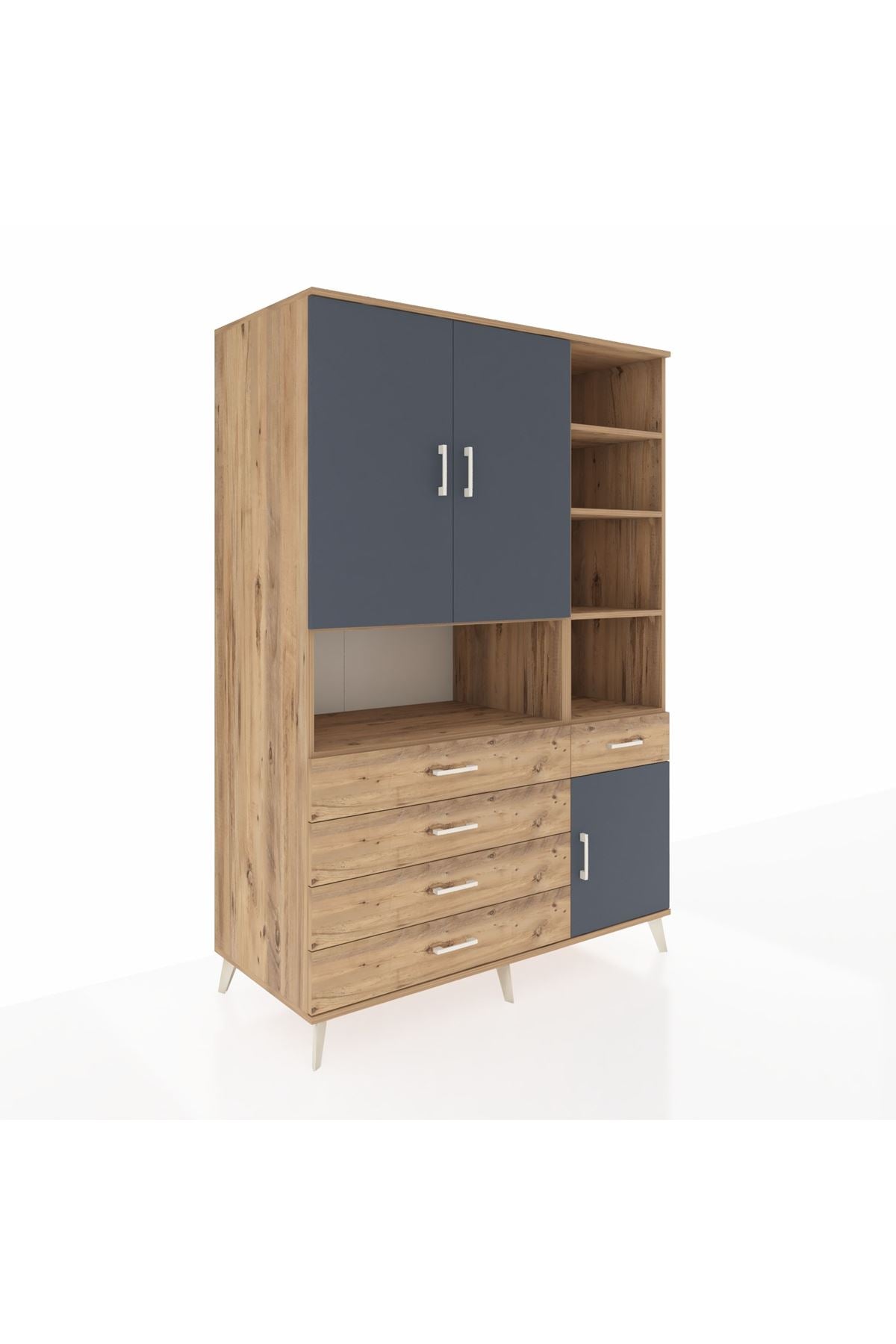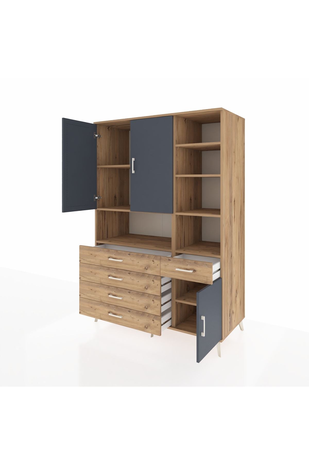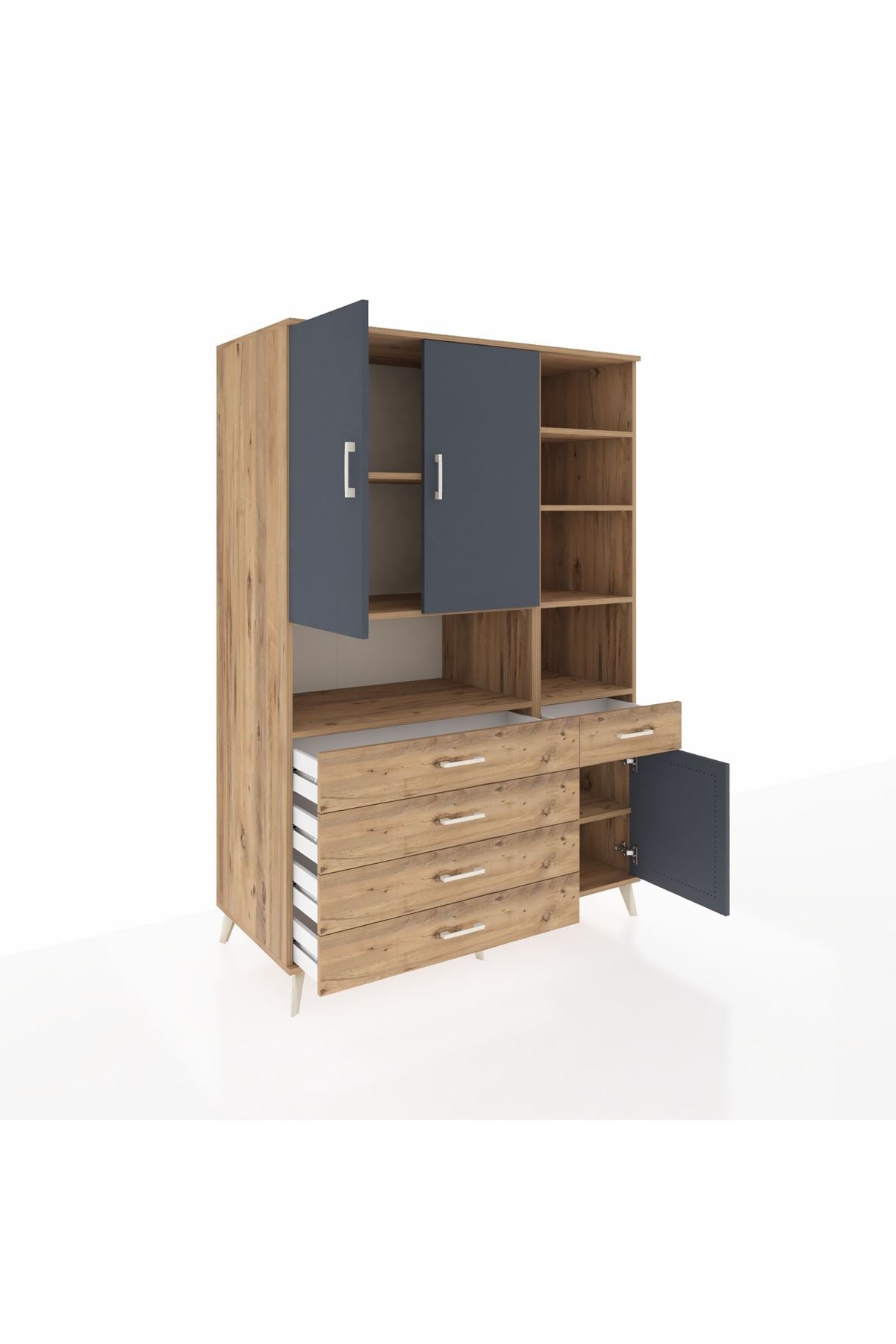 Kronos Dolap 8 Raflı 5 Çekmeceli 3 Kapaklı 132x59x195 Çam-Antrasit/Çam