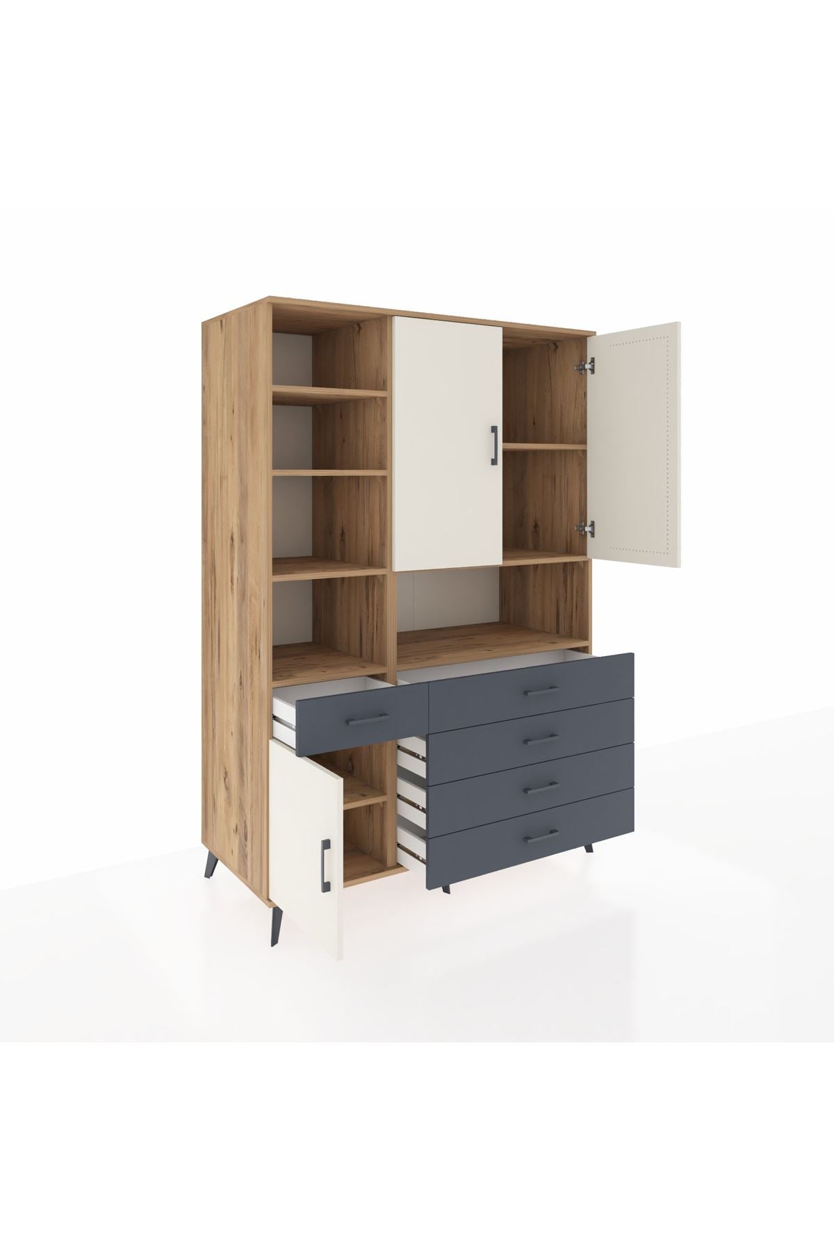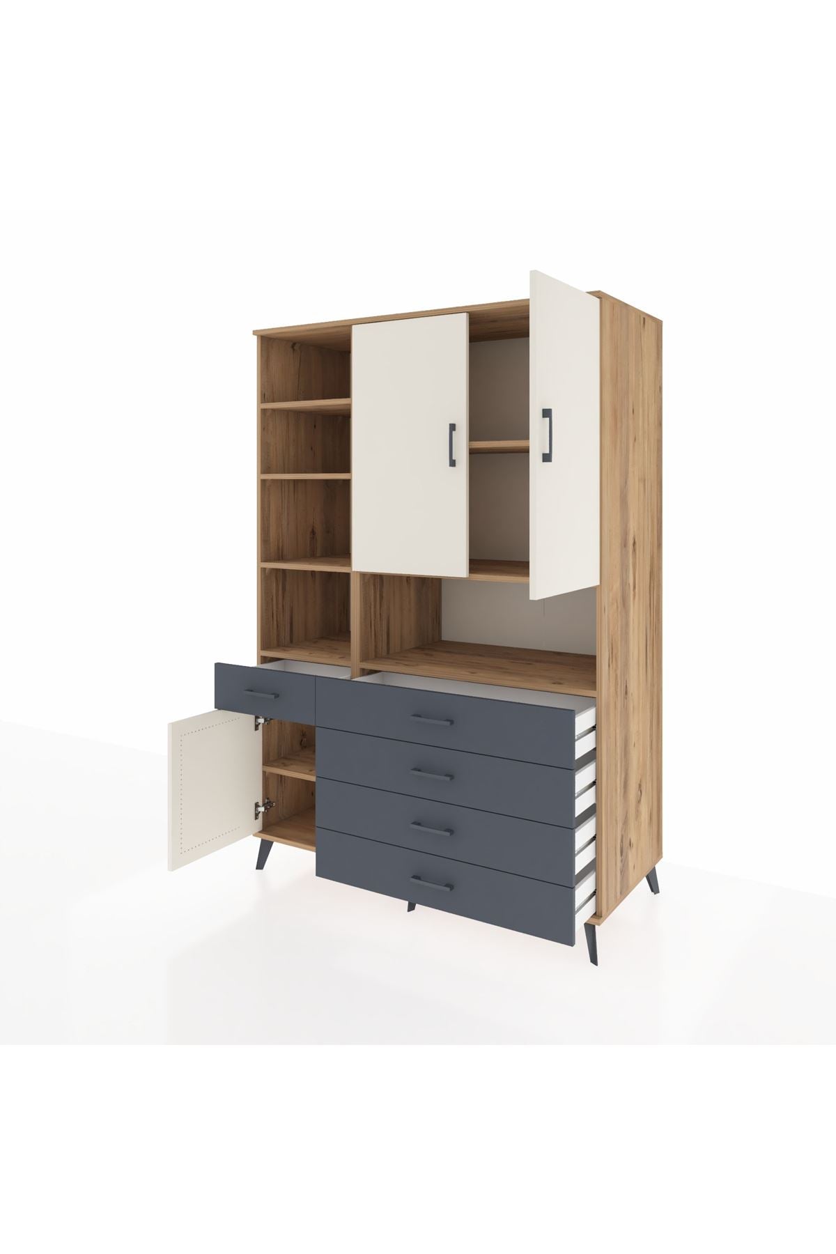 • Büfe dolabı: 132 cm genişliği, salon veya yemek odasında servis eşyalarını düzenlemenize yardımcı olur.