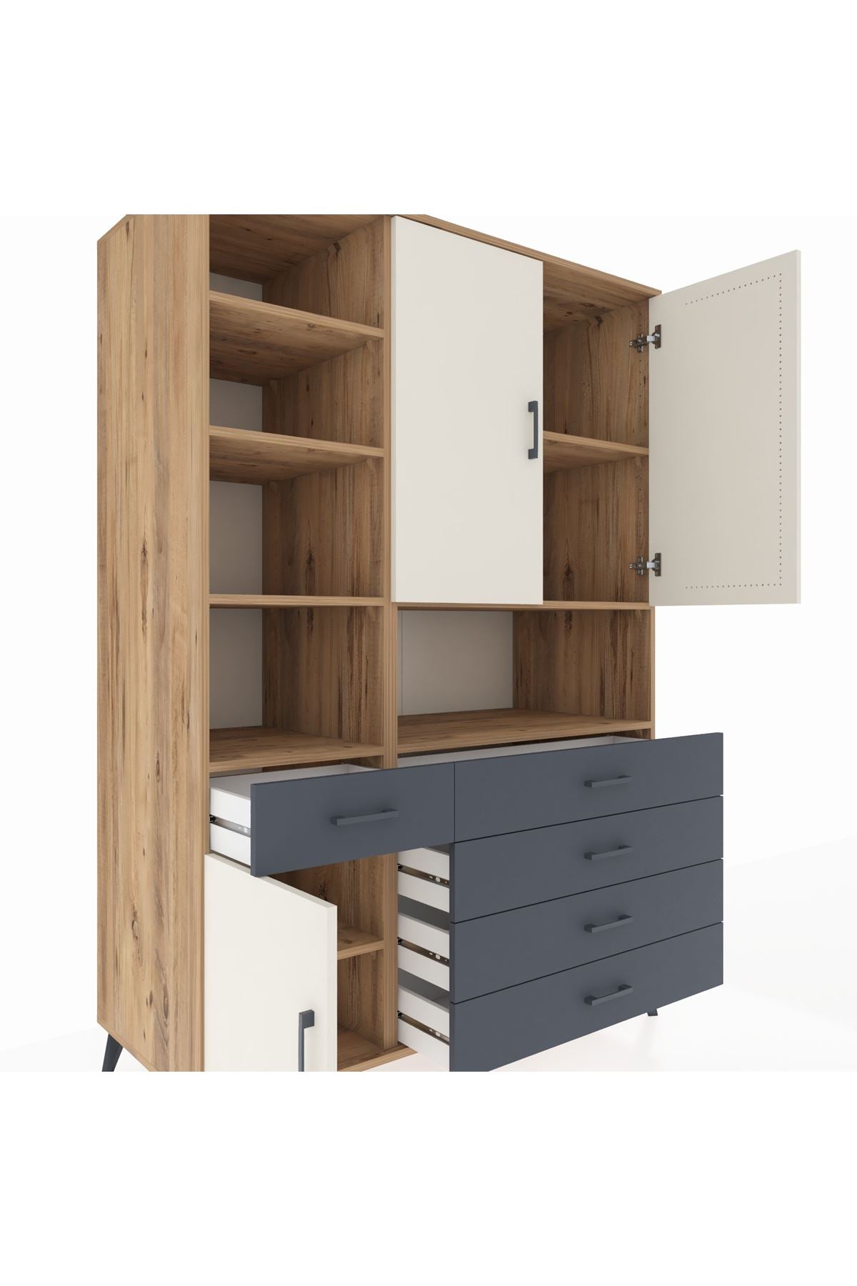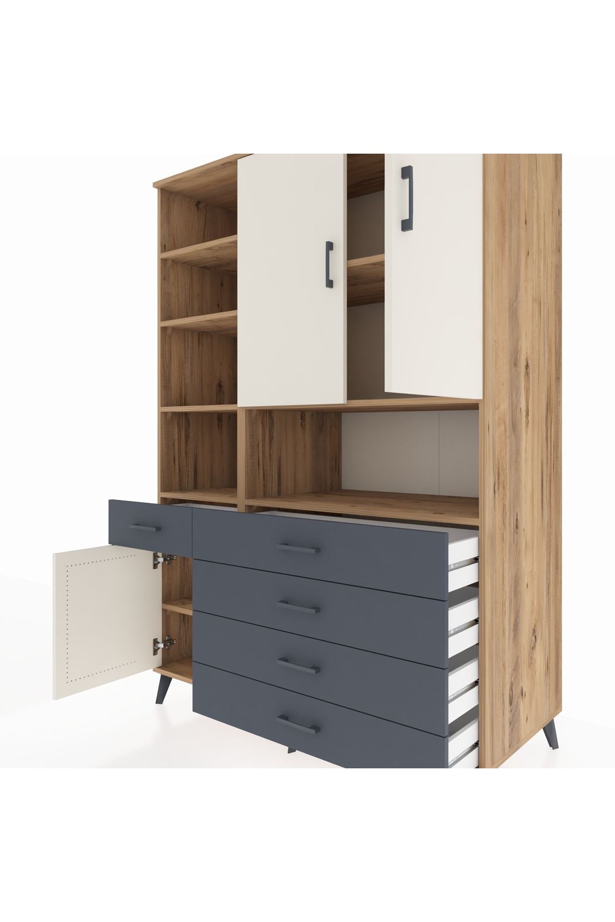 Kronos Dolap 8 Raflı 5 Çekmeceli 3 Kapaklı 132x59x195 Çam-Aytaşı/Antrasit