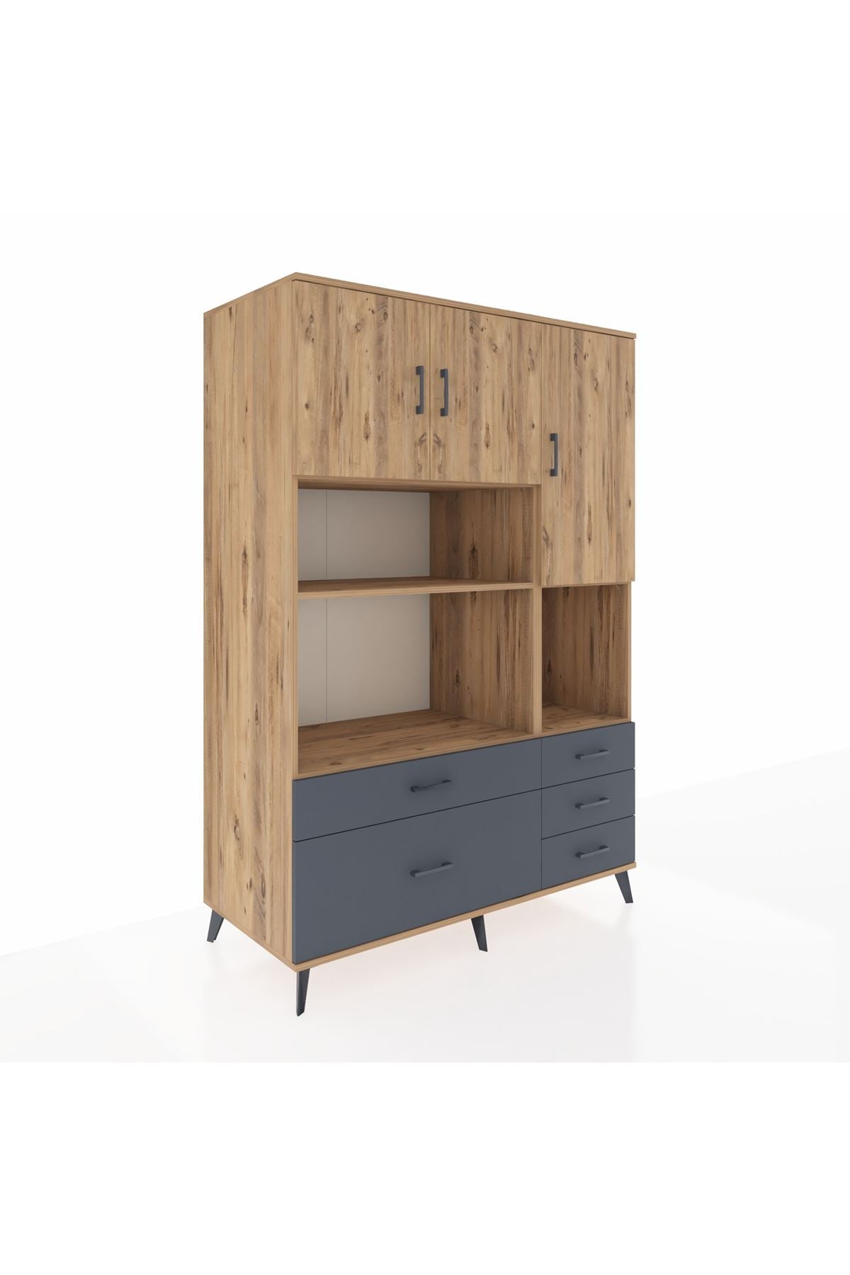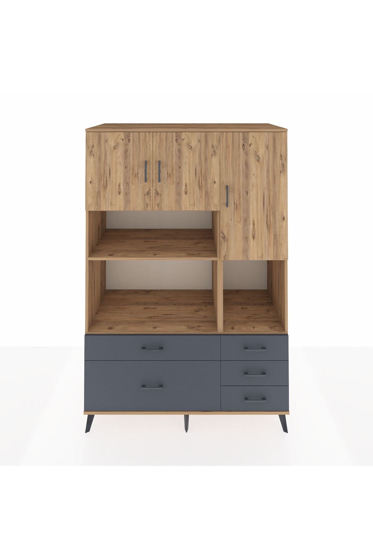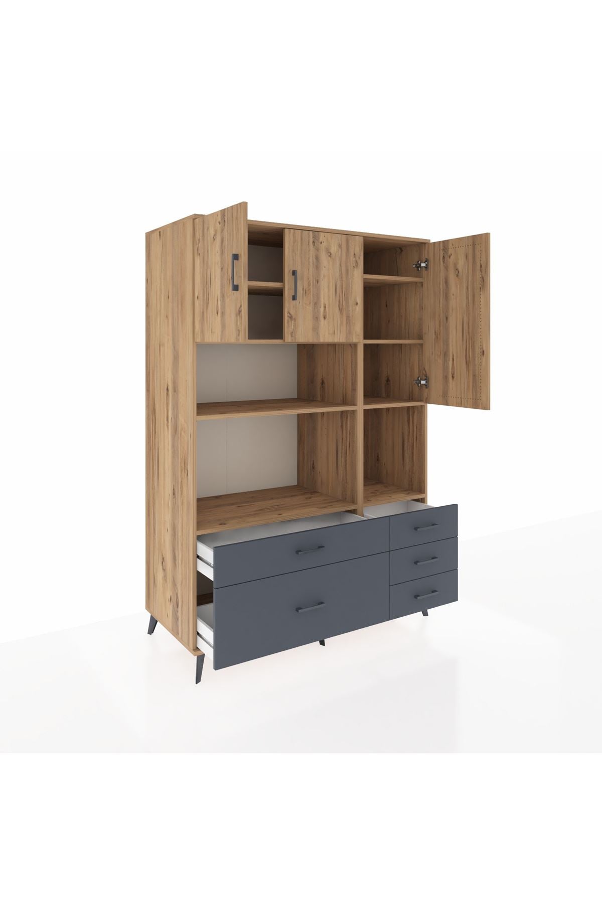 Kronos Dolap 8 Raflı 5 Çekmeceli 3 Kapaklı 132x59x195 Çam-Çam/Antrasit