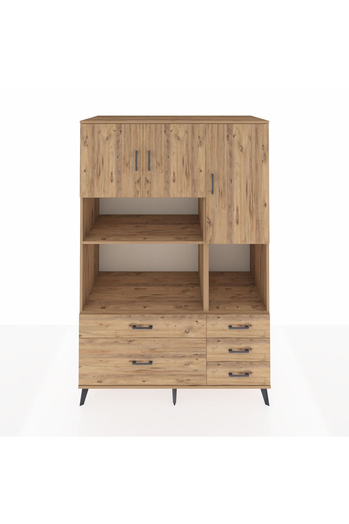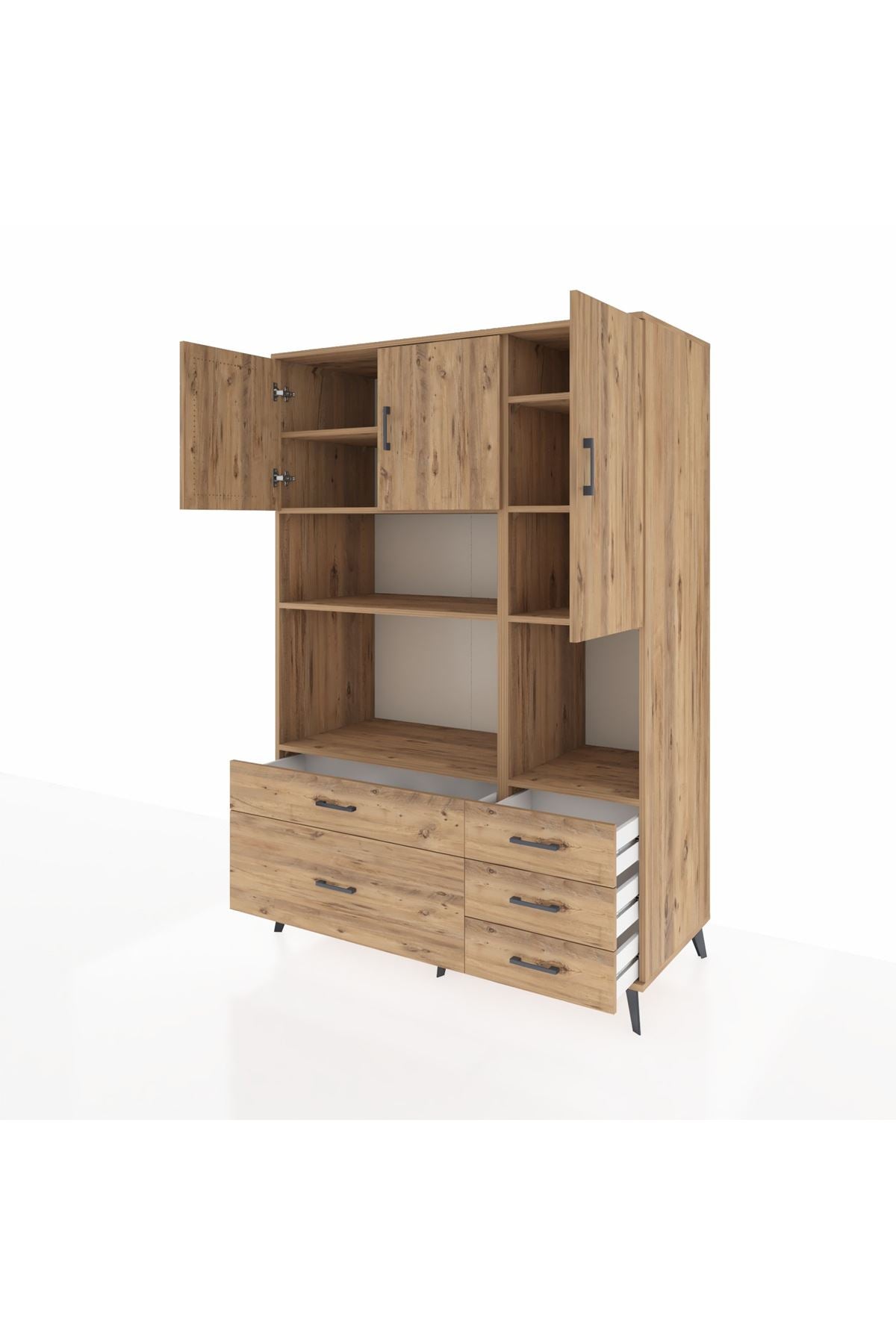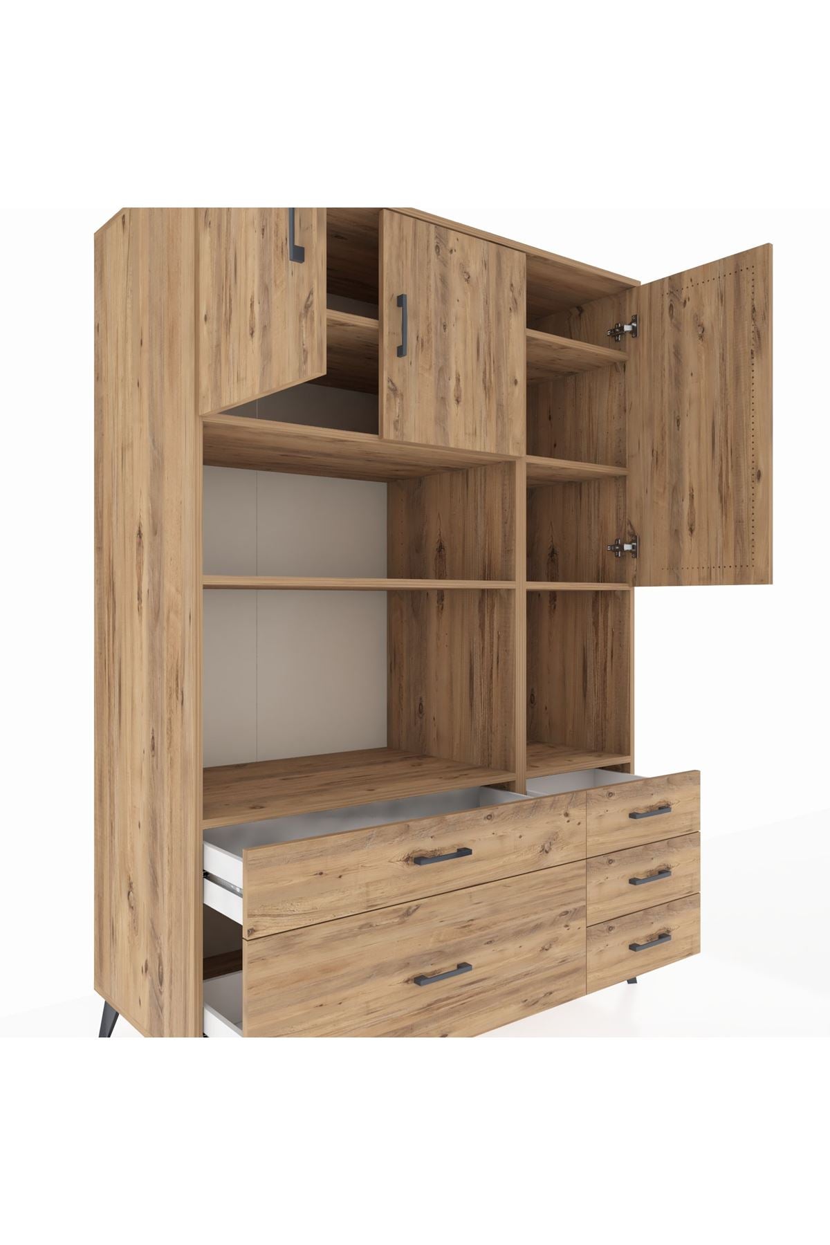 Kronos Dolap 8 Raflı 5 Çekmeceli 3 Kapaklı 132x59x195 Çam-Çam/Çam