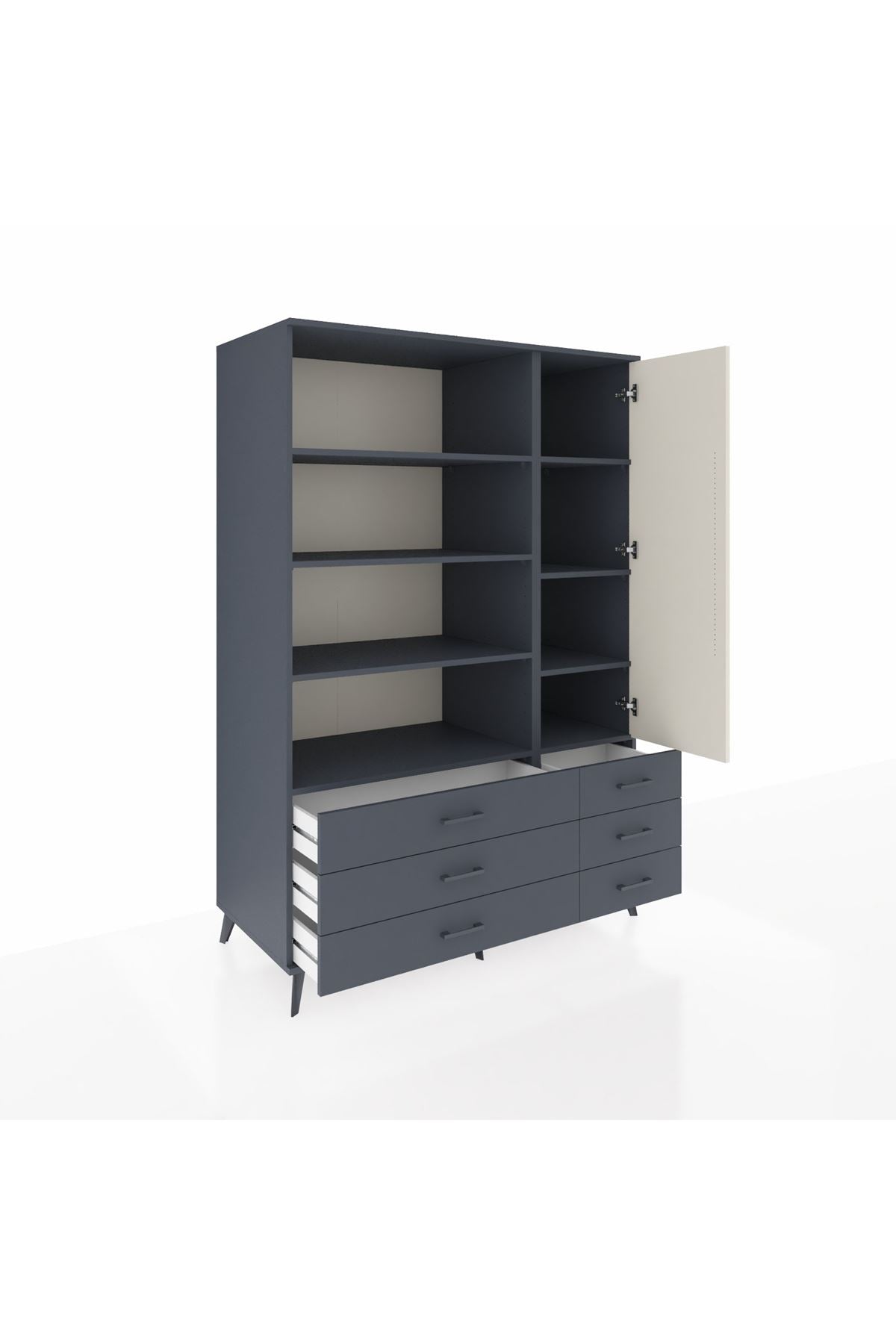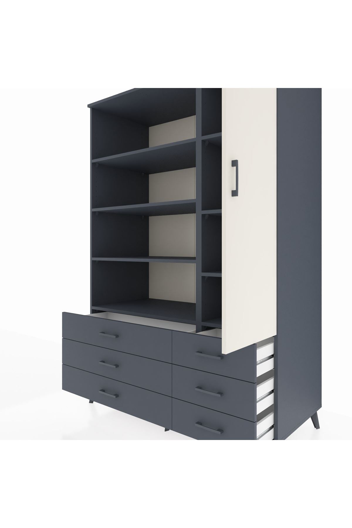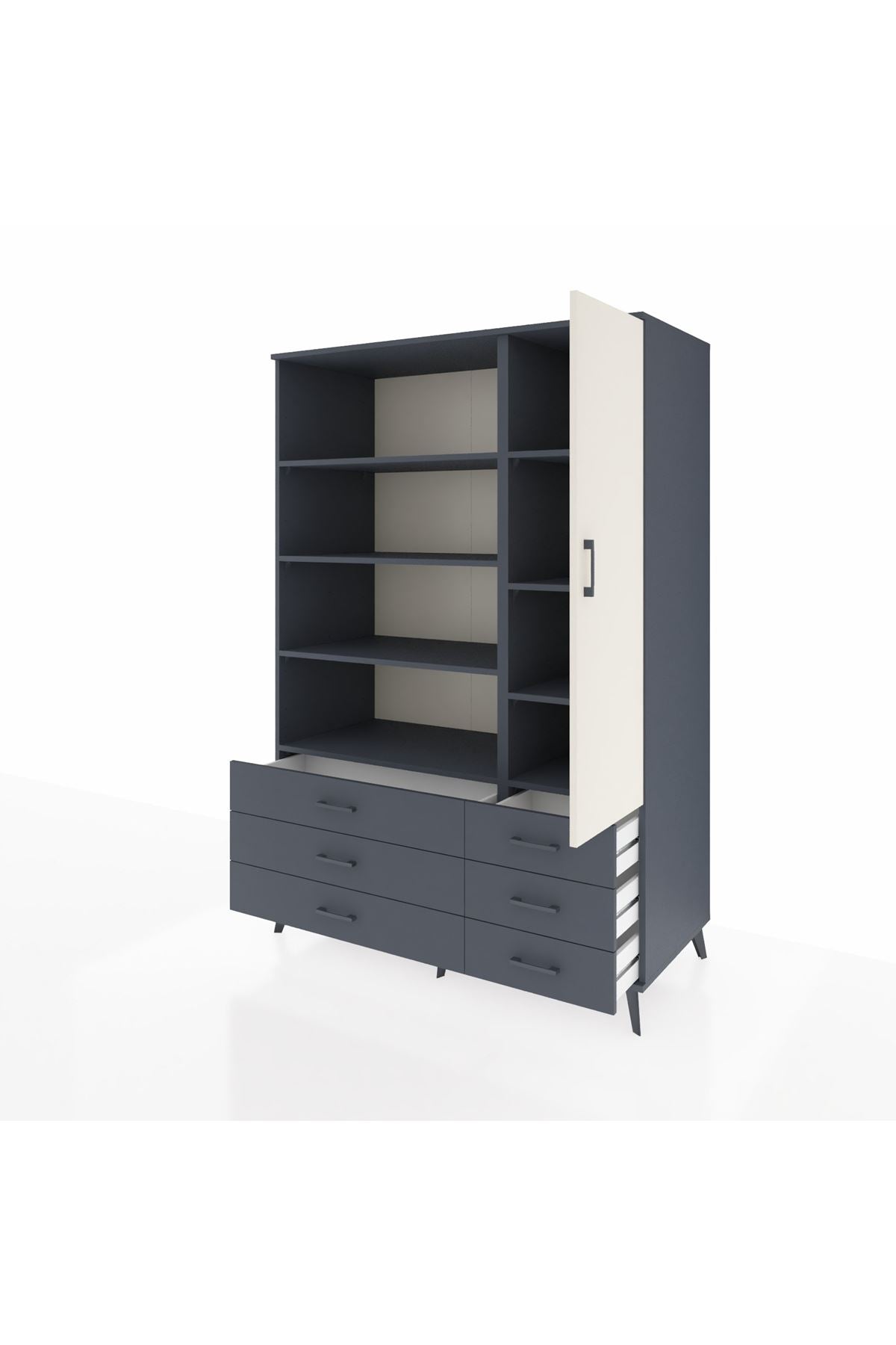Kronos Dolap 8 Raflı 6 Çekmeceli Tek Kapaklı 132x59x195 Antrasit-Aytaşı/Antrasit