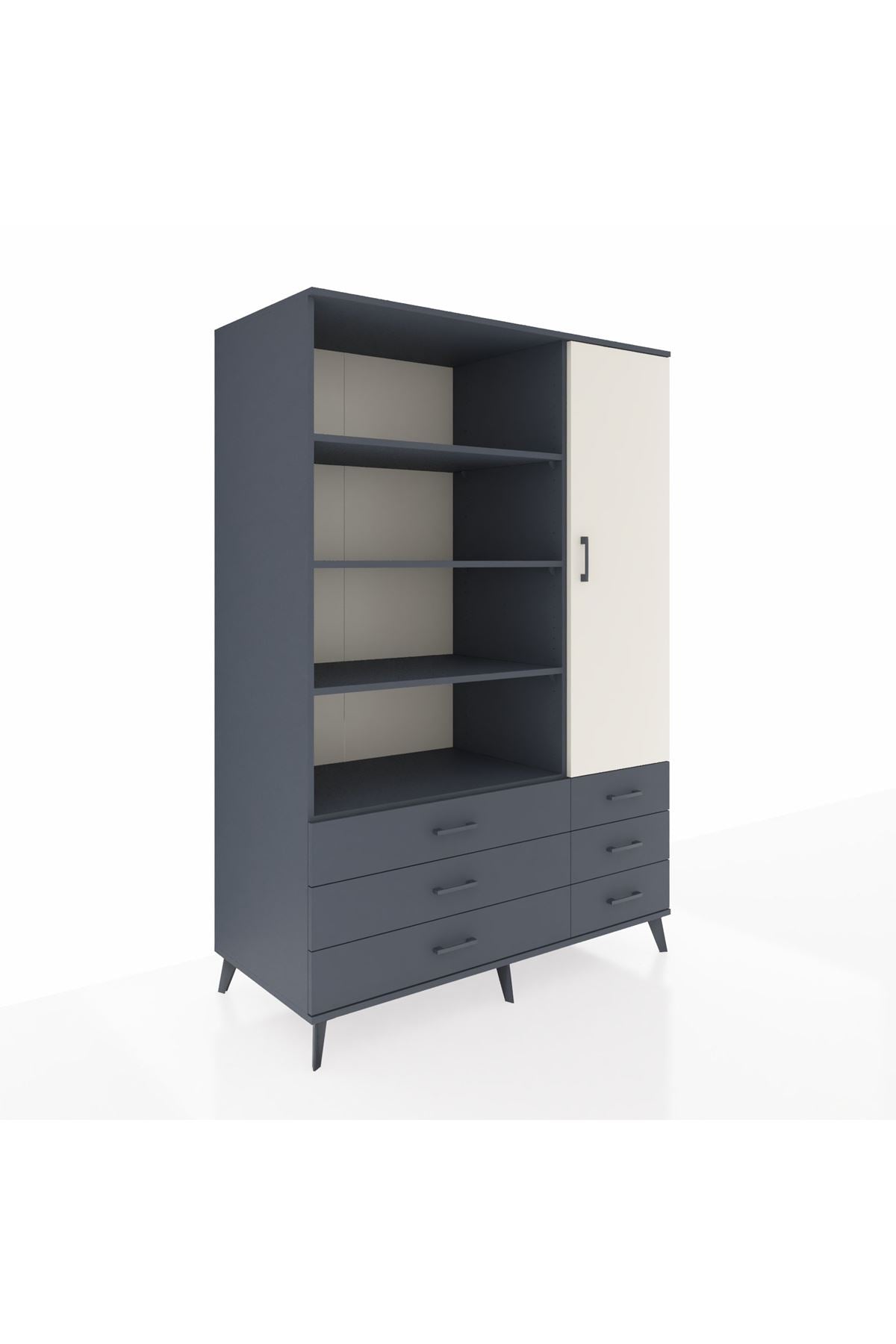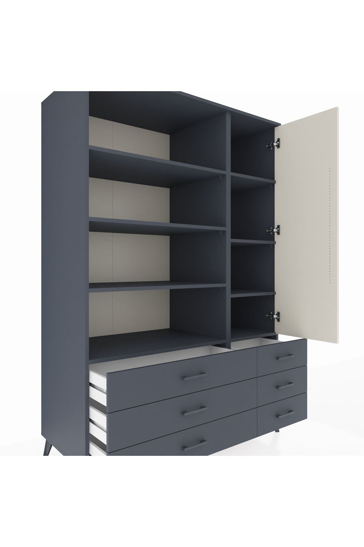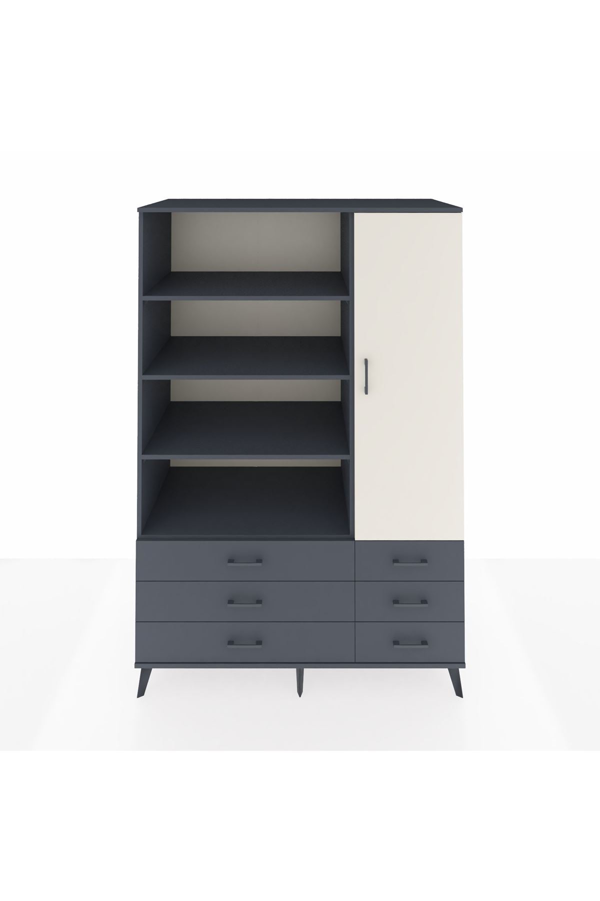Kronos Dolap 8 Raflı 6 Çekmeceli Tek Kapaklı 132x59x195 Antrasit-Aytaşı/Antrasit