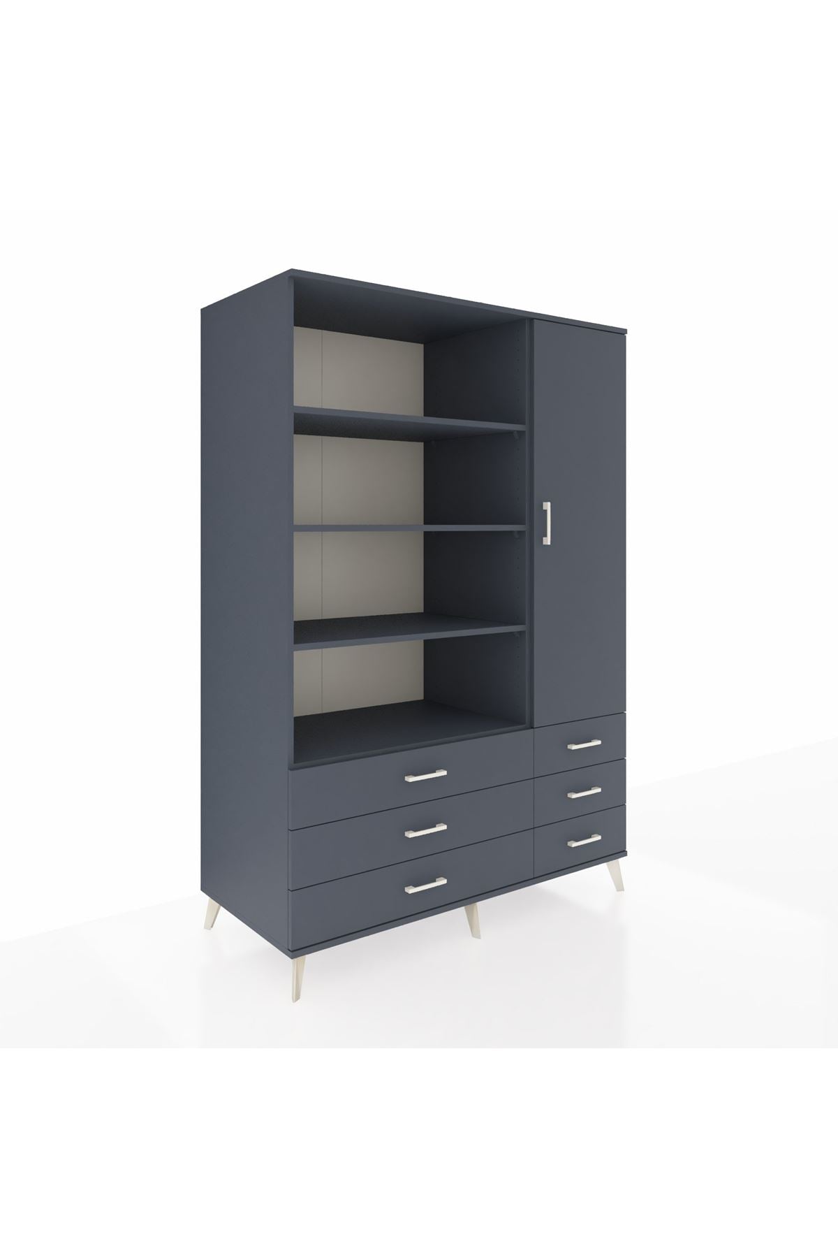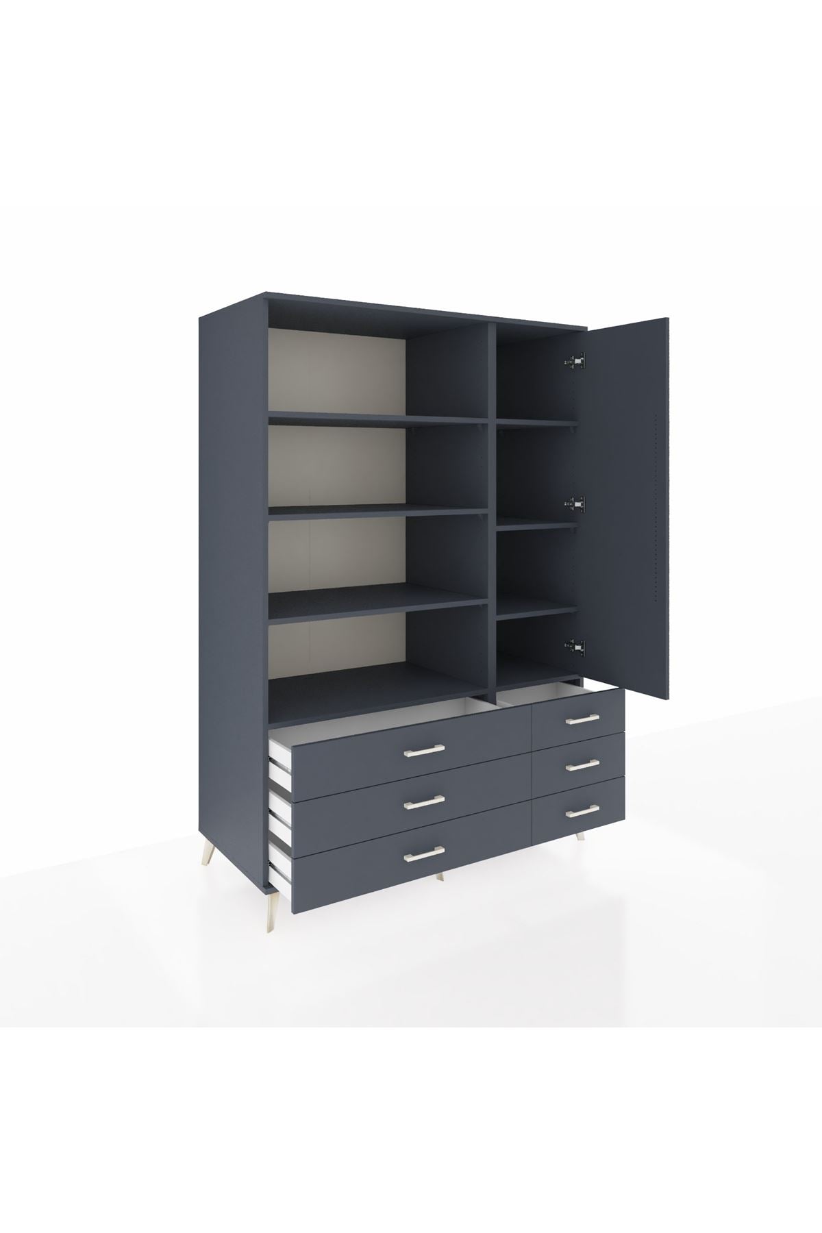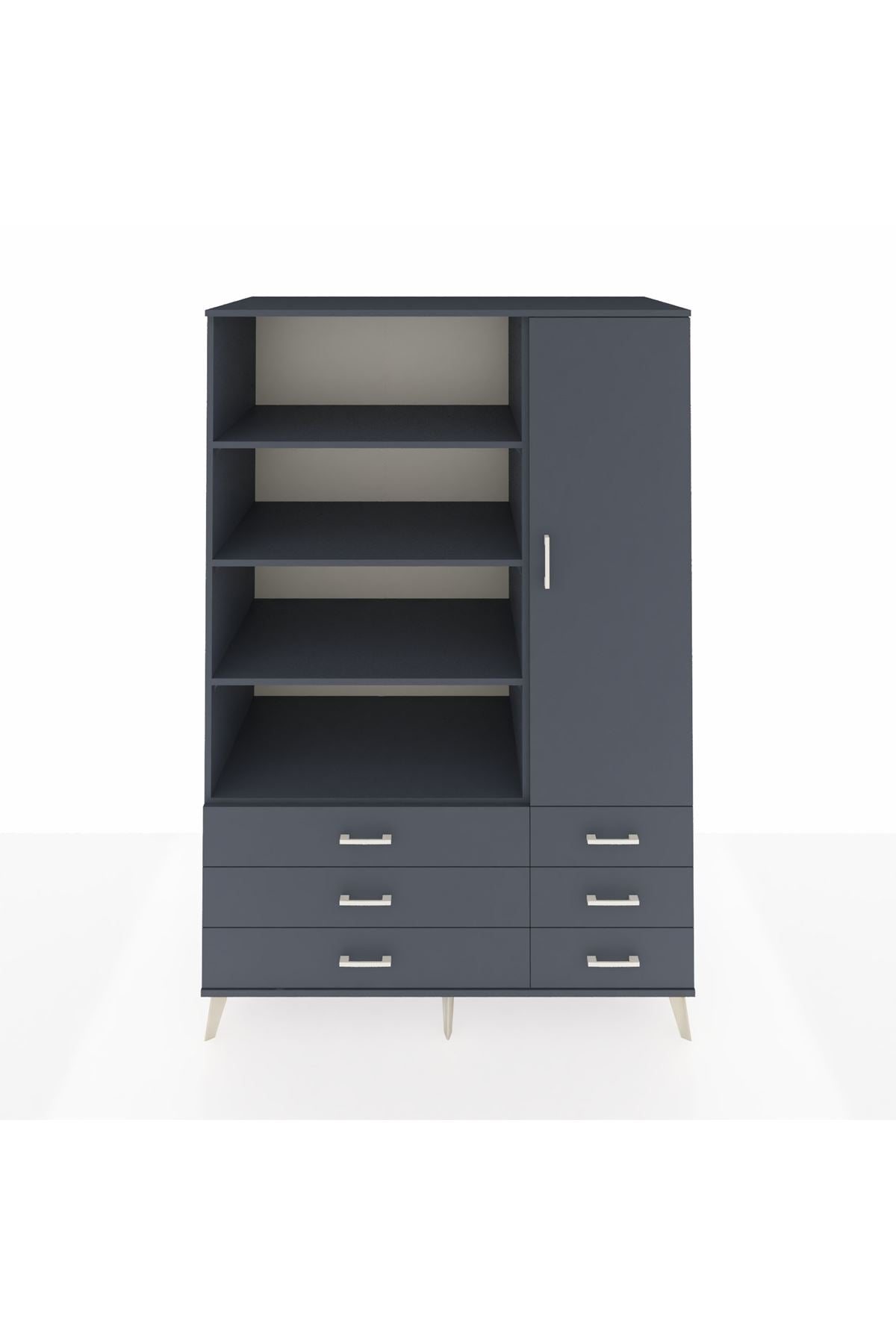 Modern antrasit tonuyla hem minimalist hem sofistike bir görünüm sunarken, 8 raf ve 6 çekmecesiyle maksimum depolama alanı sağlıyor.