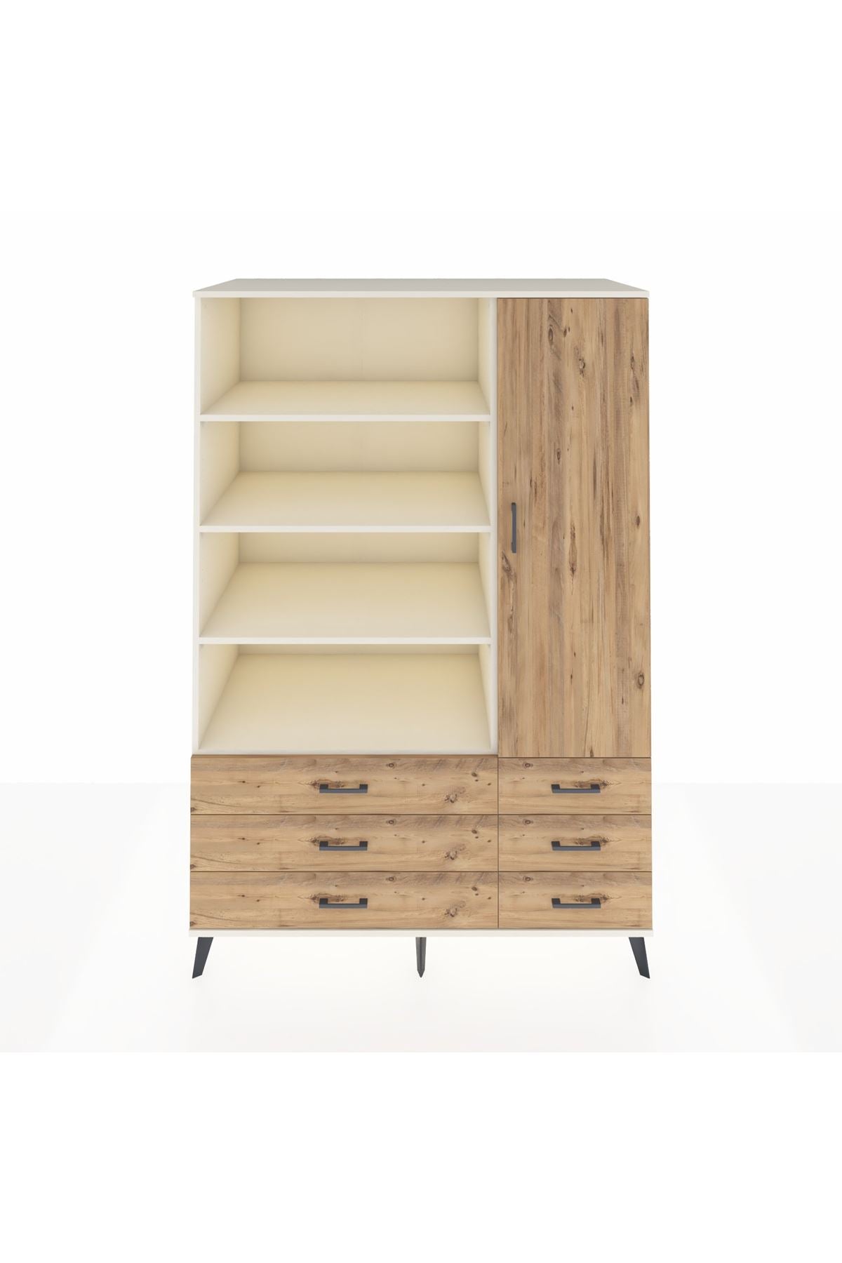 Kronos Dolap 8 Raflı 6 Çekmeceli Tek Kapaklı 132x59x195 Aytaşı-Çam/Çam