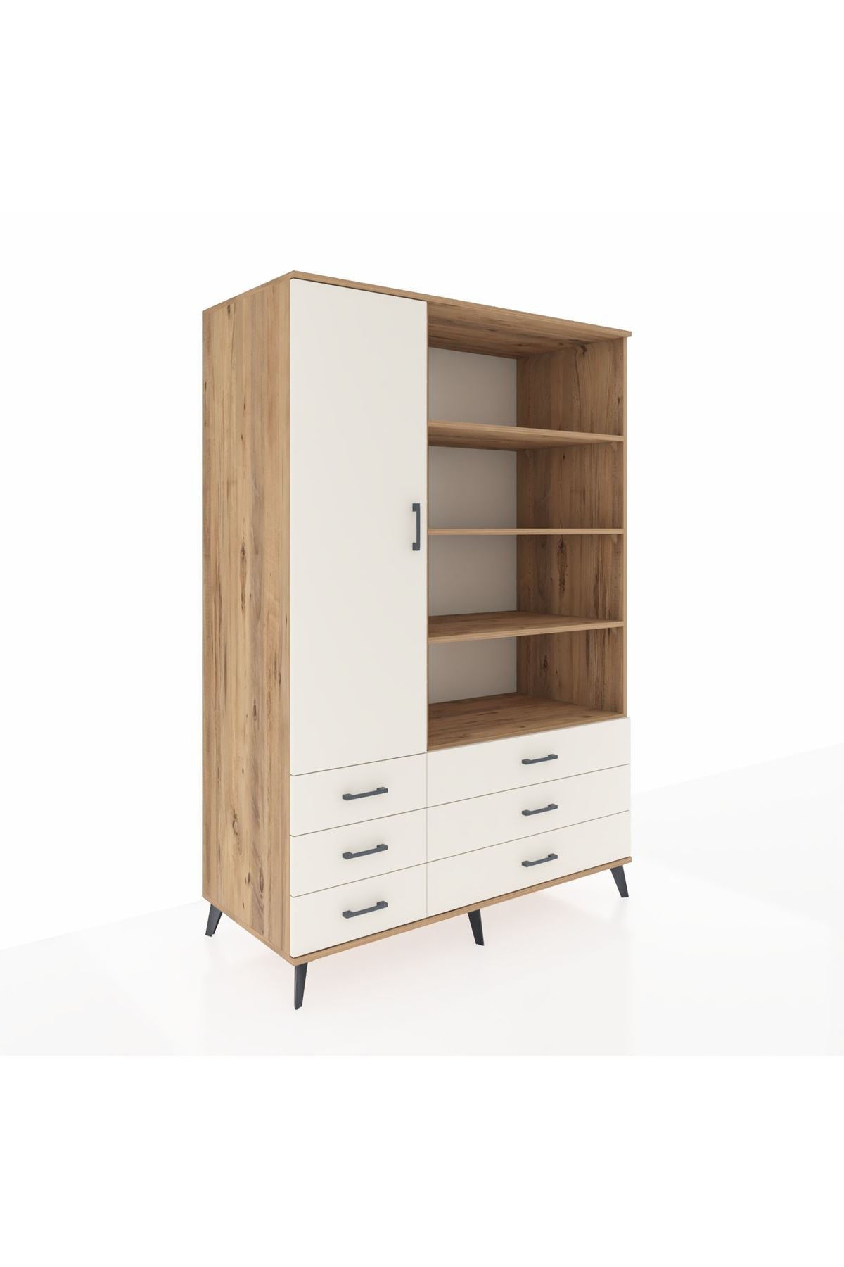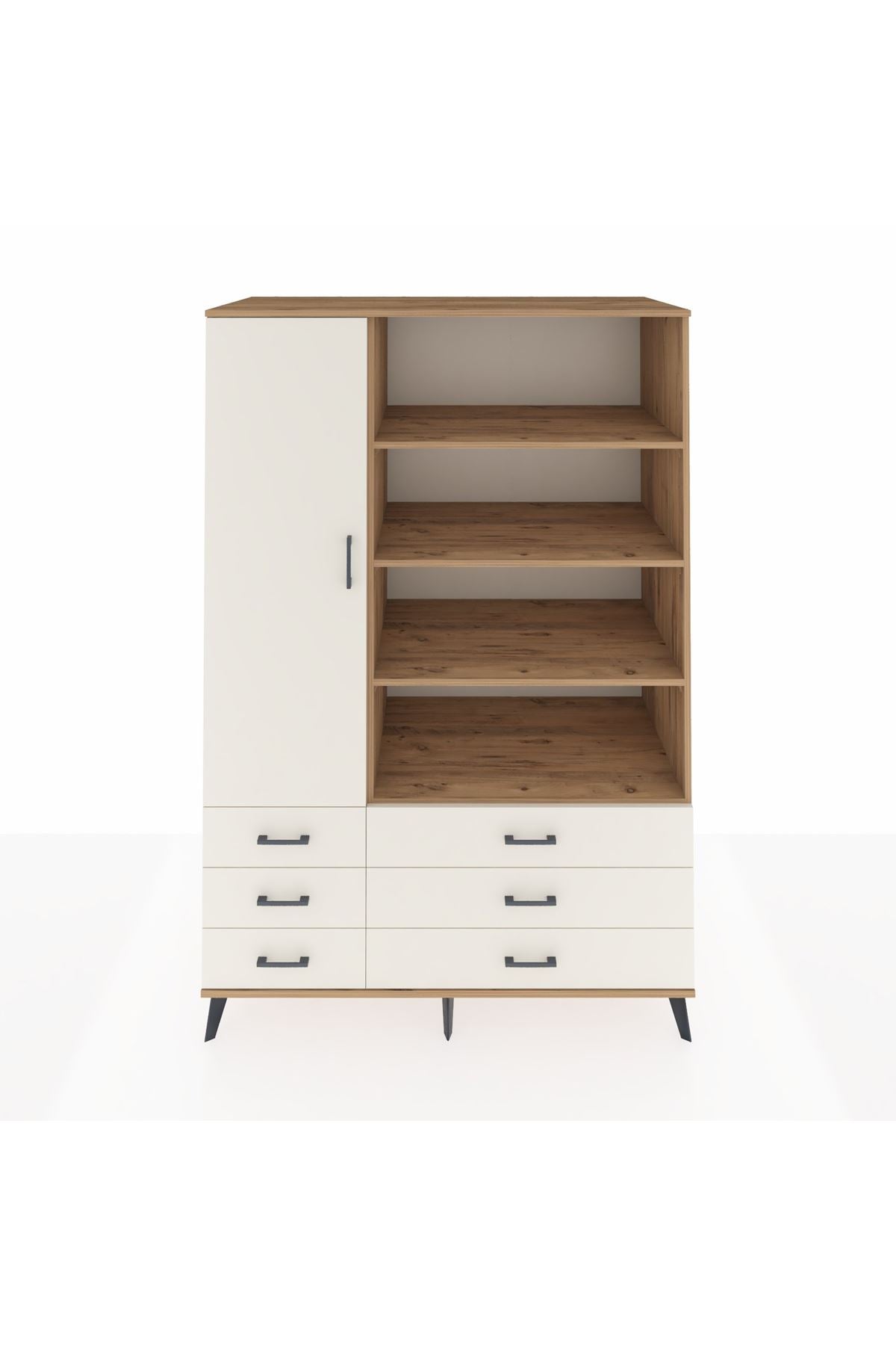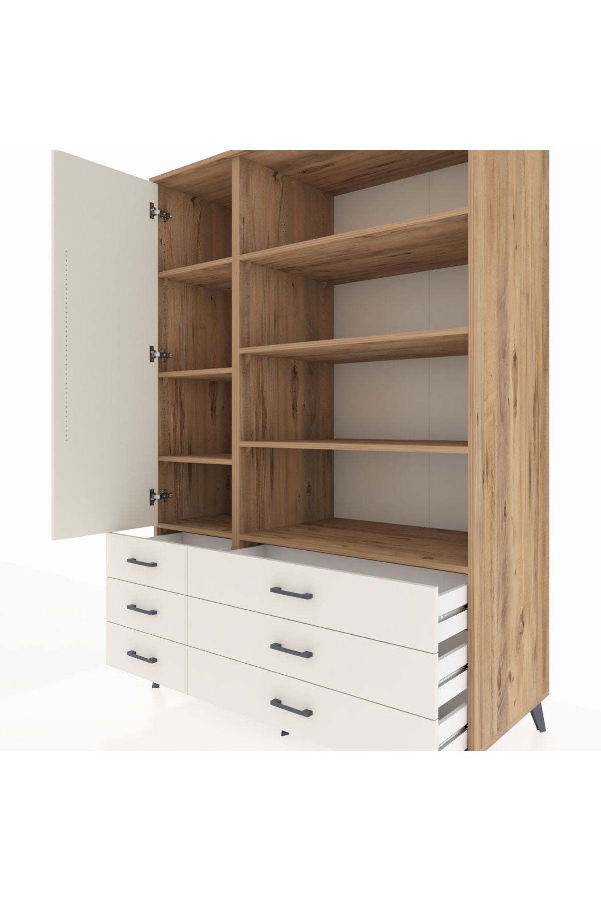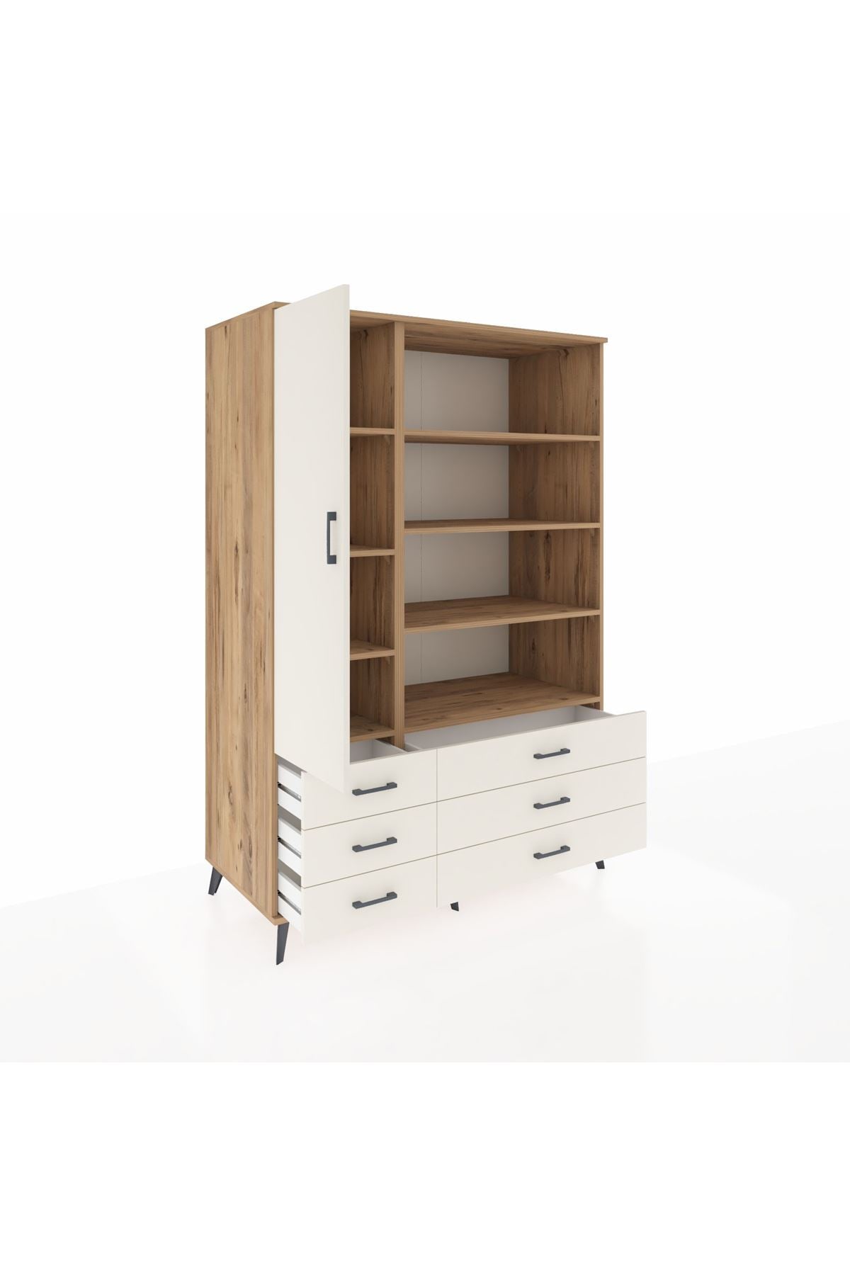 Kronos Dolap 8 Raflı 6 Çekmeceli Tek Kapaklı 132x59x195 Çam-Aytaşı/Aytaşı