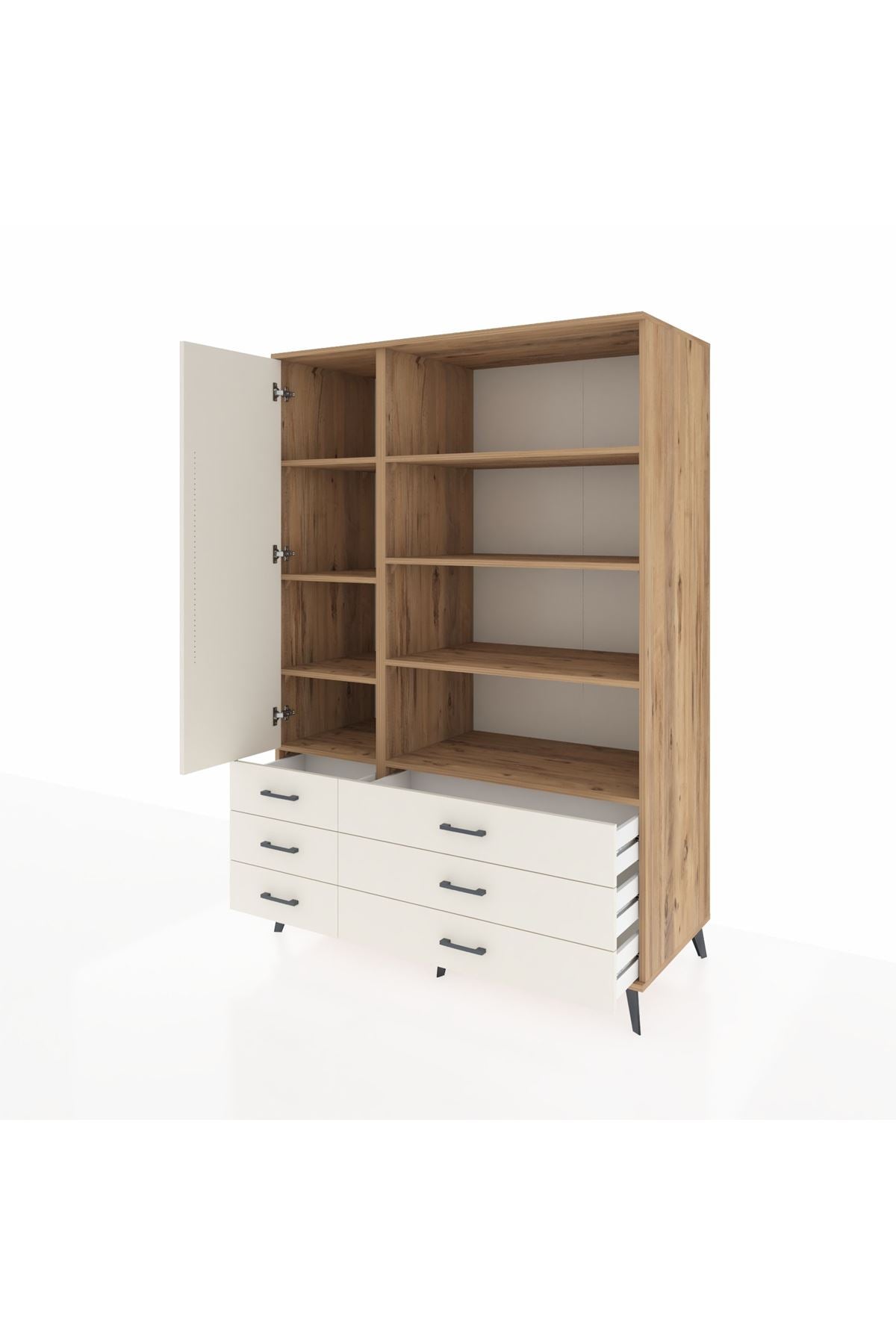 132 cm genişlik, 59 cm derinlik ve 195 cm yüksekliği ile her odada rahatça kullanılabilir 8 adet geniş rafı sayesinde kitaplardan ev tekstiline kadar pek çok eşyaya yer açar 📚🧺 6 çekmecesi ise küçük eşyalarınız için ekstra depolama sunar Tek kapaklı yapısıyla hem modern hem de pratik bir çözüm sunar 🚪