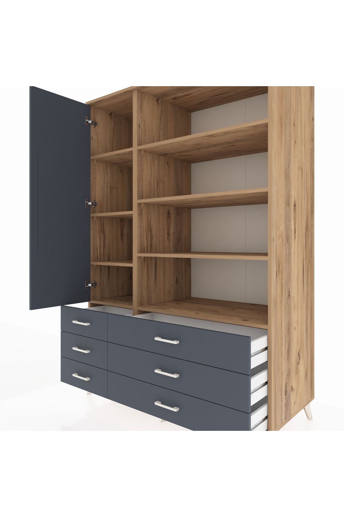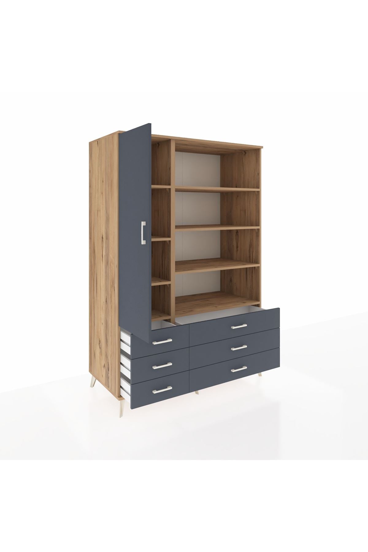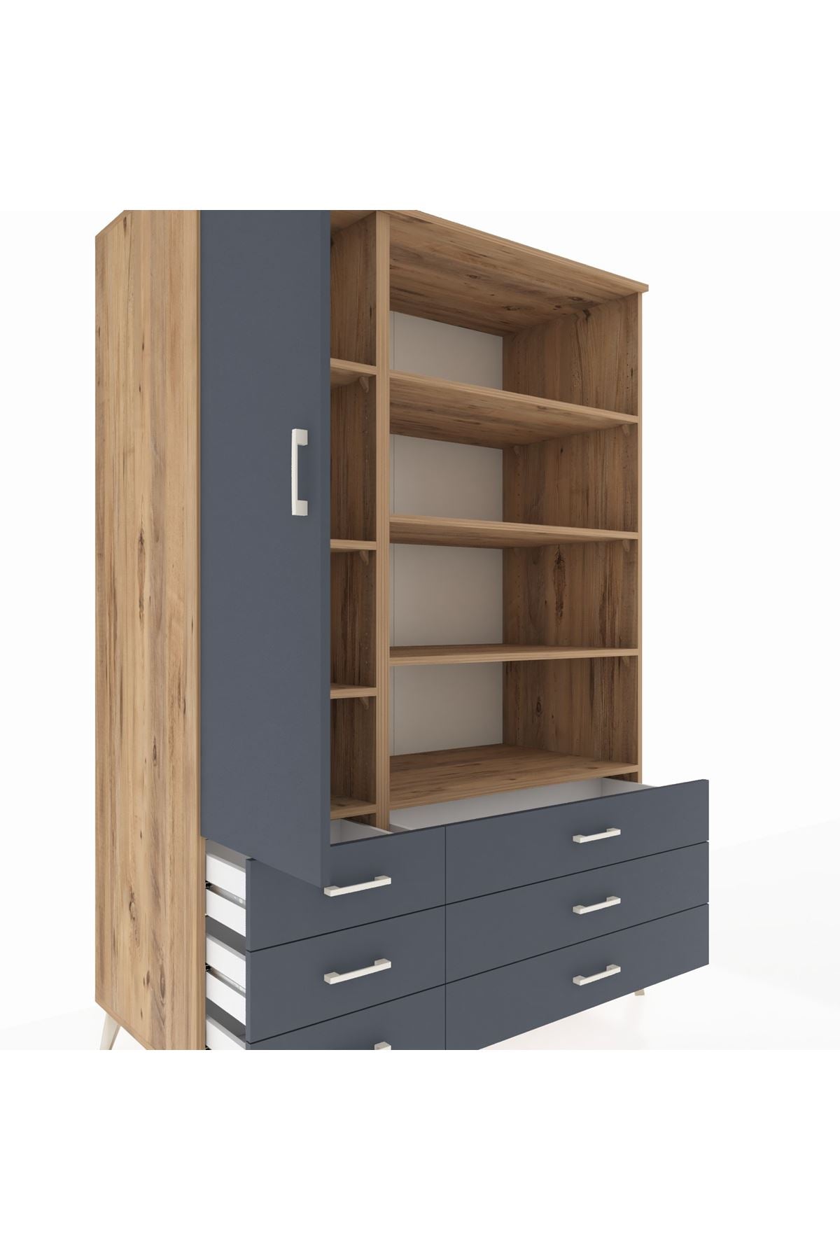 Kronos Dolap 8 Raflı 6 Çekmeceli Tek Kapaklı 132x59x195 Çam-Antrasit/Antrasit